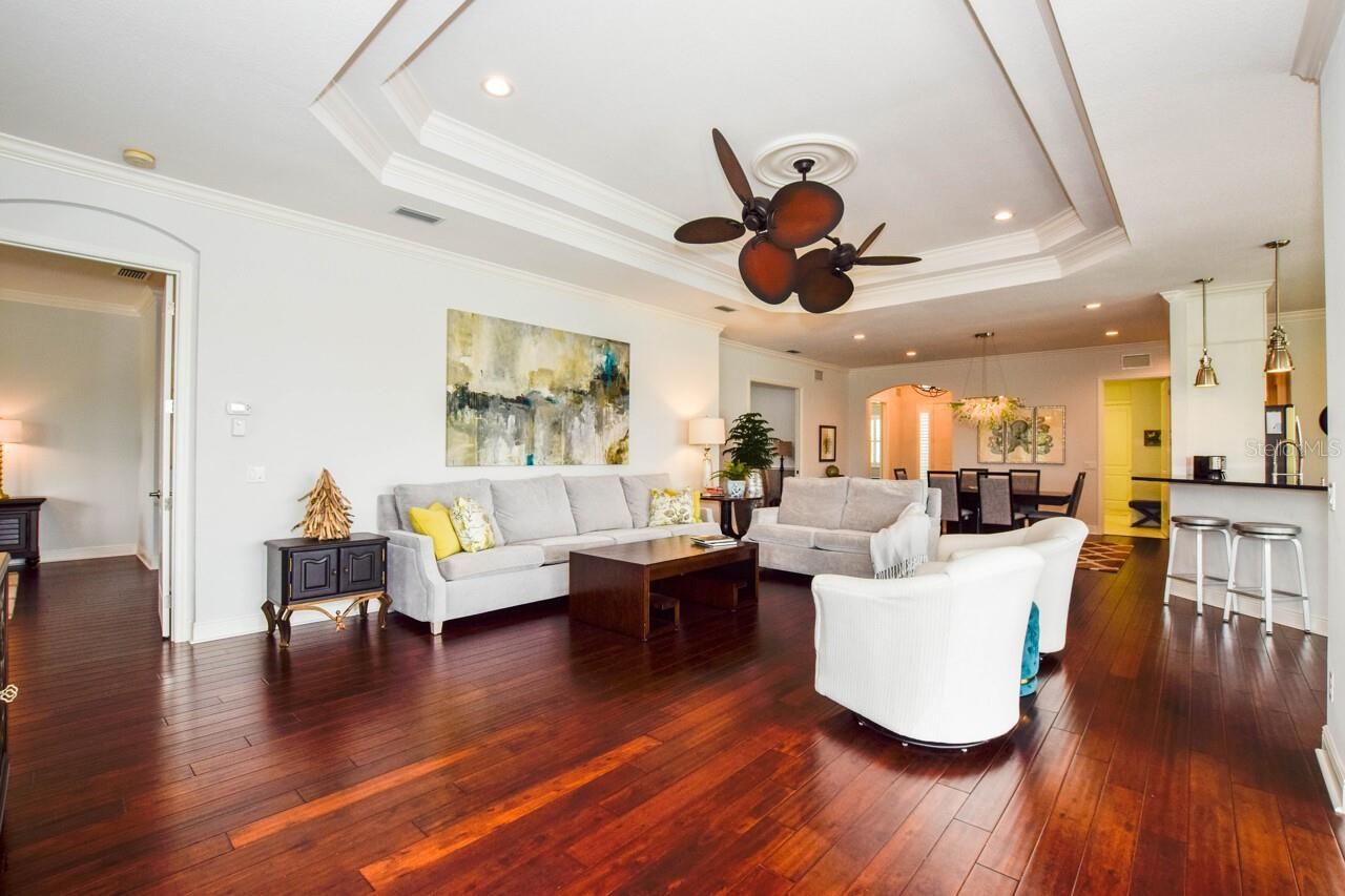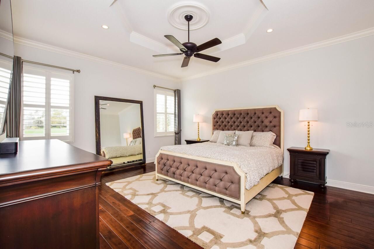- Built-in Features, Ceiling Fan(s), Crown Molding, Eat-in Kitchen, High Ceilings, Open Floorplan, Solid Surface Counters, Solid-Wood Cabinets, Split Bedrooms, Stone Counters, Tray Ceiling(s), Walk-In Closet(s), Wet Bar, Window Treatments