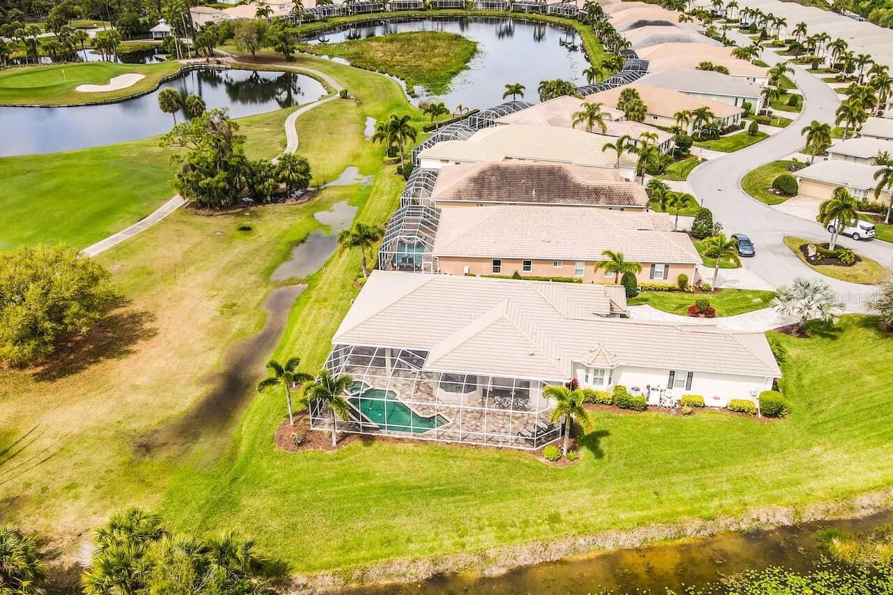 Curb Appeal is at its finest with this Impressive Estate Home situated on the most Premier Lake front property located in St Andrews East at The Plantation Golf and Country Club. At the end of a culdesac you enjoy privacy with serene lake views as well as golf course views of the Panther #13 Fairway. The paver driveway leads up to this 35’X21’ oversized 3 car side entry garage perfect for all you car buffs out there! As you go through the screened Front Entry You are immediately impressed with the Elegance of this 3000 sq ft Great Room Floorplan, 3 Bedrooms plus a Den 2014 built Home. New AC and ventilation in 2025; 3 beautiful Baths; 16’x9’ Laundry Room with extra storage, Upgraded Wood Cabinetry and Granite Countertops throughout plus all Closets have custom shelving just to point out a few more Special Features of this home. 12'X13' Den with Custom Wood Bookshelves opens into the Great Room with views of the pool and lake. The Dining Room is graced with a one-of-a-kind handblown Designer Light fixture; Beautiful Wood and Porcelain Flooring throughout the home and Tray ceilings greet you upon your entrance. The Kitchen is a Chefs Dream with Induction Cooktop; 2 Convection built in Ovens and a warming Drawer. Entertaining is a pleasure with such great flow in this home. Relax around the outdoor Kitchen Bar in the Oversized Wraparound Screened Pool area or enjoy a dip in the pool/spa with propane gas fire features that complete the ambiance. This is truly a One Of A Kind Custom Home! St Andrews Residents enjoy the added use of 2 Community Pools but oaf your passion involves Golf, Tennis, Pickleball or Fitness then Membership is available at The Plantation Golf and Country Club. Definitely put this Must See to Appreciate Home at the Top of Your List Today!