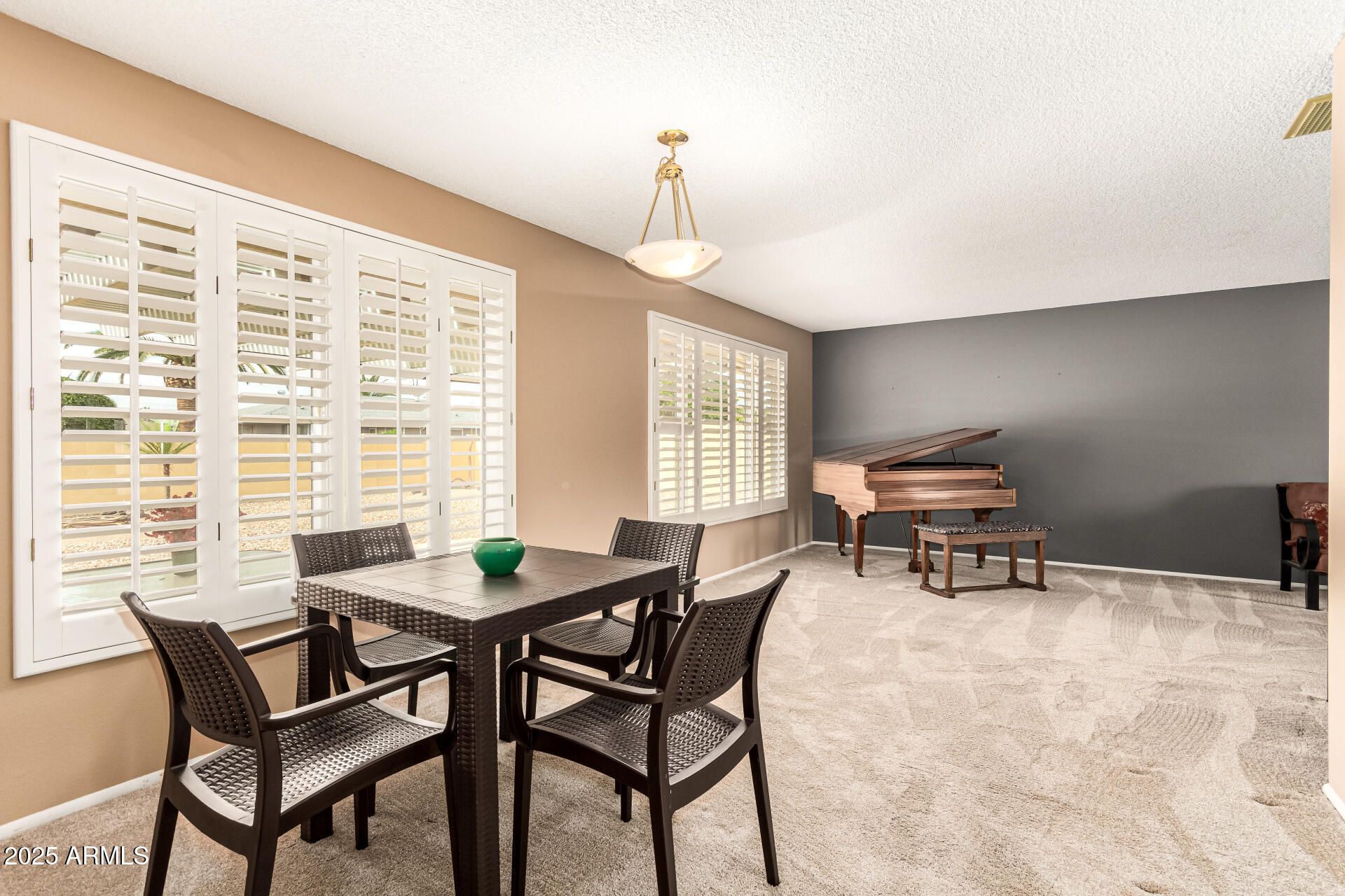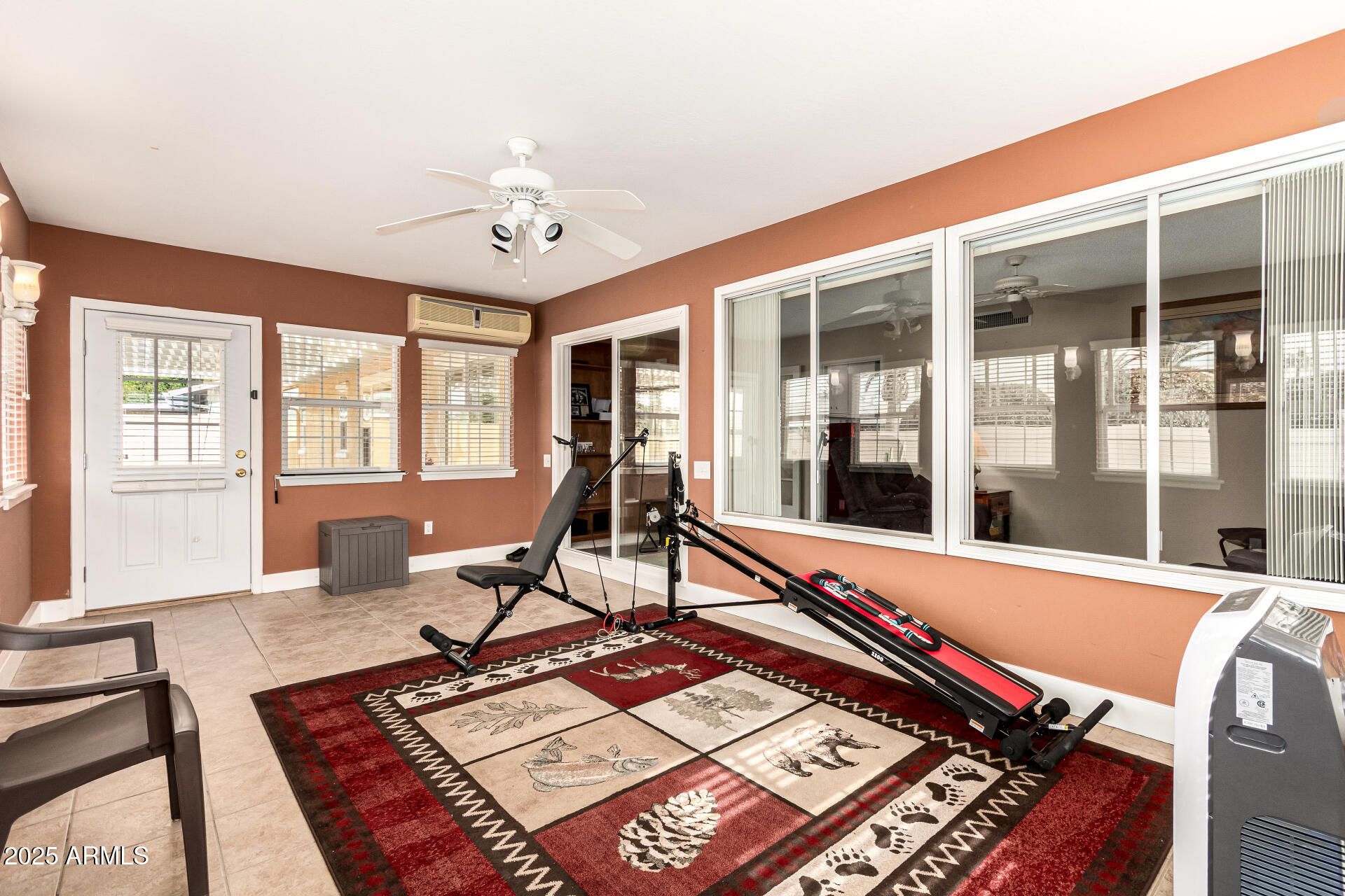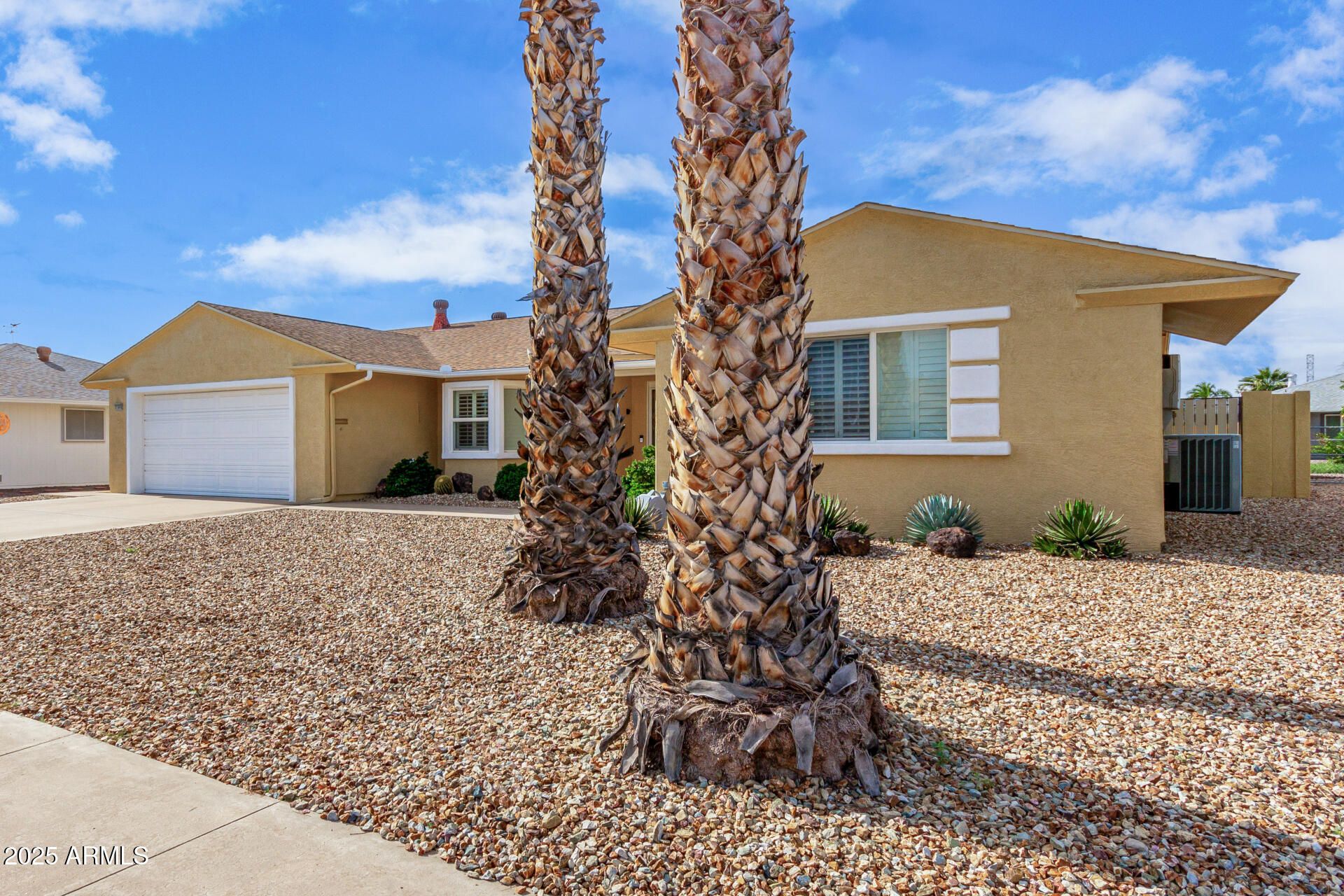 Great floorplan and move-in ready home. Home features 2 bedrooms/ 2 baths, 250 sq ft Arizona Room, large laundry with an office area. Dual-pane windows, plantation shutters t/o and bay window in kitchen. Home features paid solar system. Large low maintenance backyard with full block fence and features a pergola covered patio, dual side entrances and storage shed.