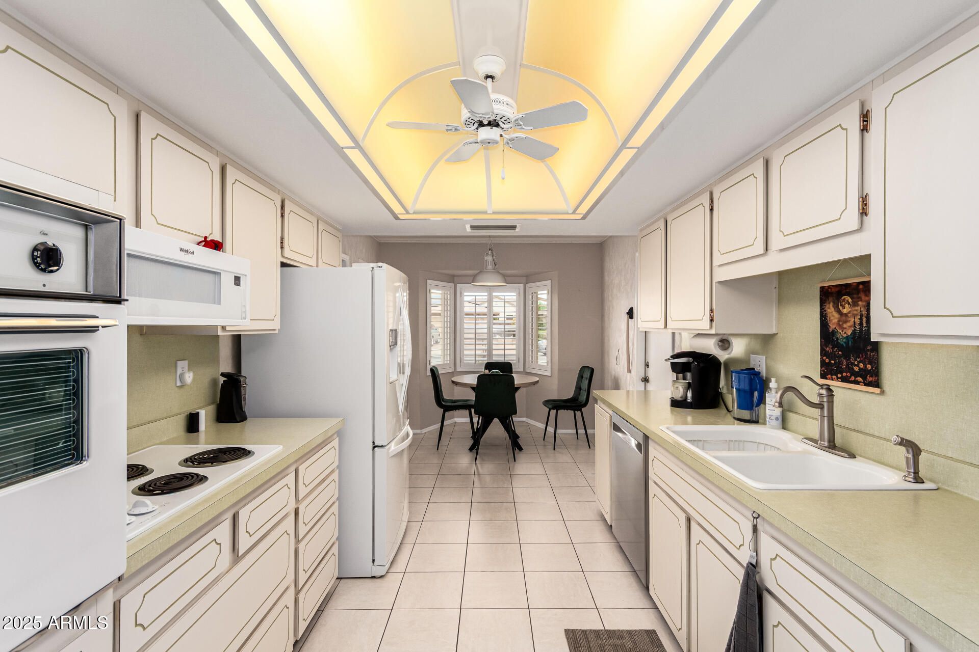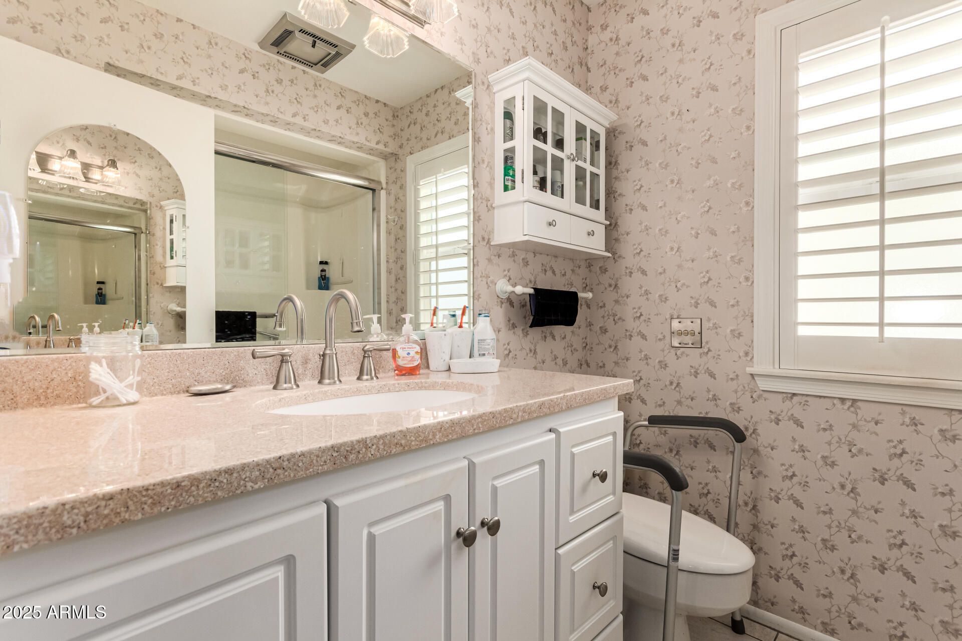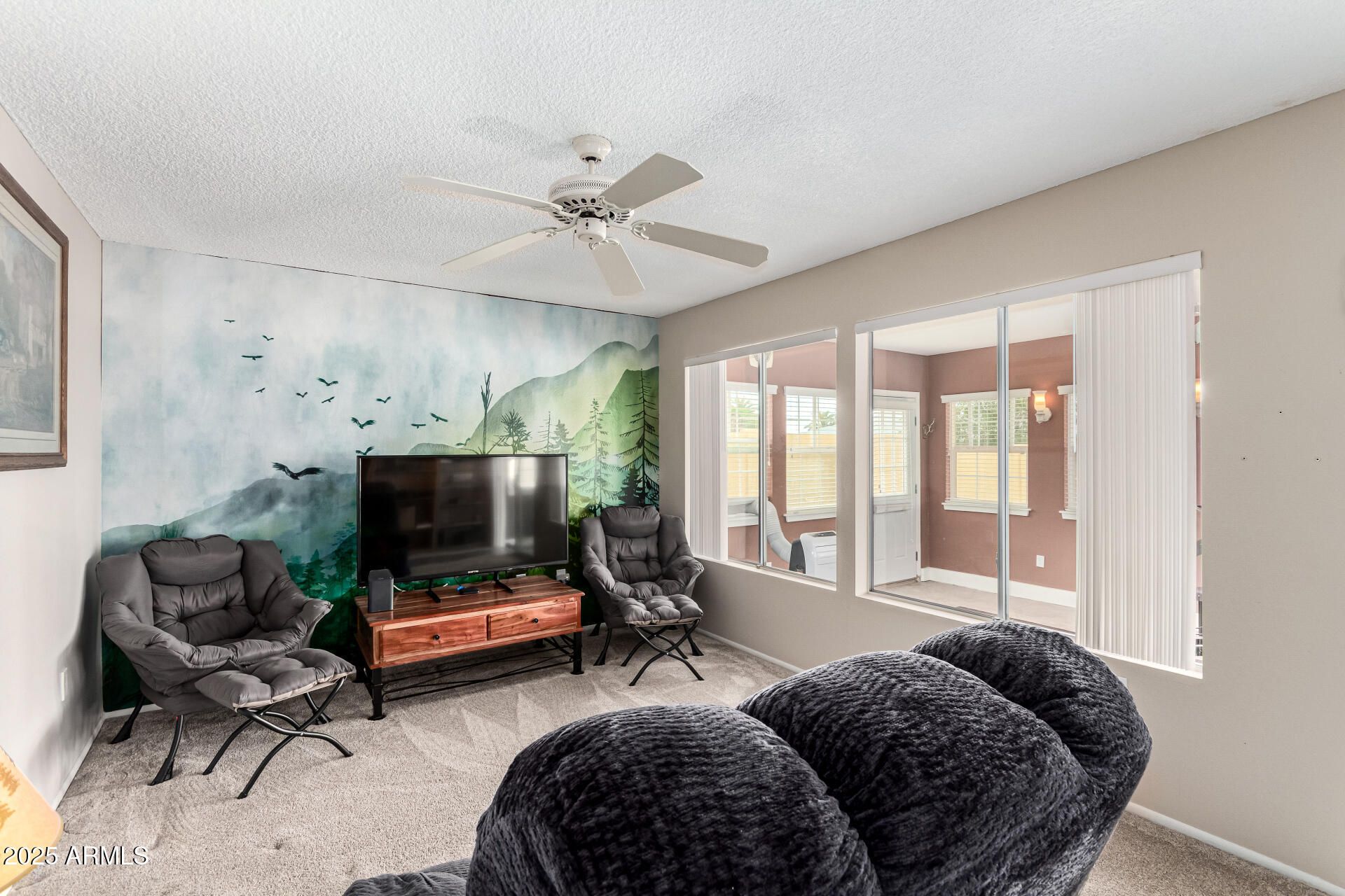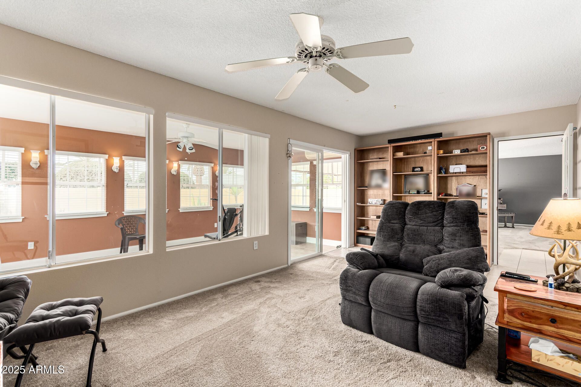 Great floorplan and move-in ready home. Home features 2 bedrooms/ 2 baths, 250 sq ft Arizona Room, large laundry with an office area. Dual-pane windows, plantation shutters t/o and bay window in kitchen. Home features paid solar system. Large low maintenance backyard with full block fence and features a pergola covered patio, dual side entrances and storage shed.