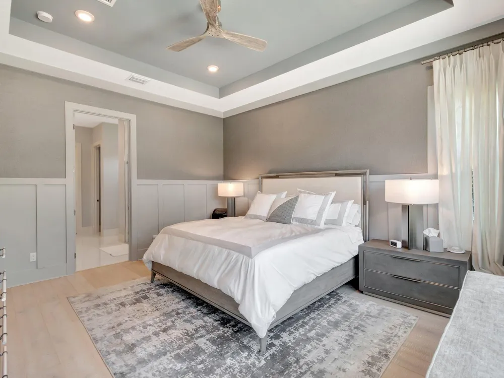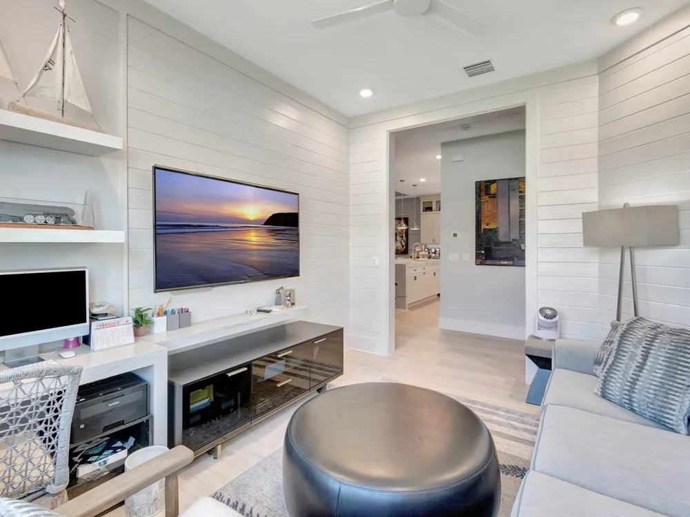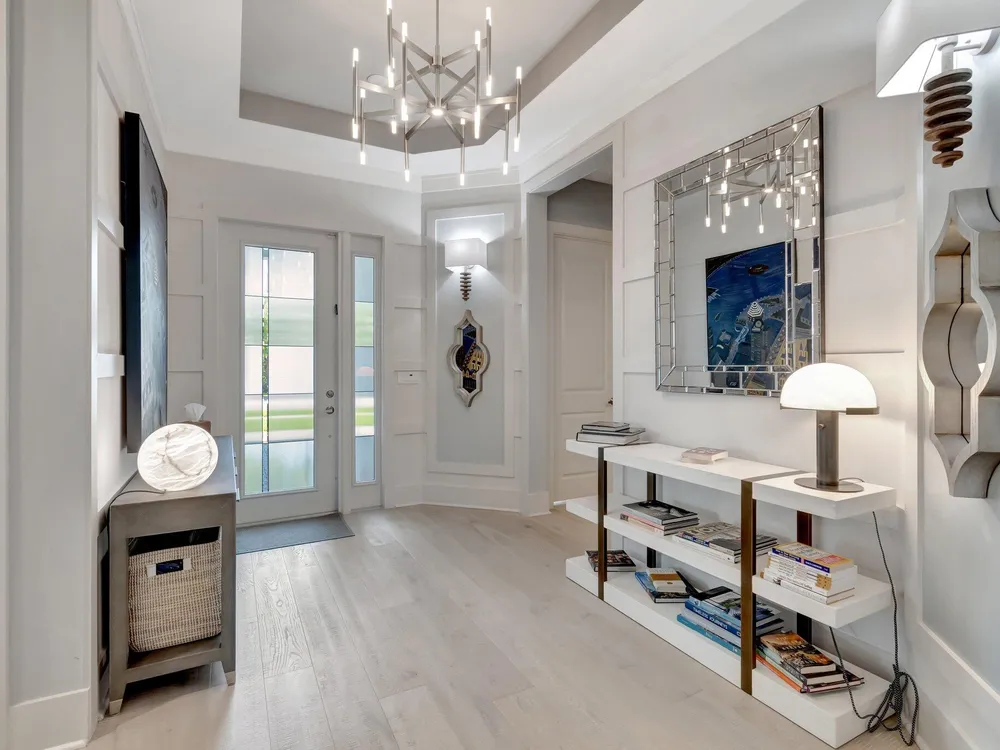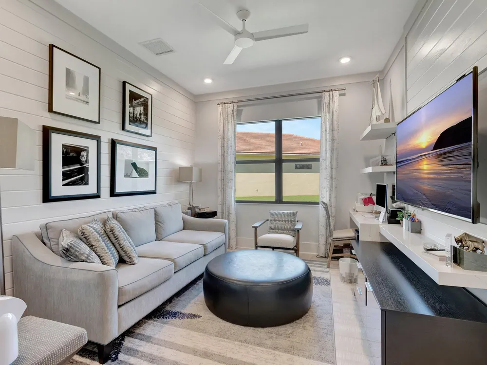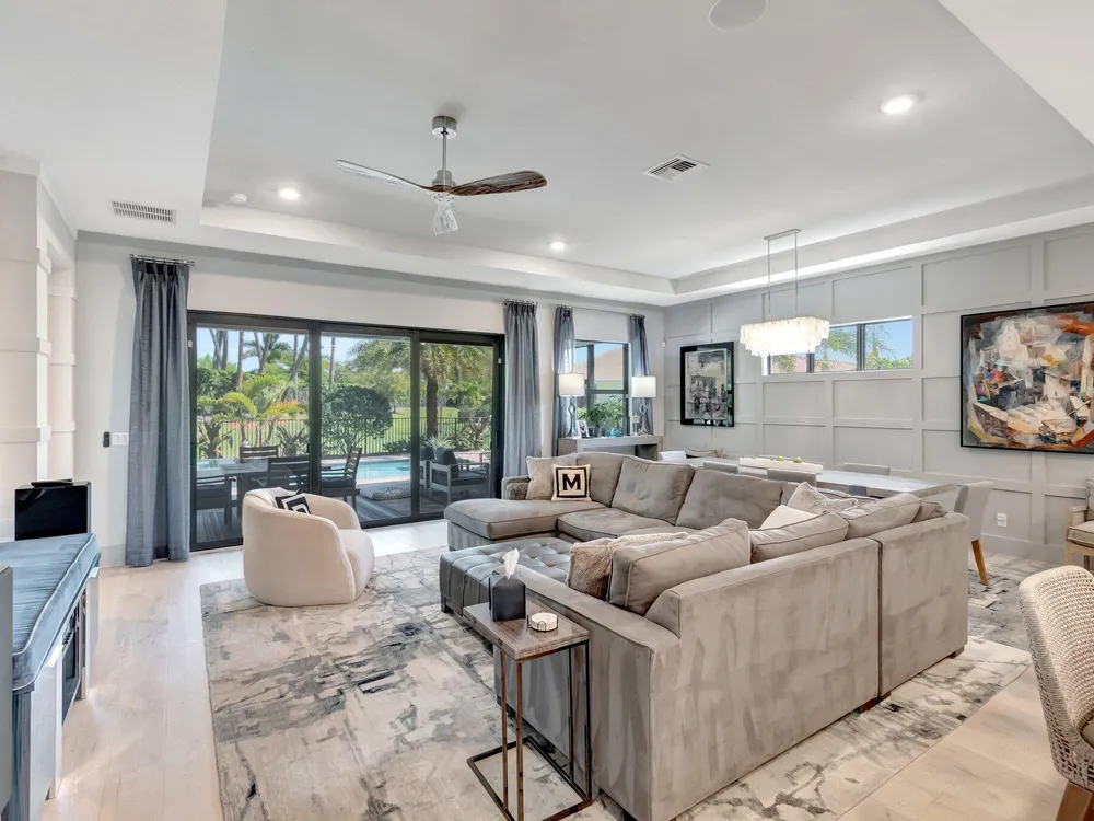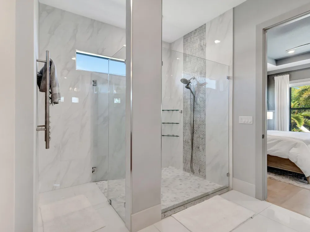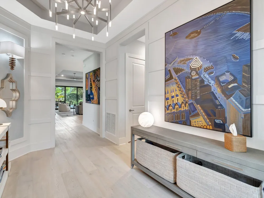 - Built-in Shelving, Closet Cabinetry, Cathedral Ceiling(s), Entrance Foyer, Kitchen Island, Pantry, Split Bedrooms, High Ceilings, Walk-In Closet(s), Home Office, Great Room, Living/Dining Room, Kitchen/Dining Combo, Snack Bar, Impact Glass, Dual Sinks, Primary Downstairs, Separate Shower