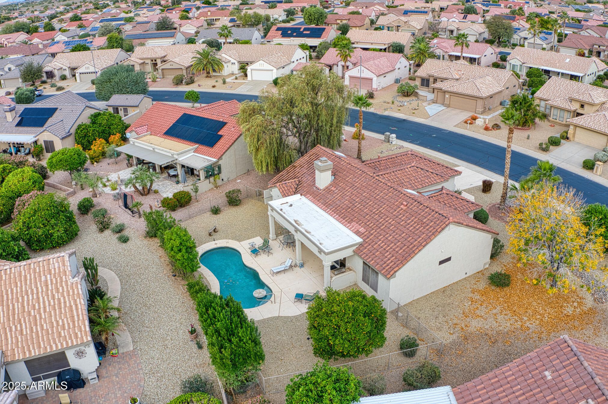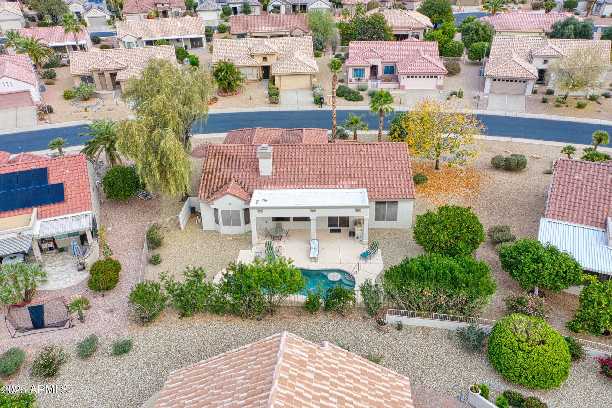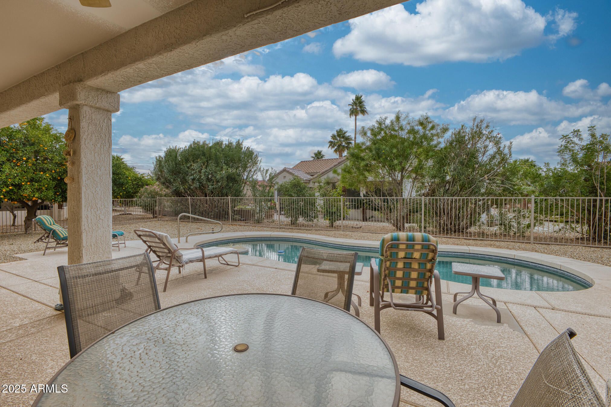 Popular Palo Verde floor plan in Sun City Grand offering 1,850 square feet with 2 bedrooms, 2 baths, and a desirable split-bedroom layout. The primary suite is privately positioned on the opposite side of the home from the guest bedroom and den/office. This well-maintained home features a new roof underlayment, newer HVAC system, bay windows in both the primary bedroom and breakfast nook, and skylights in the kitchen and primary bath that enhance natural light. A rare and highly sought-after feature includes privacy doors to the primary bathroom. The backyard is a true retreat, showcasing a private pool surrounded by thoughtfully placed mature landscaping that provides exceptional privacy. This beautifully maintained Palo Verde model offers one of the most sought-after floor plans in Sun City Grand, combining comfort, privacy, and classic Arizona indoor-outdoor living. With 1,850 square feet, this 2-bedroom, 2-bath residence plus den/office is thoughtfully designed with a split-bedroom layout, placing the primary suite on the opposite side of the home from the guest bedroom and flex spaceideal for hosting visitors, working from home, or enjoying quiet personal retreats. From the moment you arrive, the home reflects pride of ownership and timeless desert appeal. Inside, the layout flows effortlessly, enhanced by abundant natural light and architectural features that define the Palo Verde as one of Del Webb's most popular and enduring designs. The open living areas create an inviting atmosphere well suited for both everyday living and entertaining, while maintaining defined spaces that offer comfort and functionality. The primary suite is generously sized and thoughtfully appointed, featuring a bay window that adds architectural interest and creates a bright, airy ambiance. A standout feature rarely found in comparable homes is the inclusion of privacy doors leading to the primary bathroom, enhancing separation and convenience. The primary bath is further complemented by a skylight, filling the space with natural Arizona sunshine while maintaining privacy. This owner's retreat is designed for relaxation, comfort, and ease of living. The guest bedroom is well positioned for privacy and comfort, making it ideal for overnight visitors or extended stays. Adjacent to the living areas, the den/office provides flexible space that can easily serve as a home office, hobby room, reading retreat, or additional guest space, depending on lifestyle needs. The kitchen is both functional and welcoming, offering excellent flow to the living and dining areas. A bay window in the breakfast nook adds charm and light, creating a pleasant space for casual meals or morning coffee. A skylight in the kitchen enhances brightness throughout the day, a feature highly valued in Arizona homes for its ability to create a light, open feel without added heat. Major systems have been thoughtfully addressed, providing peace of mind for the next owner. The home features a new roof underlayment, an important upgrade in the Arizona climate, as well as a newer HVAC system, supporting energy efficiency, reliability, and year-round comfort. These improvements reflect proactive maintenance and long-term value. Step outside to experience one of the home's most impressive features: the private backyard oasis. Designed with both relaxation and privacy in mind, the outdoor space showcases a sparkling private pool, ideal for cooling off during warm Arizona summers or enjoying tranquil evenings under the desert sky. Strategically planted mature foliage surrounds the yard, creating a sense of seclusion rarely found and providing excellent visual privacy from neighboring properties. This outdoor retreat is perfectly suited for entertaining, quiet reflection, or enjoying the Arizona lifestyle year-round. The backyard setting exemplifies the appeal of Arizona resort-style living, blending low-maintenance landscaping with functional outdoor enjoyment. Whether hosting guests, relaxing poolside, or enjoying sunrise and sunset views, the outdoor environment complements the home's interior comfort and thoughtful design. Located within one of Arizona's premier active-adult communities, residents enjoy access to world-class amenities, including championship golf courses, recreation centers, fitness facilities, pools, walking paths, clubs, and social activities. The lifestyle offered here is a key draw for buyers seeking Arizona retirement living, active-adult communities, and low-maintenance homes without sacrificing quality or comfort. This Palo Verde home represents a rare opportunity to own a property that combines a highly desirable floor plan, meaningful system upgrades, and exceptional backyard privacyfeatures that are increasingly difficult to find together. Whether used as a full-time residence, seasonal retreat, or long-term investment in one of Arizona's most established communities, this home delivers lasting value and enduring appeal. Homes of this caliber, offering a private pool, split-bedroom design, skylights, bay windows, upgraded roof underlayment, and newer HVAC, continue to be among the most requested and fastest-moving properties in the market. This residence stands out for its thoughtful layout, peaceful outdoor setting, and overall livabilitymaking it an excellent opportunity for discerning buyers seeking the best of Arizona living.