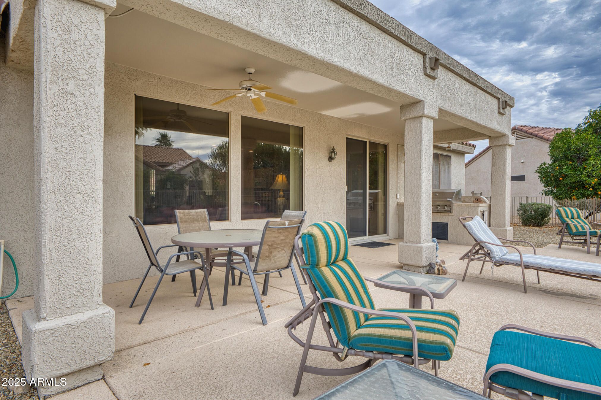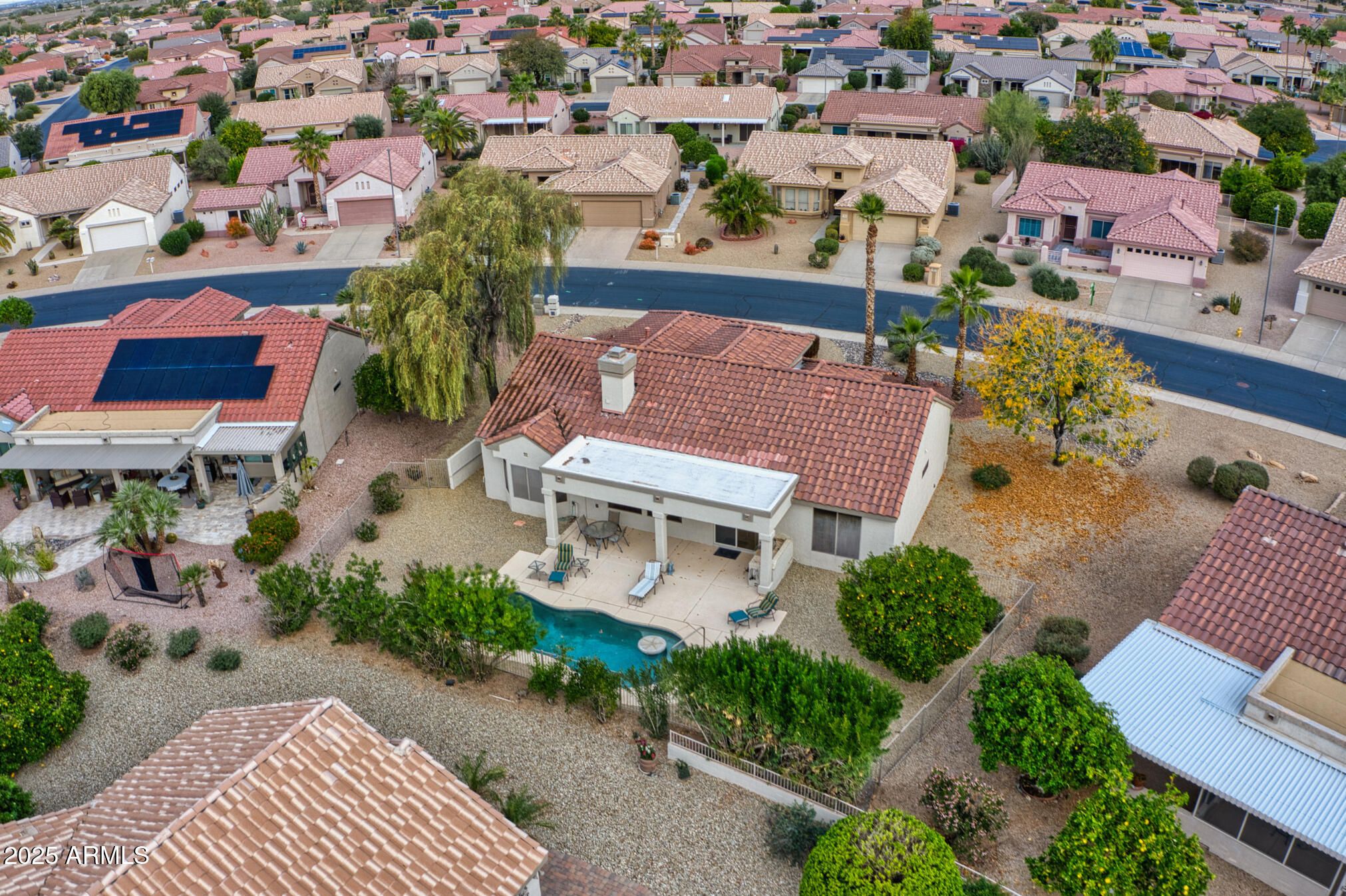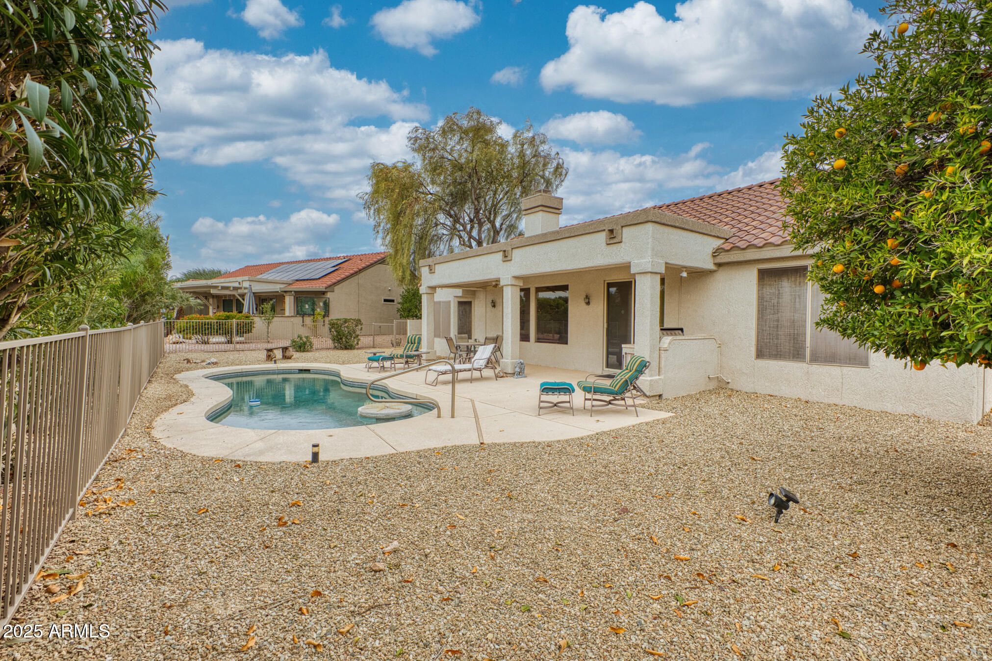 Popular Palo Verde floor plan in Sun City Grand offering 1,850 square feet with 2 bedrooms, 2 baths, and a desirable split-bedroom layout. The primary suite is privately positioned on the opposite side of the home from the guest bedroom and den/office. This well-maintained home features a new roof underlayment, newer HVAC system, bay windows in both the primary bedroom and breakfast nook, and skylights in the kitchen and primary bath that enhance natural light. A rare and highly sought-after feature includes privacy doors to the primary bathroom. The backyard is a true retreat, showcasing a private pool surrounded by thoughtfully placed mature landscaping that provides exceptional privacy. This beautifully maintained Palo Verde model offers one of the most sought-after floor plans in Sun City Grand, combining comfort, privacy, and classic Arizona indoor-outdoor living. With 1,850 square feet, this 2-bedroom, 2-bath residence plus den/office is thoughtfully designed with a split-bedroom layout, placing the primary suite on the opposite side of the home from the guest bedroom and flex spaceideal for hosting visitors, working from home, or enjoying quiet personal retreats. From the moment you arrive, the home reflects pride of ownership and timeless desert appeal. Inside, the layout flows effortlessly, enhanced by abundant natural light and architectural features that define the Palo Verde as one of Del Webb's most popular and enduring designs. The open living areas create an inviting atmosphere well suited for both everyday living and entertaining, while maintaining defined spaces that offer comfort and functionality. The primary suite is generously sized and thoughtfully appointed, featuring a bay window that adds architectural interest and creates a bright, airy ambiance. A standout feature rarely found in comparable homes is the inclusion of privacy doors leading to the primary bathroom, enhancing separation and convenience. The primary bath is further complemented by a skylight, filling the space with natural Arizona sunshine while maintaining privacy. This owner's retreat is designed for relaxation, comfort, and ease of living. The guest bedroom is well positioned for privacy and comfort, making it ideal for overnight visitors or extended stays. Adjacent to the living areas, the den/office provides flexible space that can easily serve as a home office, hobby room, reading retreat, or additional guest space, depending on lifestyle needs. The kitchen is both functional and welcoming, offering excellent flow to the living and dining areas. A bay window in the breakfast nook adds charm and light, creating a pleasant space for casual meals or morning coffee. A skylight in the kitchen enhances brightness throughout the day, a feature highly valued in Arizona homes for its ability to create a light, open feel without added heat. Major systems have been thoughtfully addressed, providing peace of mind for the next owner. The home features a new roof underlayment, an important upgrade in the Arizona climate, as well as a newer HVAC system, supporting energy efficiency, reliability, and year-round comfort. These improvements reflect proactive maintenance and long-term value. Step outside to experience one of the home's most impressive features: the private backyard oasis. Designed with both relaxation and privacy in mind, the outdoor space showcases a sparkling private pool, ideal for cooling off during warm Arizona summers or enjoying tranquil evenings under the desert sky. Strategically planted mature foliage surrounds the yard, creating a sense of seclusion rarely found and providing excellent visual privacy from neighboring properties. This outdoor retreat is perfectly suited for entertaining, quiet reflection, or enjoying the Arizona lifestyle year-round. The backyard setting exemplifies the appeal of Arizona resort-style living, blending low-maintenance landscaping with functional outdoor enjoyment. Whether hosting guests, relaxing poolside, or enjoying sunrise and sunset views, the outdoor environment complements the home's interior comfort and thoughtful design. Located within one of Arizona's premier active-adult communities, residents enjoy access to world-class amenities, including championship golf courses, recreation centers, fitness facilities, pools, walking paths, clubs, and social activities. The lifestyle offered here is a key draw for buyers seeking Arizona retirement living, active-adult communities, and low-maintenance homes without sacrificing quality or comfort. This Palo Verde home represents a rare opportunity to own a property that combines a highly desirable floor plan, meaningful system upgrades, and exceptional backyard privacyfeatures that are increasingly difficult to find together. Whether used as a full-time residence, seasonal retreat, or long-term investment in one of Arizona's most established communities, this home delivers lasting value and enduring appeal. Homes of this caliber, offering a private pool, split-bedroom design, skylights, bay windows, upgraded roof underlayment, and newer HVAC, continue to be among the most requested and fastest-moving properties in the market. This residence stands out for its thoughtful layout, peaceful outdoor setting, and overall livabilitymaking it an excellent opportunity for discerning buyers seeking the best of Arizona living.