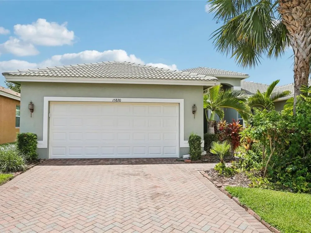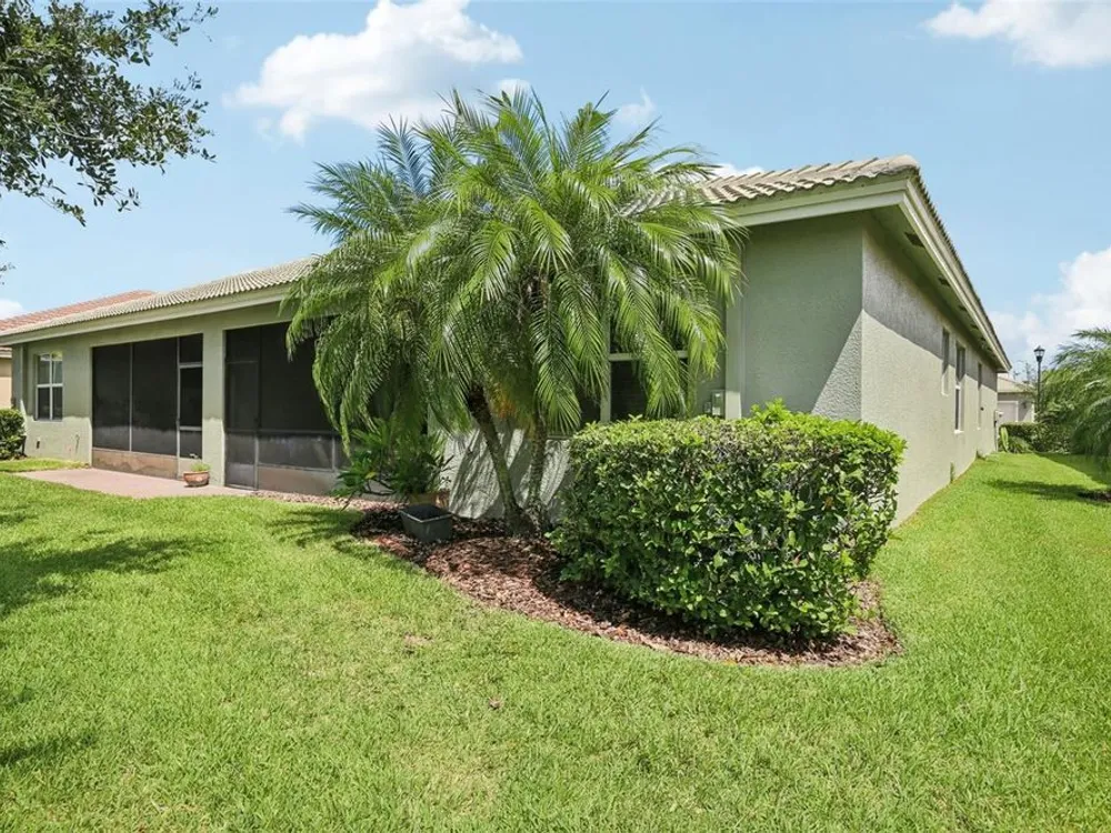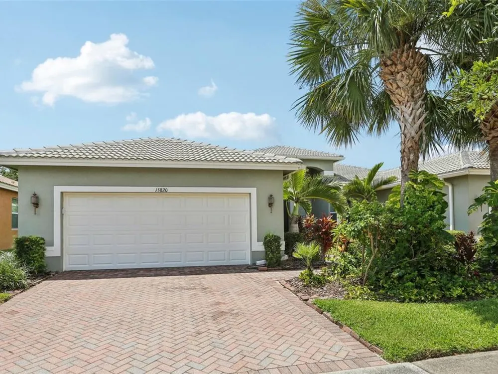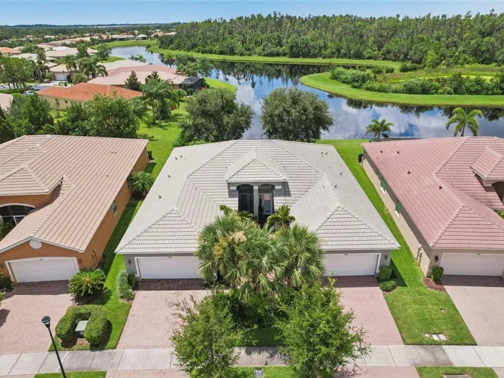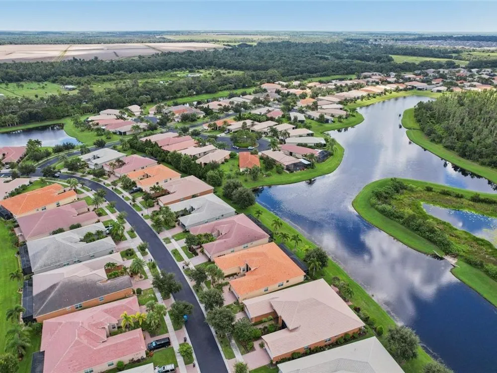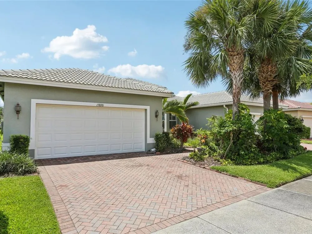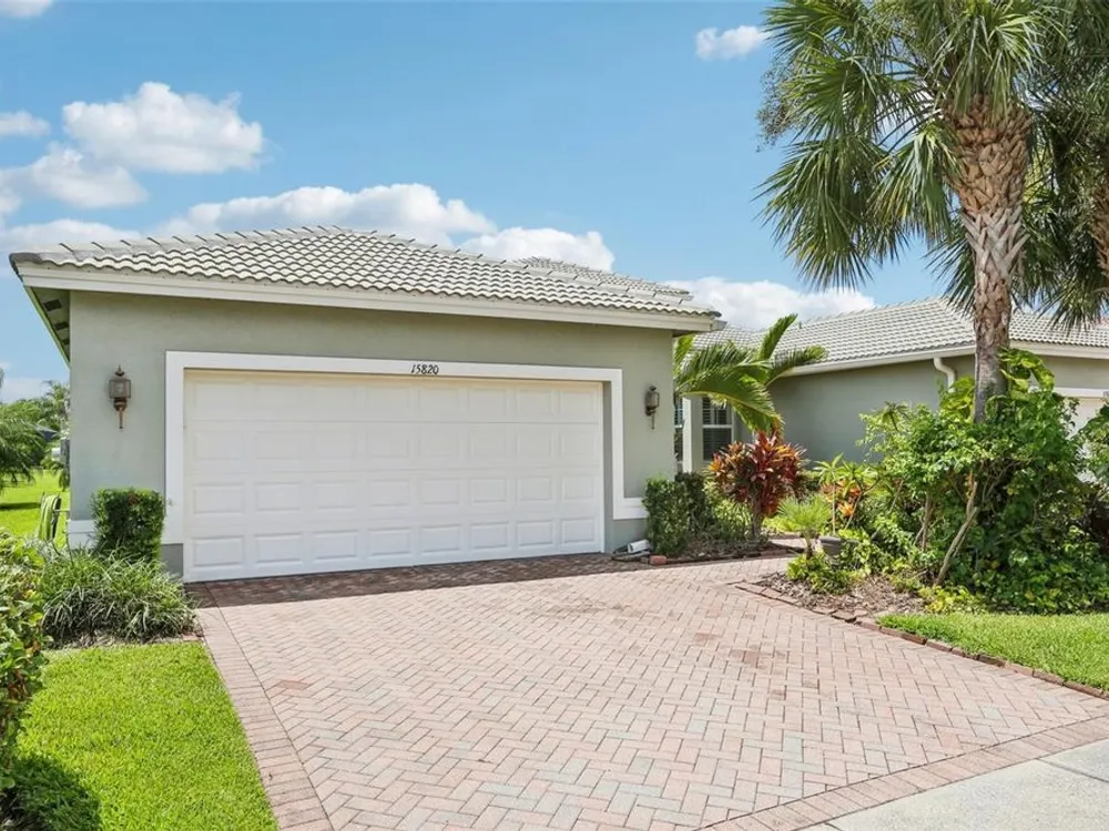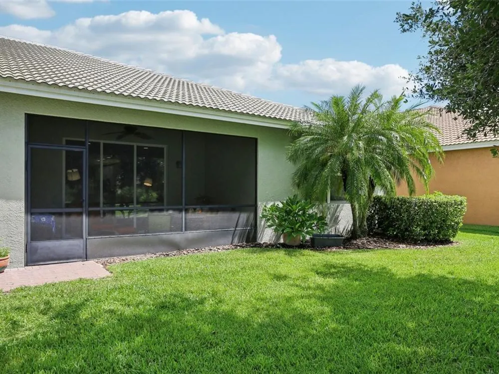 Welcome to your dream home in the sought-after Valencia Lakes community! This beautifully maintained waterfront villa features 2 bedrooms, 2 bathrooms, plus a versatile den that can serve as a 3rd bedroom or office. You'll be greeted by a designer paved driveway and walkway, surrounded by lush, professionally landscaped plants, creating a warm and inviting curb appeal. Inside, enjoy a bright, open-concept layout with soaring ceilings and seamless flow between the living, dining, and kitchen areas. The spacious kitchen offers stainless steel appliances, an eat-at bar, abundant cabinet and pantry space, and a cozy dinette nook with a convenient laundry closet. Take in stunning water views through large sliding glass doors leading to the screened-in lanai—perfect for relaxing or entertaining. The generously sized primary suite includes a spa-like en suite bathroom with double sinks, stand up shower and a private water closet. Plus a large walk in closet off the bathroom with plenty of room for all your needs. Valencia Lakes is a premier 55+ active adult golf cart community, offering a vibrant lifestyle surrounded by resort-style amenities. The community features a stunning 40-acre waterfront outdoor recreation area with a heated resort pool, lap and resistance pools. Residents enjoy access to a 40,000 sq. ft. clubhouse, Har-Tru tennis courts, a state-of-the-art fitness center, half-court basketball, pickleball and bocce courts, a dog park, baseball park, and a community garden. For outdoor enthusiasts, there’s over 100 acres of preserved natural areas, perfect for enjoying peaceful water views, birdwatching, and local wildlife. Additional conveniences include RV and boat storage and hundreds of clubs and activities to suit every interest. Valencia Lakes is known for its warm, welcoming neighbors and strong sense of community — the perfect place to enjoy an active and fulfilling lifestyle.