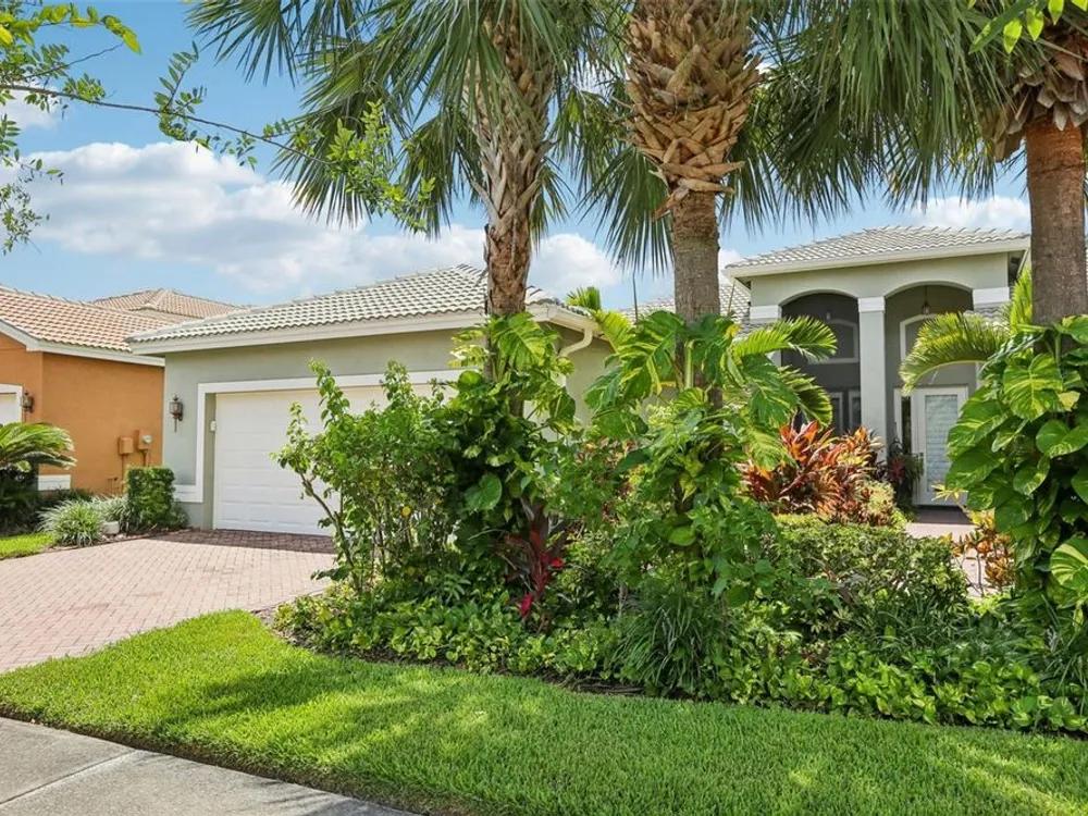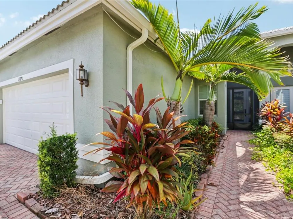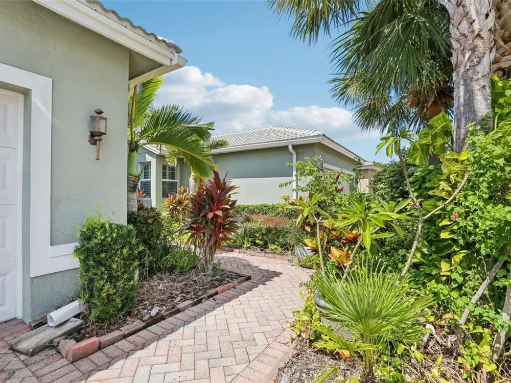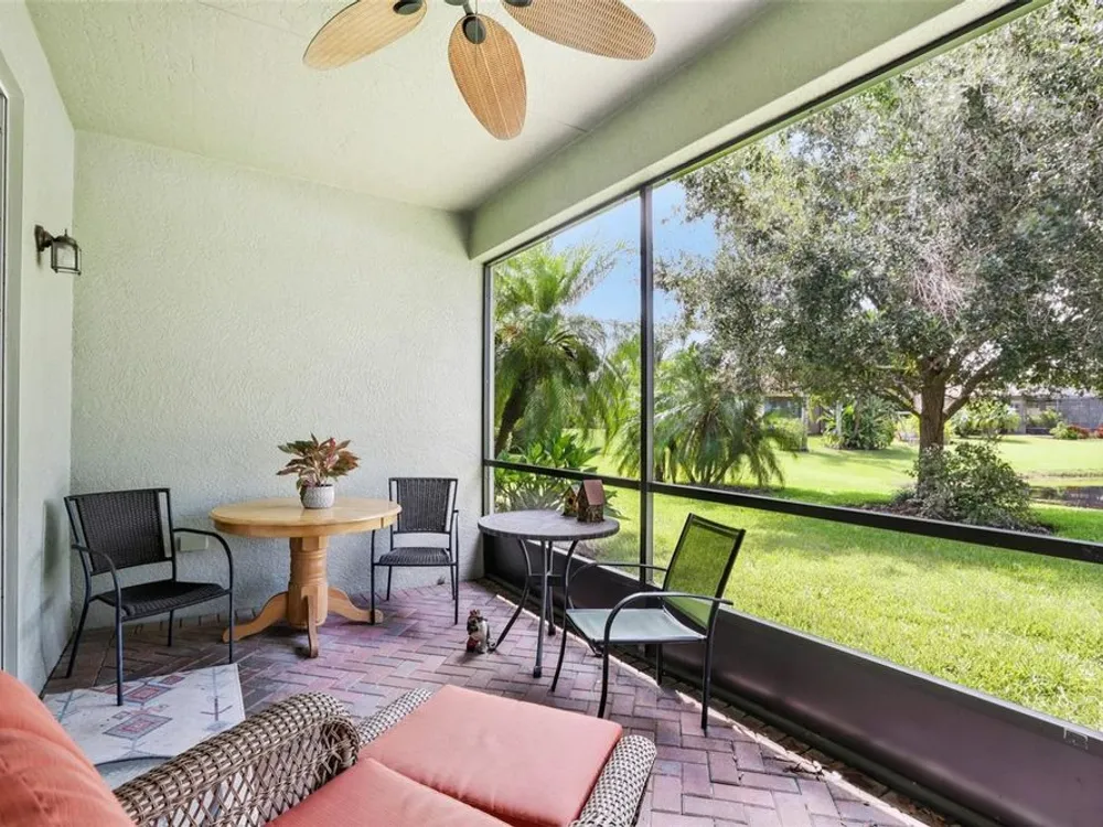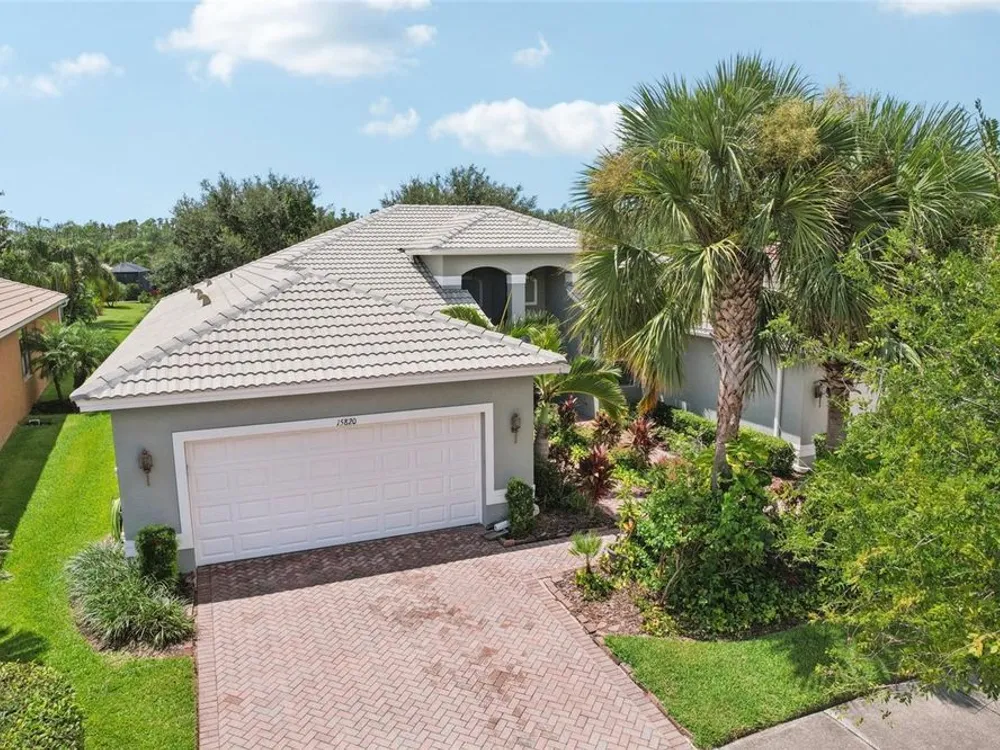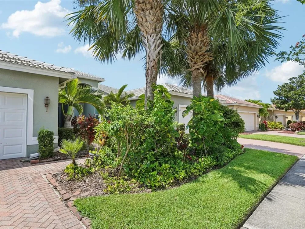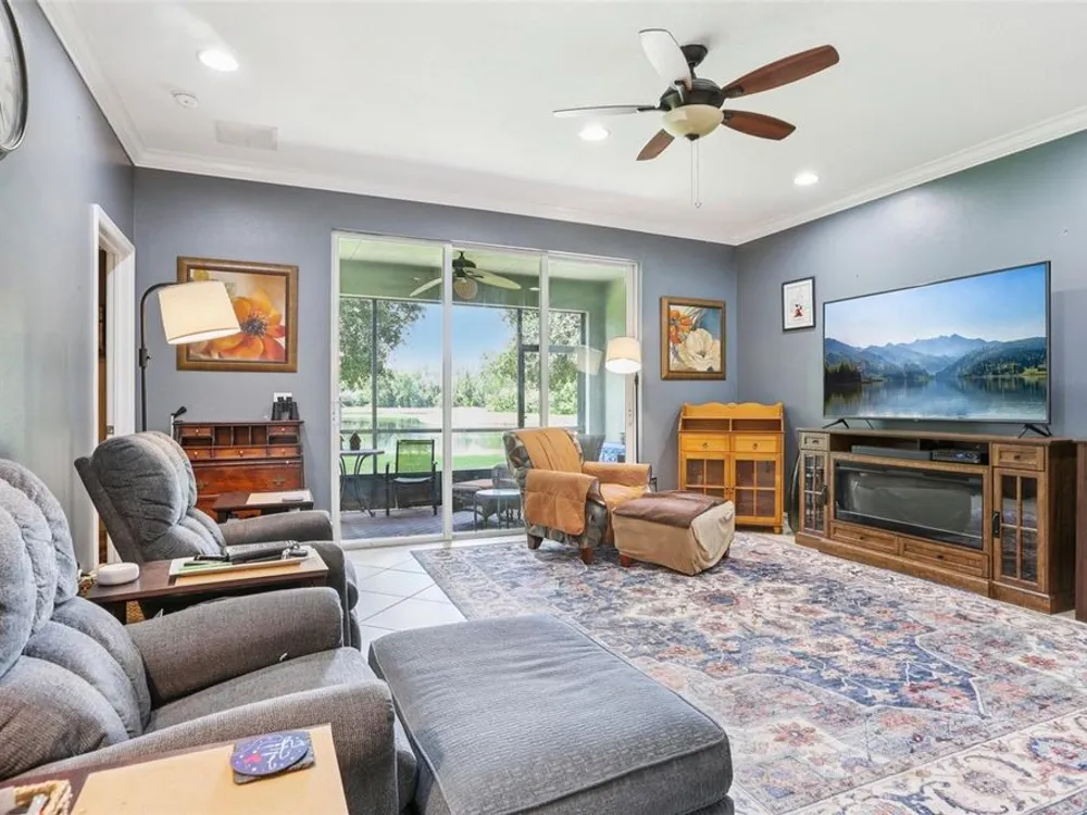Welcome to your dream home in the sought-after Valencia Lakes community! This beautifully maintained waterfront villa features 2 bedrooms, 2 bathrooms, plus a versatile den that can serve as a 3rd bedroom or office. You'll be greeted by a designer paved driveway and walkway, surrounded by lush, professionally landscaped plants, creating a warm and inviting curb appeal. Inside, enjoy a bright, open-concept layout with soaring ceilings and seamless flow between the living, dining, and kitchen areas. The spacious kitchen offers stainless steel appliances, an eat-at bar, abundant cabinet and pantry space, and a cozy dinette nook with a convenient laundry closet. Take in stunning water views through large sliding glass doors leading to the screened-in lanai—perfect for relaxing or entertaining. The generously sized primary suite includes a spa-like en suite bathroom with double sinks, stand up shower and a private water closet. Plus a large walk in closet off the bathroom with plenty of room for all your needs. Valencia Lakes is a premier 55+ active adult golf cart community, offering a vibrant lifestyle surrounded by resort-style amenities. The community features a stunning 40-acre waterfront outdoor recreation area with a heated resort pool, lap and resistance pools. Residents enjoy access to a 40,000 sq. ft. clubhouse, Har-Tru tennis courts, a state-of-the-art fitness center, half-court basketball, pickleball and bocce courts, a dog park, baseball park, and a community garden. For outdoor enthusiasts, there’s over 100 acres of preserved natural areas, perfect for enjoying peaceful water views, birdwatching, and local wildlife. Additional conveniences include RV and boat storage and hundreds of clubs and activities to suit every interest. Valencia Lakes is known for its warm, welcoming neighbors and strong sense of community — the perfect place to enjoy an active and fulfilling lifestyle.