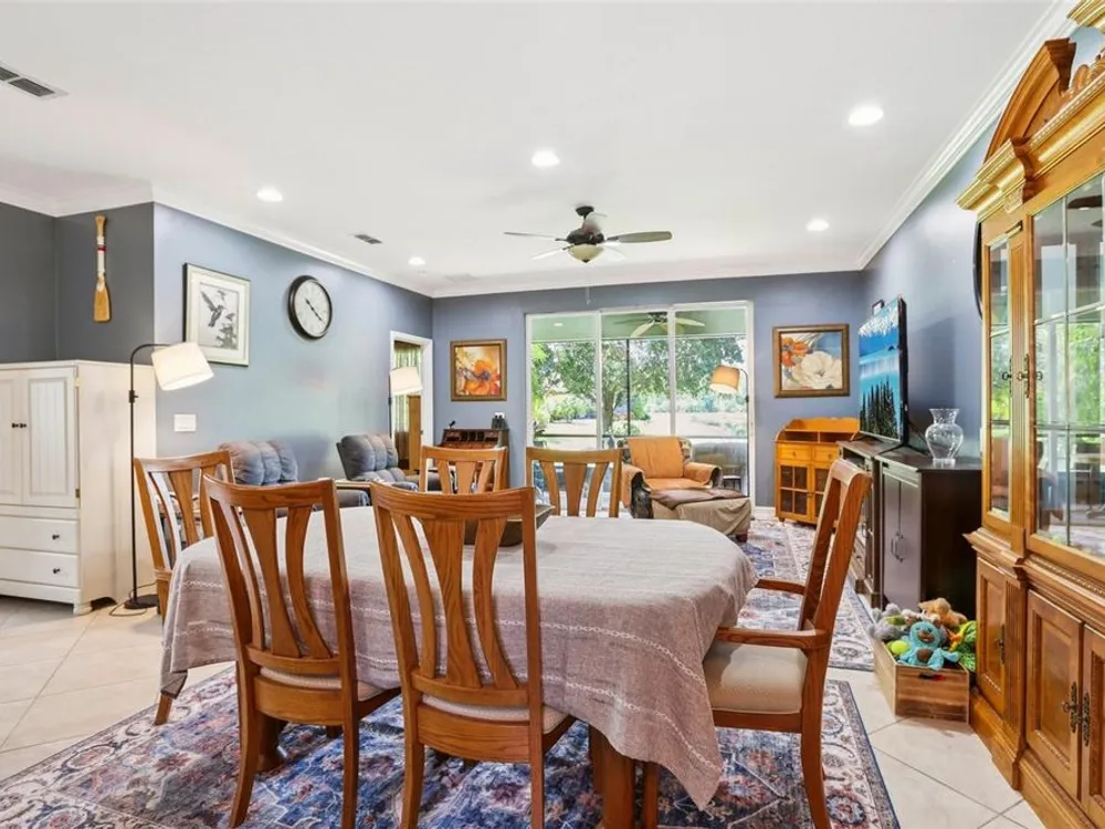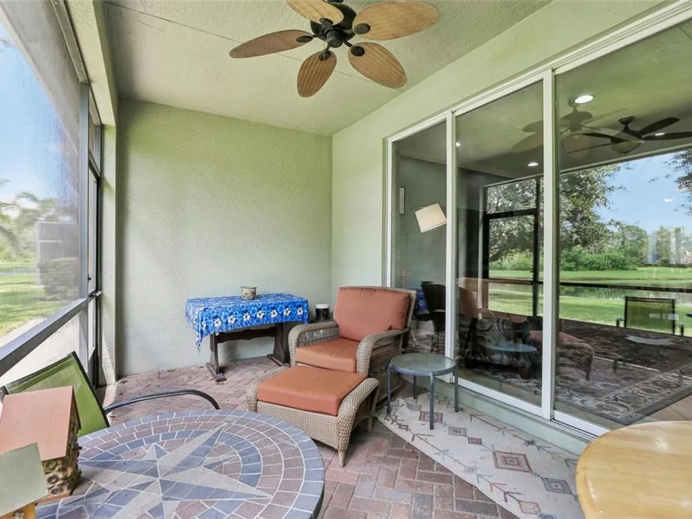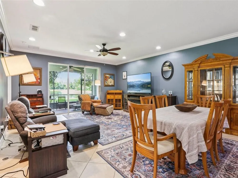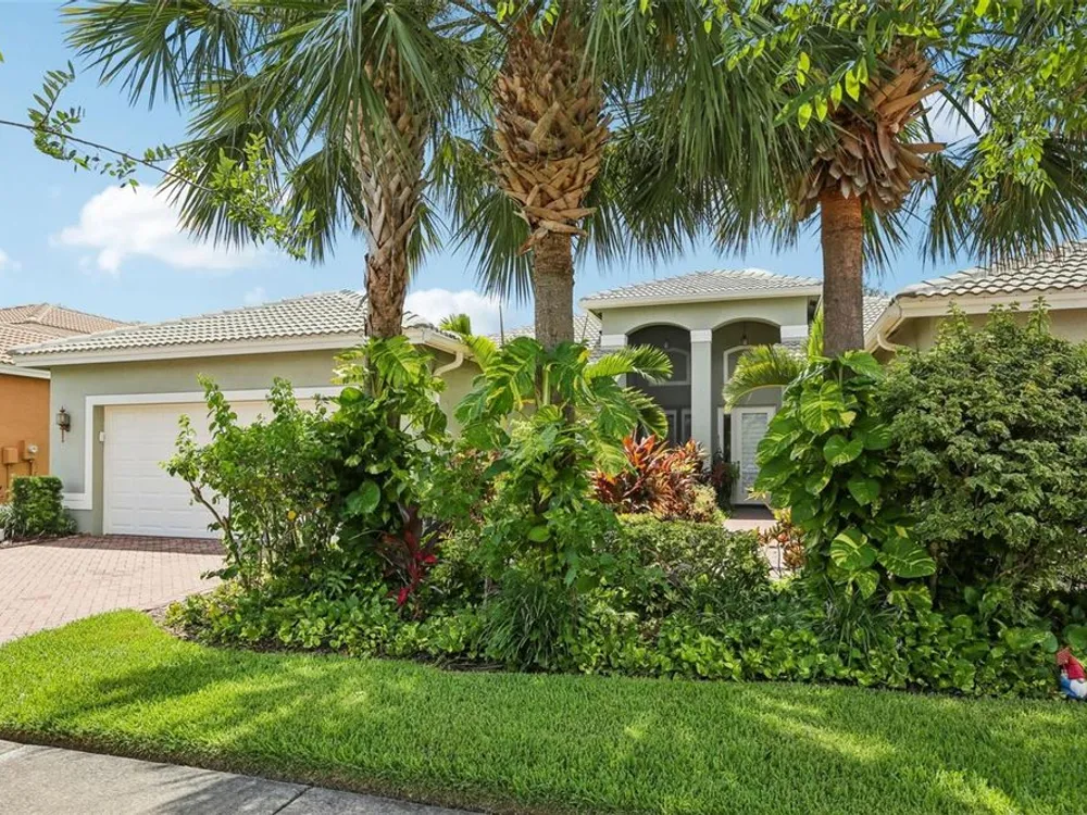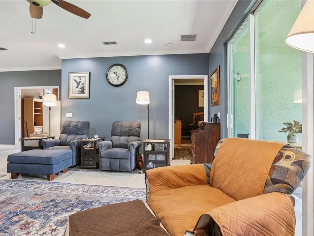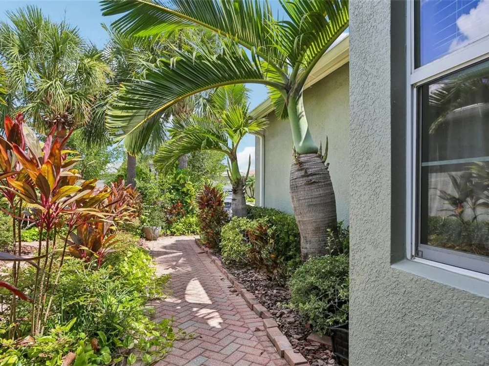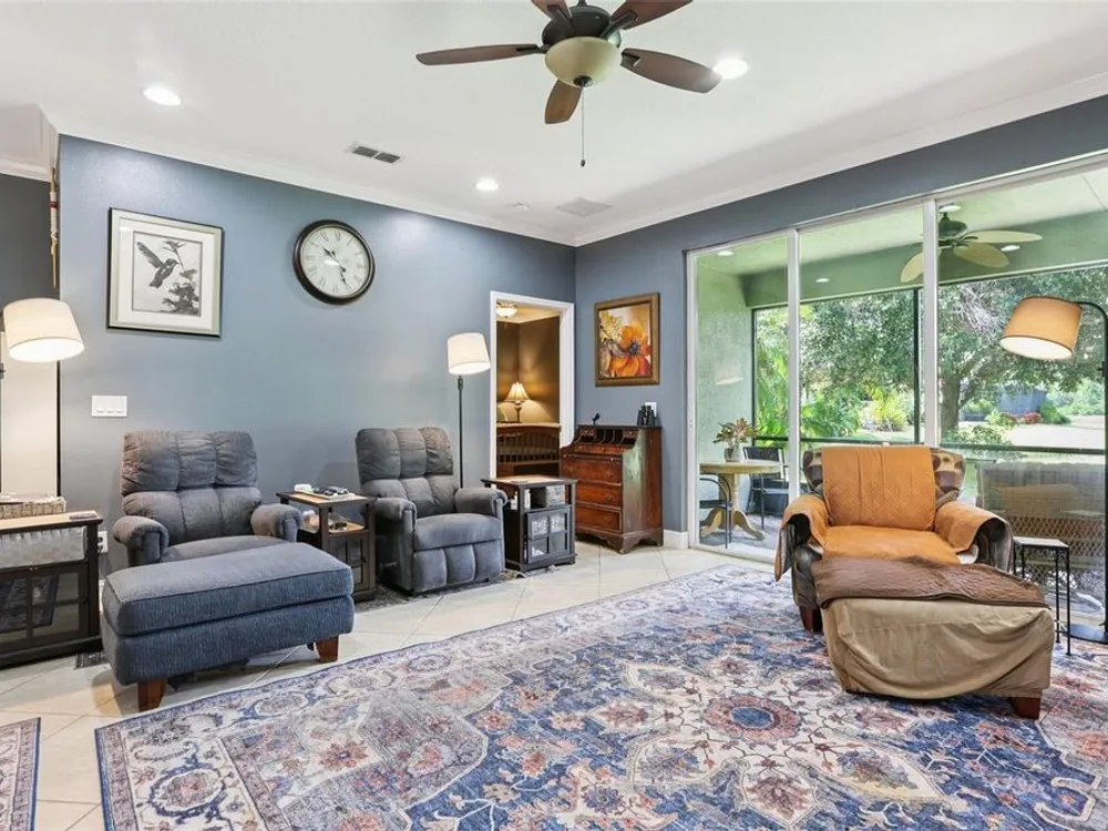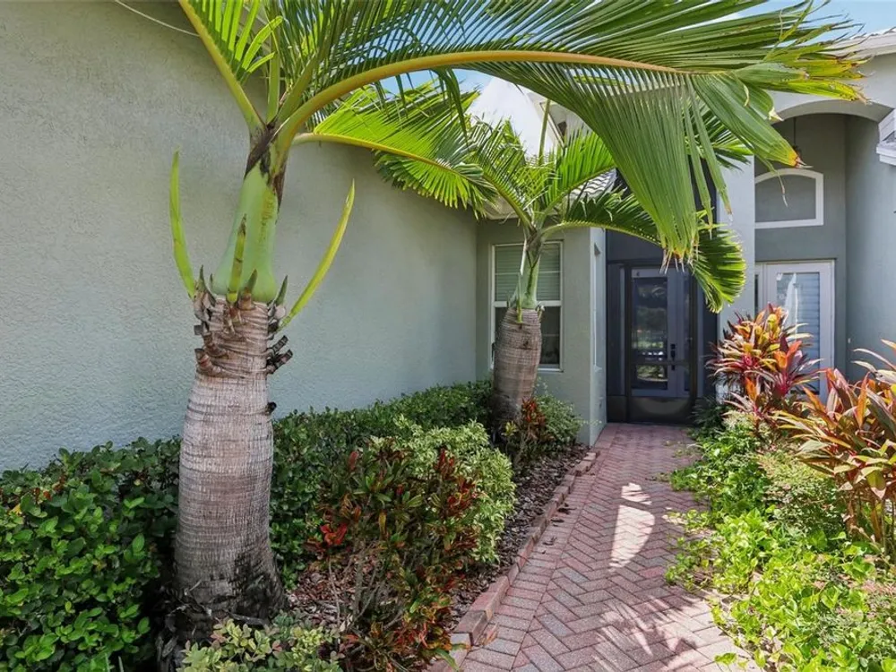 Welcome to your dream home in the sought-after Valencia Lakes community! This beautifully maintained waterfront villa features 2 bedrooms, 2 bathrooms, plus a versatile den that can serve as a 3rd bedroom or office. You'll be greeted by a designer paved driveway and walkway, surrounded by lush, professionally landscaped plants, creating a warm and inviting curb appeal. Inside, enjoy a bright, open-concept layout with soaring ceilings and seamless flow between the living, dining, and kitchen areas. The spacious kitchen offers stainless steel appliances, an eat-at bar, abundant cabinet and pantry space, and a cozy dinette nook with a convenient laundry closet. Take in stunning water views through large sliding glass doors leading to the screened-in lanai—perfect for relaxing or entertaining. The generously sized primary suite includes a spa-like en suite bathroom with double sinks, stand up shower and a private water closet. Plus a large walk in closet off the bathroom with plenty of room for all your needs. Valencia Lakes is a premier 55+ active adult golf cart community, offering a vibrant lifestyle surrounded by resort-style amenities. The community features a stunning 40-acre waterfront outdoor recreation area with a heated resort pool, lap and resistance pools. Residents enjoy access to a 40,000 sq. ft. clubhouse, Har-Tru tennis courts, a state-of-the-art fitness center, half-court basketball, pickleball and bocce courts, a dog park, baseball park, and a community garden. For outdoor enthusiasts, there’s over 100 acres of preserved natural areas, perfect for enjoying peaceful water views, birdwatching, and local wildlife. Additional conveniences include RV and boat storage and hundreds of clubs and activities to suit every interest. Valencia Lakes is known for its warm, welcoming neighbors and strong sense of community — the perfect place to enjoy an active and fulfilling lifestyle.