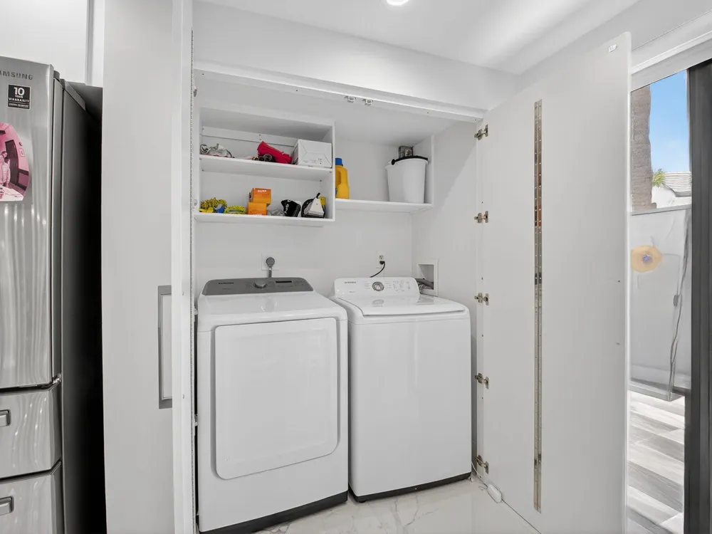 - Dishwasher, Disposal, Dryer, Ice Maker, Microwave, Electric Range, Refrigerator, Smoke Detector, Washer, Electric Water Heater