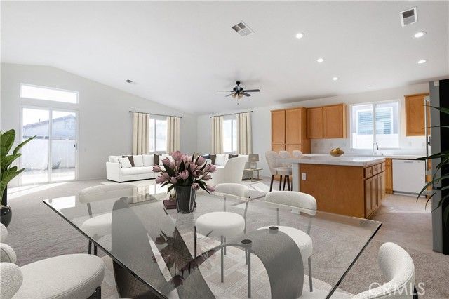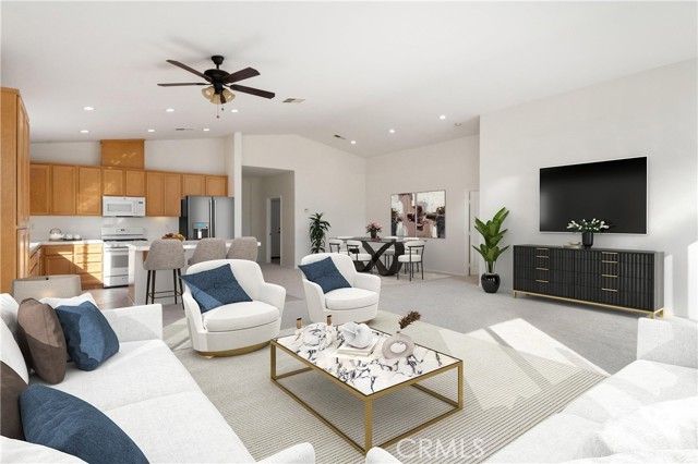 ~~ BEST VALUE IN FOUR SEASONS FOR OVER 2,000 Sq Ft!! ~~Move-in ready HERITAGE III model in the prestigious 55 + gated community of Four Seasons in Beaumont. Gated and controlled access at Guard Shack. 2 BEDROOMS / 2 BATHROOMS + DEN / OFFICE. 2076 Sq Ft of living space with an attached 2-car garage. ~~NEW EXTERIOR PAINT~~NEW INTERIOR PAINT~~NEW CARPET~~Open floor plan w/ high ceilings and lots of natural light. Tile entry. Large Kitchen with island, oak cabinets, and recessed lights. HUGE Great Room off the kitchen. Large Secondary Bedrooms and Den / Office that could be an additional third bedroom. Large Primary Suite includes double closets. Primary Bathroom has dual sinks, powder area and soaking tub. Indoor Laundry Room. Private backyard is low maintenance and has white vinyl fencing. HOA amenities include 3 pools, 3 clubhouses, 3 fitness centers, BBQ area, pickle ball courts, restaurant, beauty salon, many social groups, and walking trails. Close to shopping, medical care, Cabazon Premium Outlet, Morongo Casino, and Palm Springs. ~~MOTIVATED SELLER~~