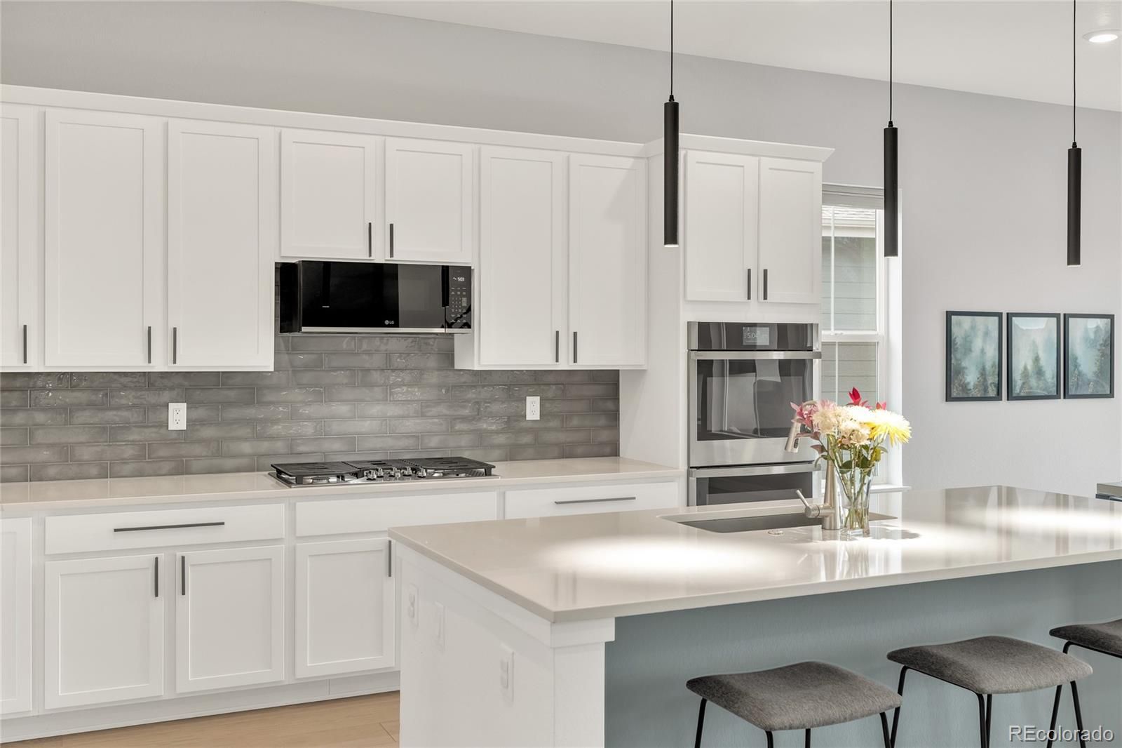 - Ceiling Fan(s), Eat-in Kitchen, Entrance Foyer, High Ceilings, High Speed Internet, Kitchen Island, Open Floorplan, Pantry, Primary Suite, Quartz Countertops, Radon System, Smart Light(s), Smoke Free, Walk-In Closet(s), Wired for Data