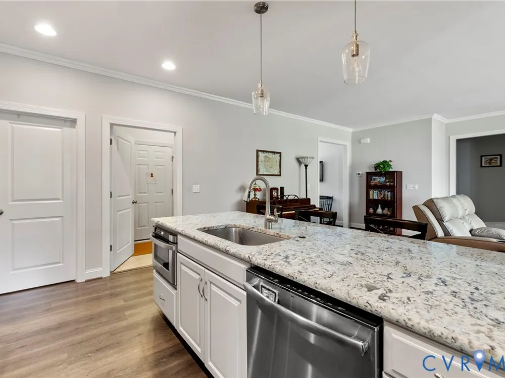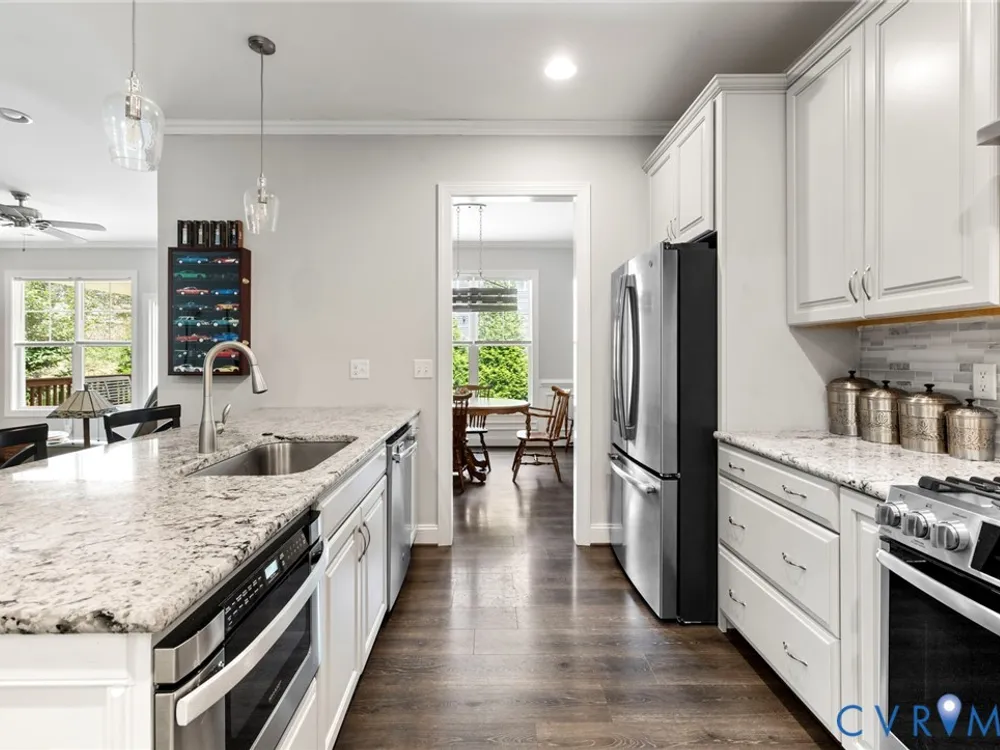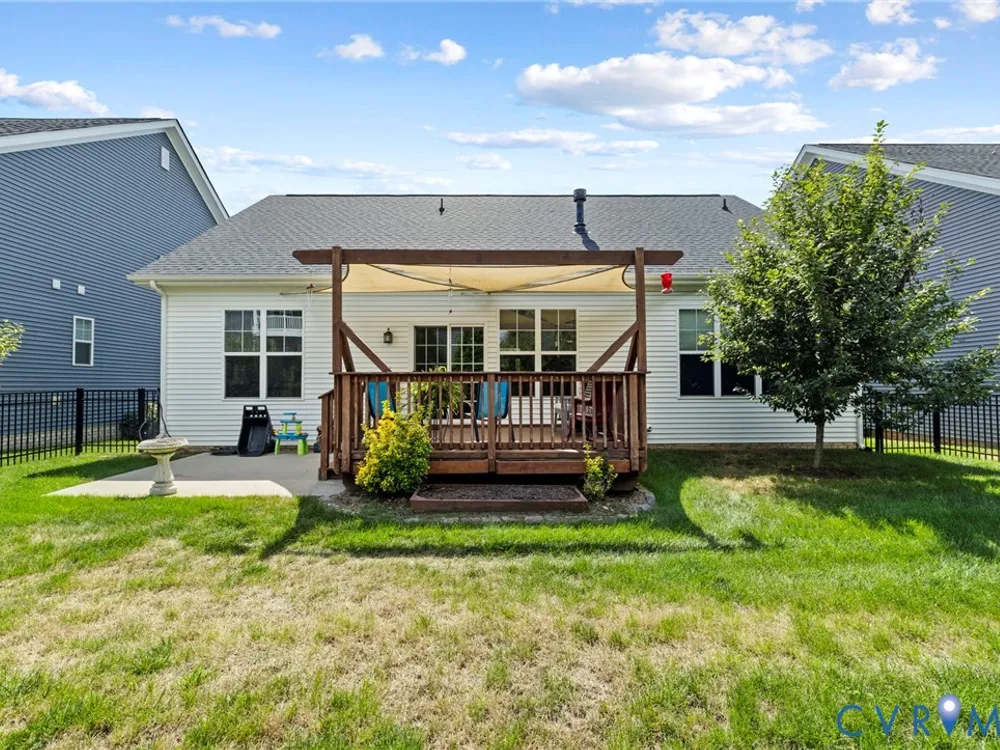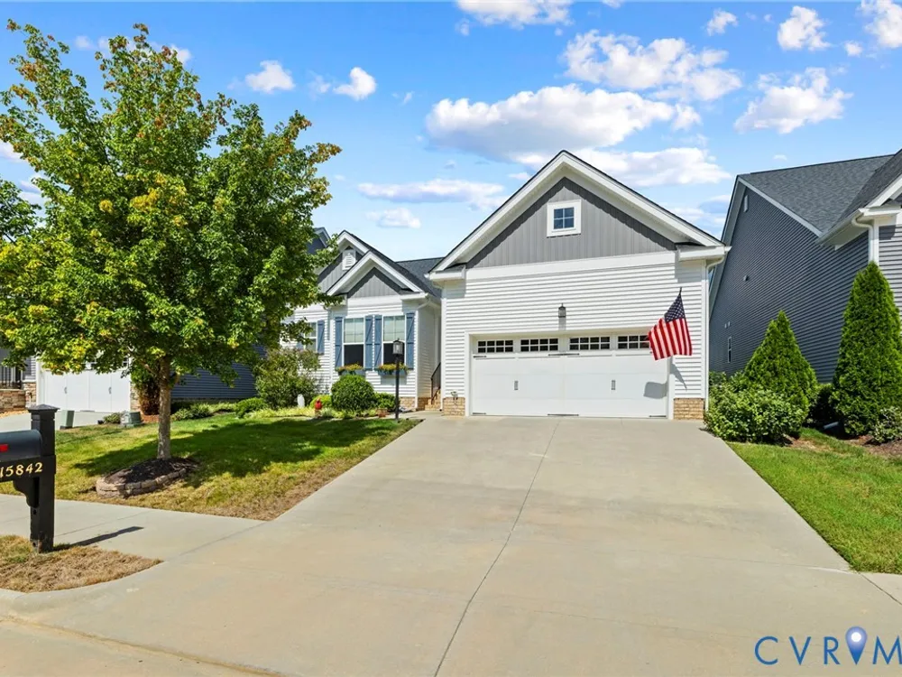 Welcome to 15842 Blooming Road, nestled in the vibrant 55+ community of Kenbrook at Harper’s Mill*Built by Eagle Construction, this beautifully maintained one-level home offers low-maintenance living with timeless style and smart design throughout*Charming curb appeal shines with custom window boxes, shutters, and low-maintenance vinyl siding*The attached two-car garage features built-in shelving for added storage*Inside, enjoy an open-concept layout with seamless flow between the kitchen, dining, and living areas, perfect for entertaining or everyday living*The kitchen is a standout, featuring stainless steel appliances, ample cabinet and counter space, and a walk-in pantry any home chef will love*Two front bedrooms share a full bath, while the spacious primary suite offers a spa-like ensuite and large walk-in closet*Enjoy your personal retreat at day’s end*Step outside to a fully fenced backyard with wrought iron accents and mature trees for year-round privacy and beauty*Backyard is a perfect setting for relaxing or dining*Enjoy the ease of a maintenance-free lifestyle with yard work taken care of, plus community amenities like pickleball courts, pool, walking paths, and more that allow you to stay active and social*Conveniently located near Hull Street with quick access to dining, shopping, and everyday essentials*This location is the perfect blend of comfort, community, and convenience*