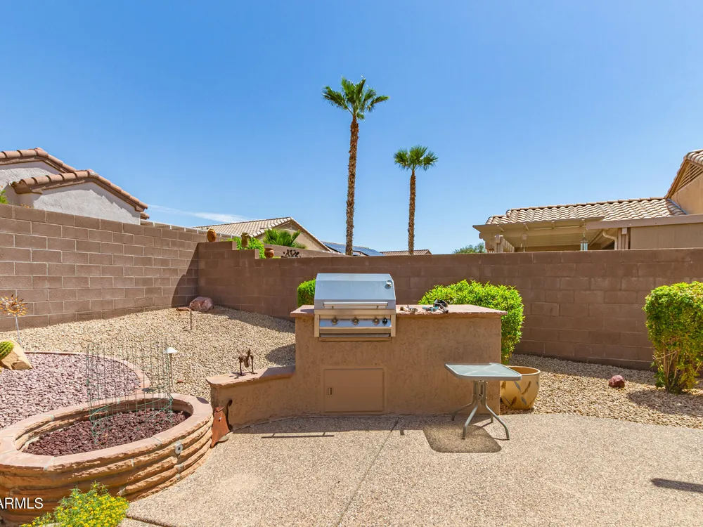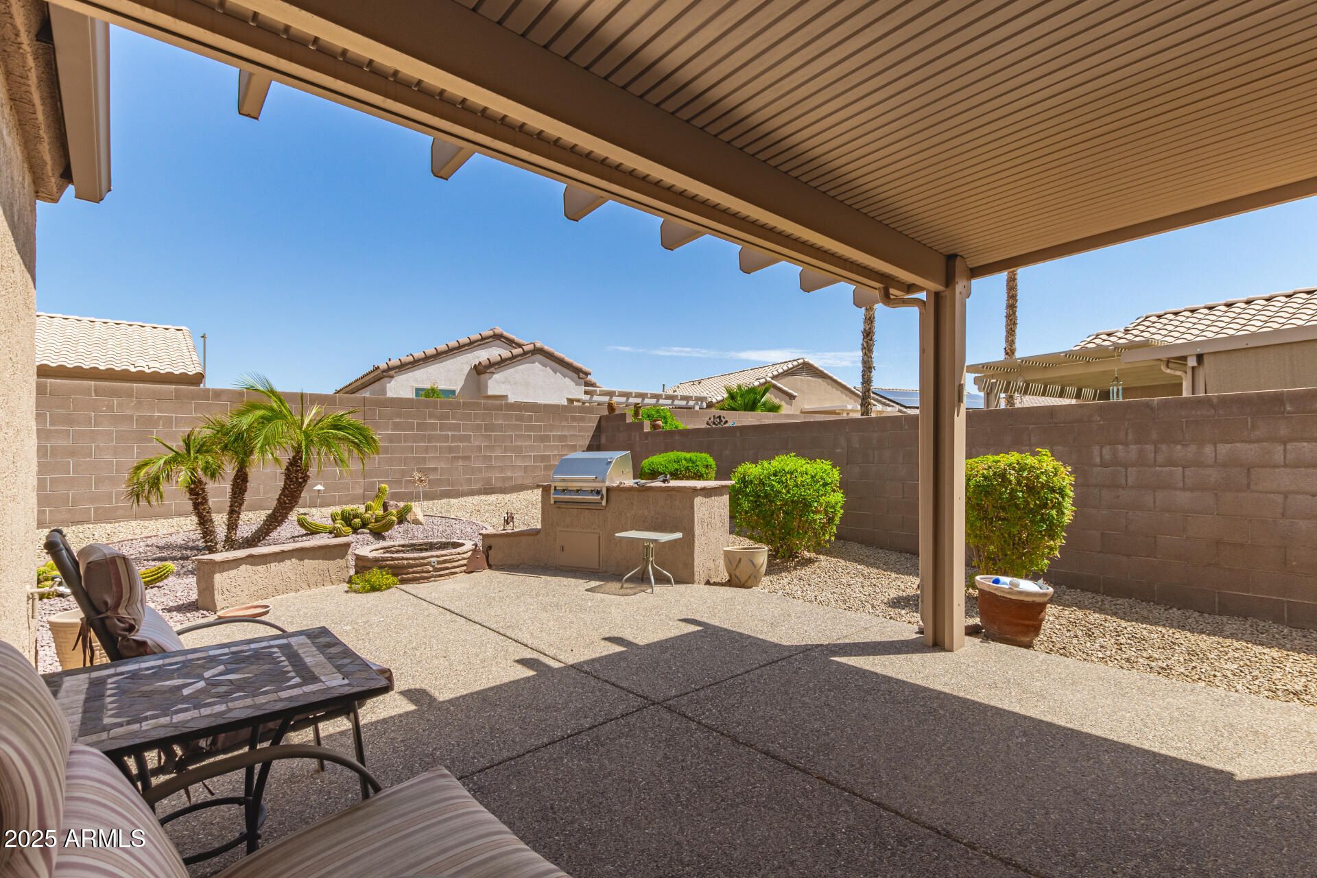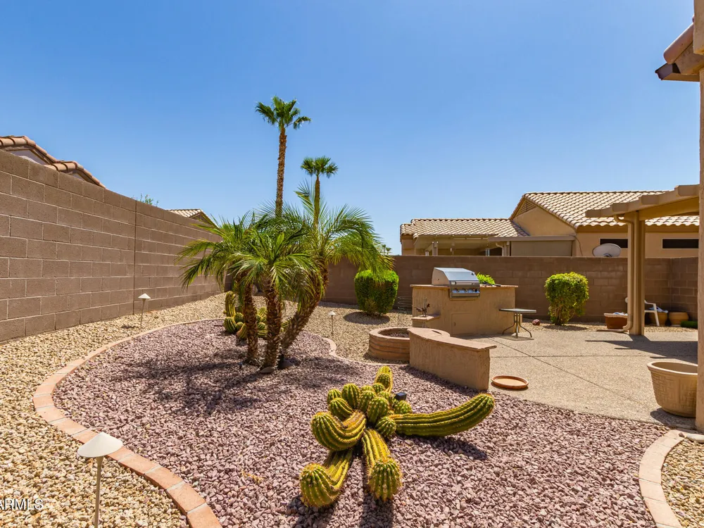 Escape to sunshine in this beautifully updated Juniper model in Sun City Grand! With 3 beds, 2 baths, and 1,400+ sq ft, this home features new floors, granite counters, and fresh paint throughout. The fully landscaped backyard includes a built-in BBQ, covered patio, and fenced yard perfect for relaxing or entertaining. Low-maintenance desert landscaping means more time to enjoy nearby golf, pickleball, pools, clubs, and rec centers. Whether you're seeking a winter getaway or the ideal year-round retirement home, this one checks all the boxes!