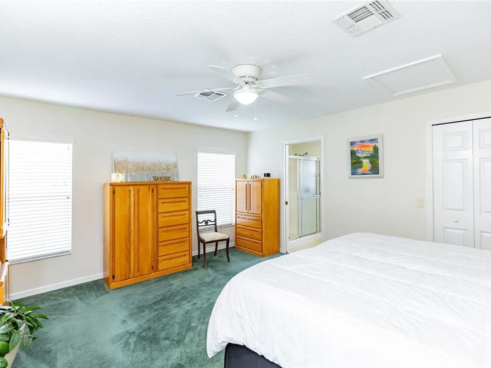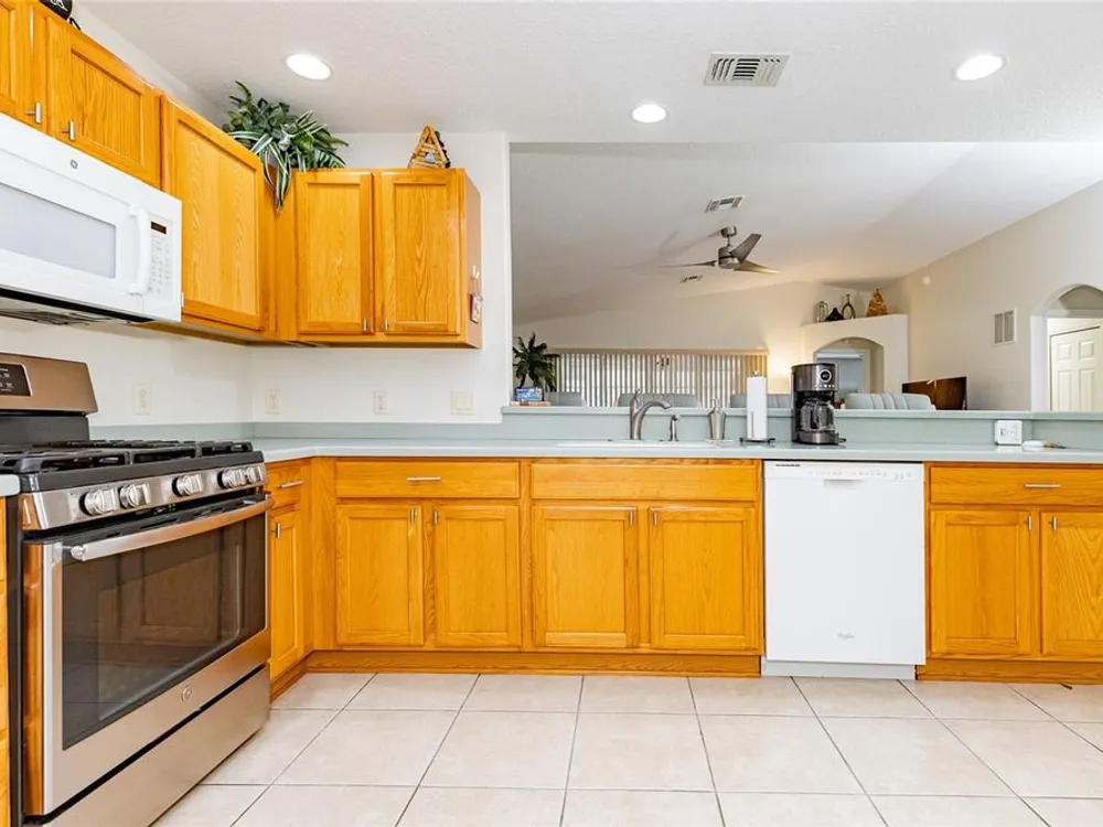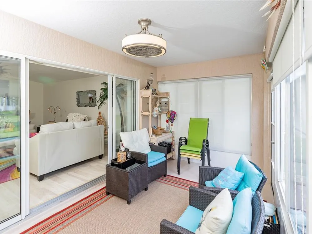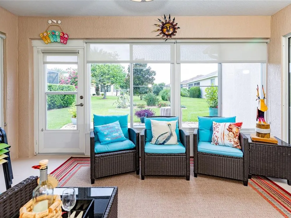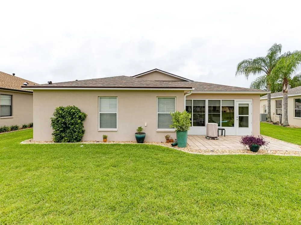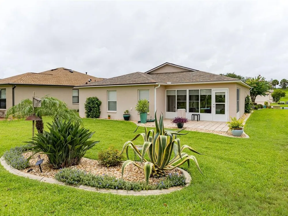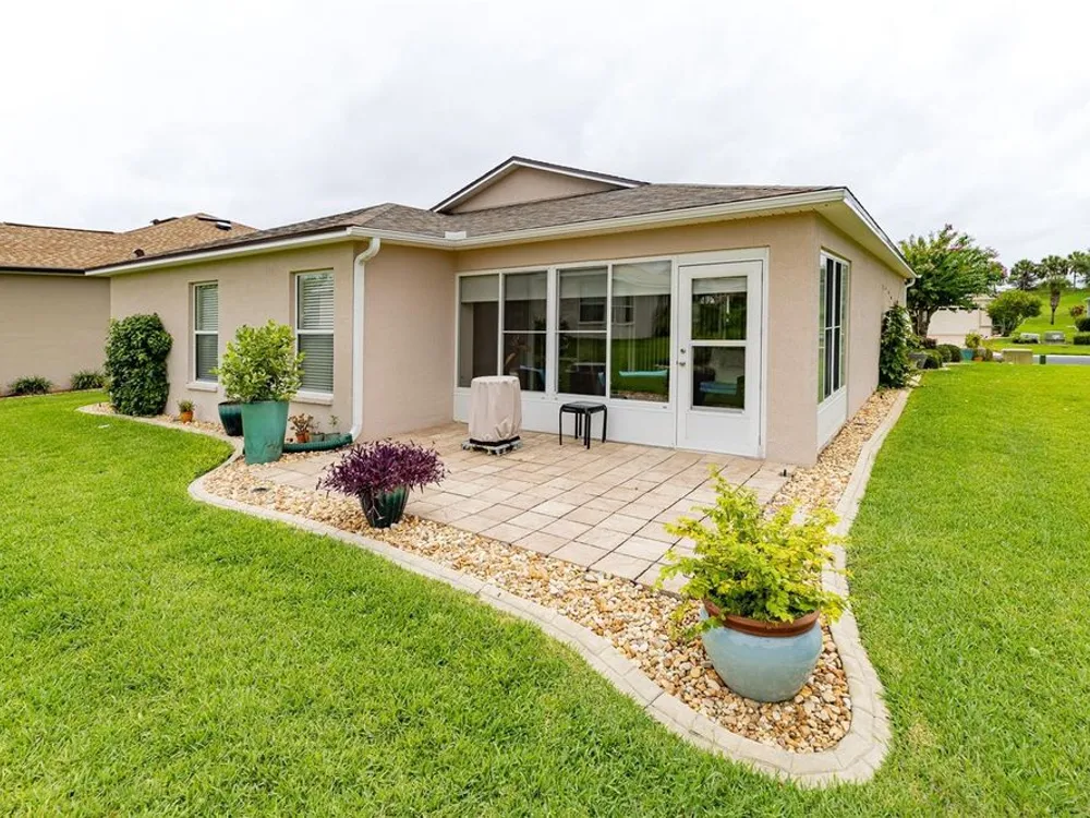 SUMMERGLEN GOLF COURSE COMMUNITY Lot 579. Seller will give CREDIT TOWARD FLOORING. Beautiful, spacious, and immaculately maintained! Featuring a versatile open-concept design, this incredible cottage-style home has tall ceilings and an abundance of windows, creating a bright and welcoming environment to all who enter. Experience the charm of this stunning Captiva model home featuring 2 bedrooms, 2 baths, and a versatile den (which could be a 3rd bedroom). The kitchen shines with exquisite solid surface corian countertops, recess lighting, bar height seating, breakfast nook with Bay window, and closet-pantry for extra storage space, all making it both functional and beautiful. Additional highlights include tile flooring throughout the kitchen, dining room, and foyer. New laminate flooring in the great room, as well as new ceiling light fixtures/fans in the breakfast nook, great room and Florida room. The new solar shades in the Florida room provide privacy as well as shade from the Florida sun. The enclosed Florida room off the back and through 4 sliding doors, offers a comfortable, breezy, and peaceful place for reading, entertaining, or enjoying your morning cup of coffee. And the wildlife that passes by is just breath taking to sit and enjoy. Relax and retreat to the lovely master suite, featuring sliding doors out to the Florida room, and featuring a private bath with step-in shower. The extended garage (21' x 18'10") will allow a full size truck if needed. The exterior of the home impresses with meticulously maintained landscaping, a tasteful color scheme, and a beautiful pie shaped lot with no one directly behind. Recent updates include new 2023 roof, new 2020 40 gallon water heater, new 2019 gas stove, fresh exterior paint in 2019, new 2019 Trane 16 Seer 3.5 ton air conditioner, and new 2019 stainless steel refrigerator. This home sits on an great lot that offers both privacy and room for outdoor activities. The additional paver patio and upgraded landscaping in the front and rear enhance the outdoor living experience. Termite Bond along with quarterly inspections included. Don’t miss out on this home where every detail has been thoughtfully considered to make you fall in love at first sight. HOA fee includes mowing/edging of yard, garbage pickup including recycling, Spectrum Bronze Tier 1 TV and 100 Mbps internet, as well as access to all amenities. Did I mention ALL of the community amenities? All this and more located in an active, gated community featuring club house with lounge area, space for future restaurant and meeting rooms, tons of activities & 70 clubs plus bocce ball, pickleball, tennis courts, softball, heated pool & spa, RV parking, dog parks, and tons more! All of that along with a $30 food and beverage Credit to be used at the new Community Restaurant, "Tavern at the Glen". Come see it before it’s gone!