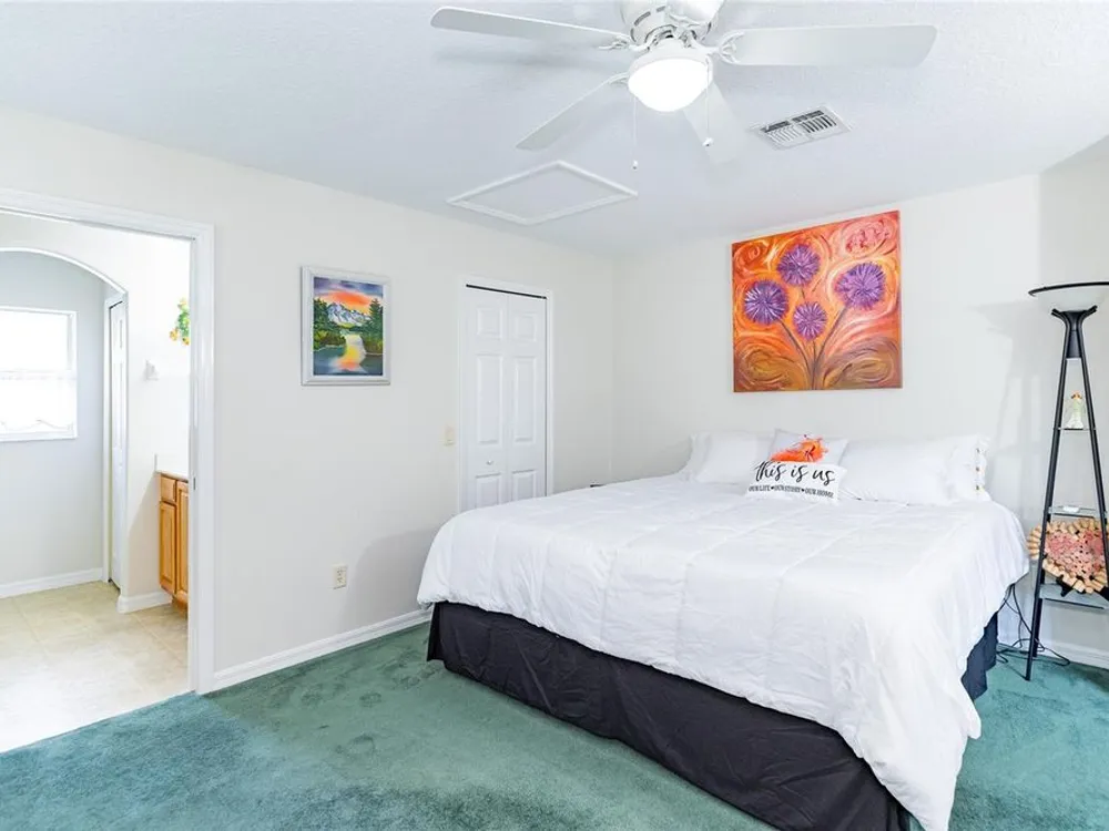 - Ceiling Fan(s), Eat-in Kitchen, High Ceilings, Main Level Primary, Walk-In Closet(s), Window Treatments