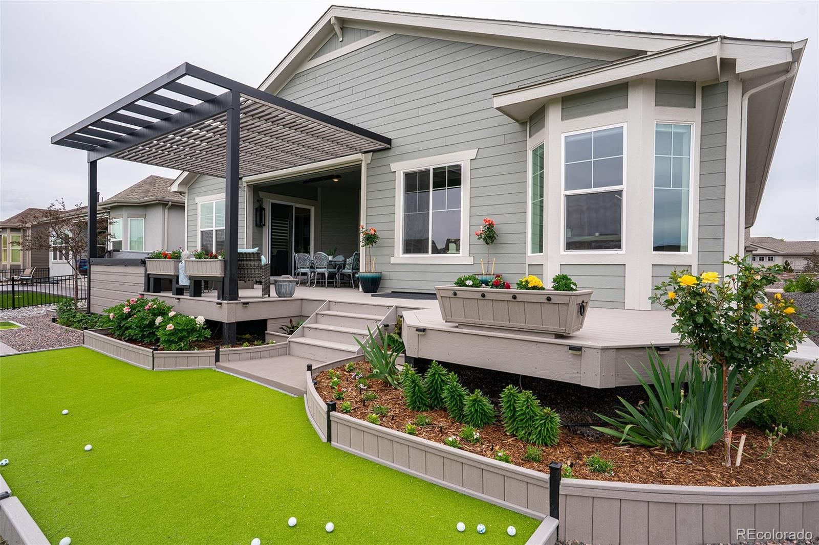 Stunning luxury home in the prestigious gated Todd Creek community! Step inside to discover every detail designed to impress. With an open-concept kitchen and living room, this sprawling ranch-style home delivers. The chef’s kitchen holds expansive prep areas, a walk-in pantry, and abundant counter space—ideal for both cooking and gathering. Spacious dining area, guest en-suite bedroom, bonus room and office. Soak in the spa-inspired primary and secondary baths featuring serene finishes that create a true retreat. New luxury vinyl plank flooring adds durability and elegance, laundry walks-thru from the primary bedroom, excellent storage too! The outdoor living is truly exceptional as it backs to the golf course. The sellers have exquisitely finished the back yard providing the sophistication and style of living you have been waiting for. Enjoy your morning coffee or unwind with friends in the evening. The home’s positioning provides breathtaking golf course views with minimal golf ball exposure for worry-free relaxation. Located within an active adult community, residents enjoy resort-style amenities including walking paths, a clubhouse with fitness center and restaurant, indoor and outdoor pools, sauna, tennis courts, and a vibrant calendar of social activities.
