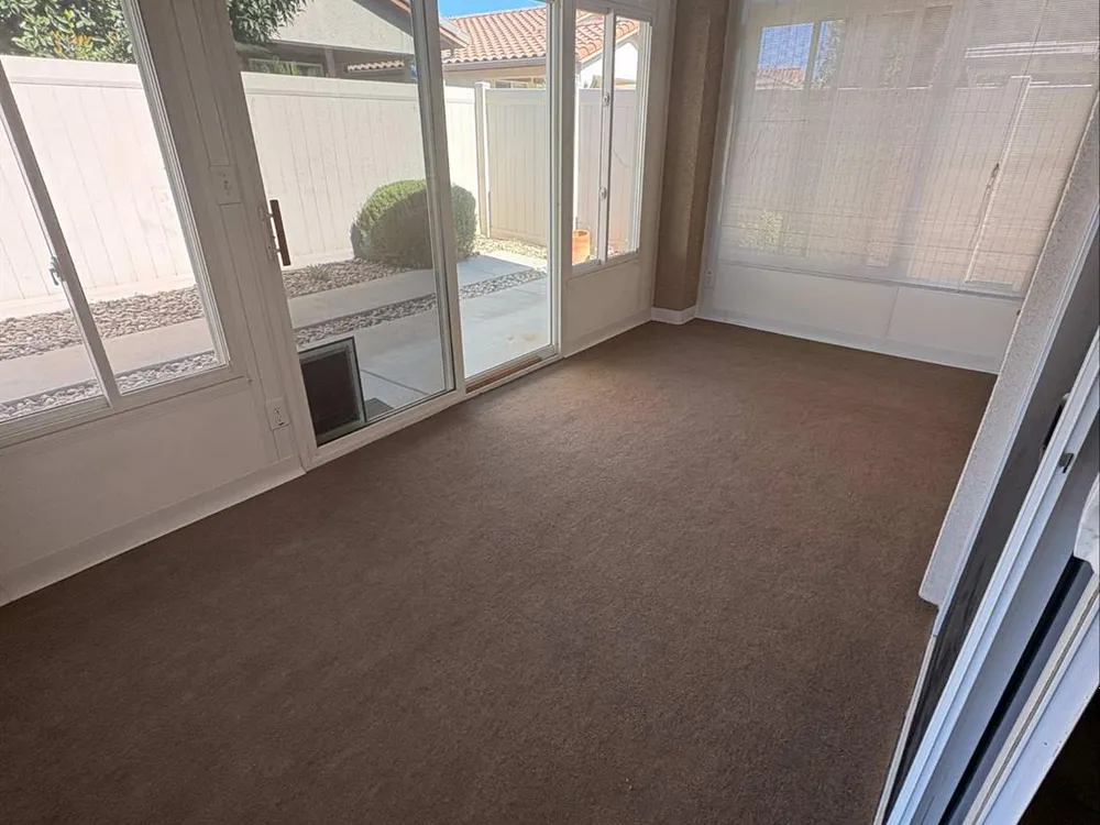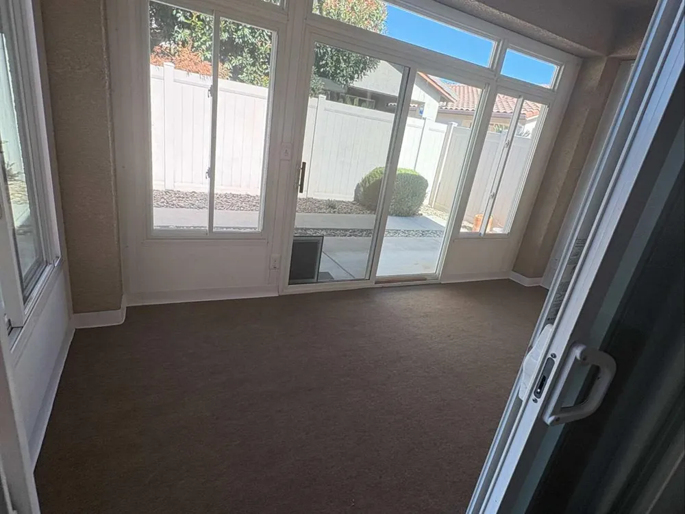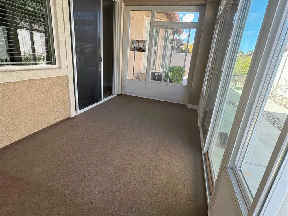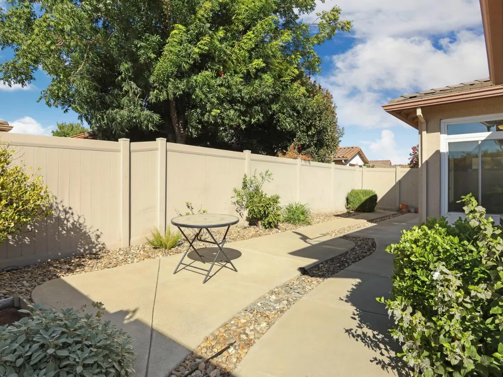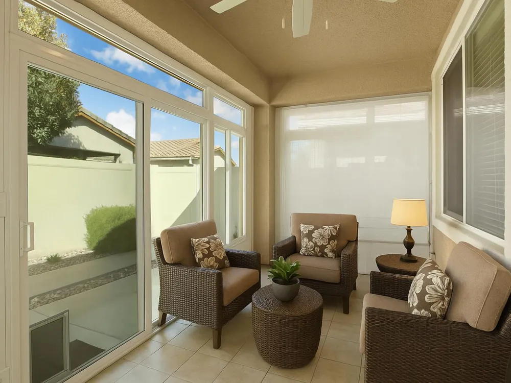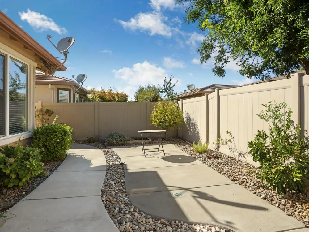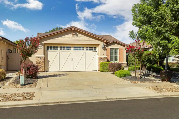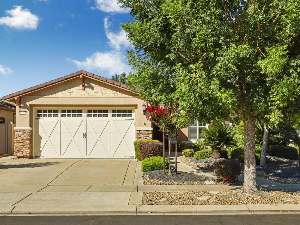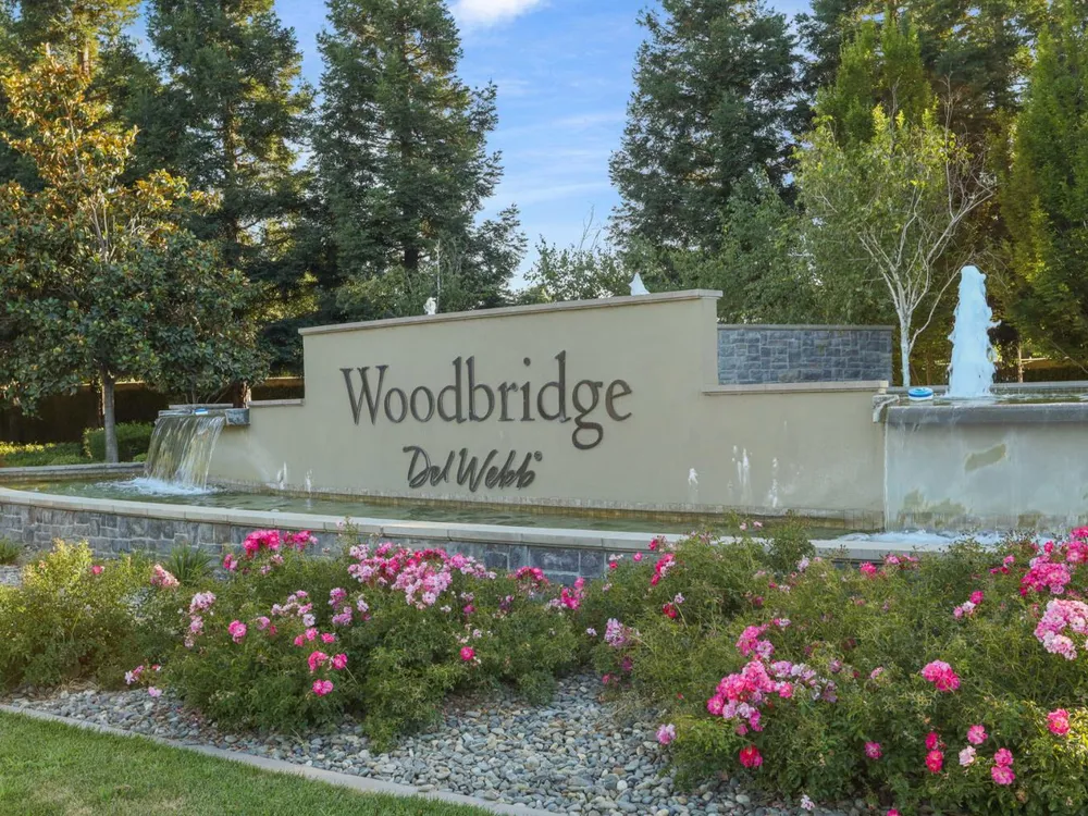 Welcome to this beautifully maintained and thoughtfully upgraded single-story home located in the Del Webb Woodbridge 55+ Adult community. Designed for comfort, convenience and low maintenance to allow time to enjoy the lifestyle. Situated on a manicured lot with a water conserving landscaped front yard and a welcoming front patio sitting area, this home offers both charm and functionality. Step inside to discover an open and flexible floorplan, including a dedicated office/den that can be used as a third bedroom and a bright 113 sq ft sunroom/flex space. The kitchen features maple cabinets, granite counters and an island with bar seating. The spacious master bedroom includes a cozy sitting area and easy-access features like no-lip entry to the home and primary shower for added mobility and comfort. Additional features include refrigerator, washer and dryer, built-in iWave-R Ionization Air Purifier, an owned alarm system, two security screen doors, and an approved emergency key box for added safety and peace of mind. The backyard is designed for low-maintenance living, offering space to enjoy without the upkeep. Community amenities include 2 pools, hot tub, bocce ball, softball, golf, clubs, activities and much more. Conveniently located near shopping, parks and freeway access.