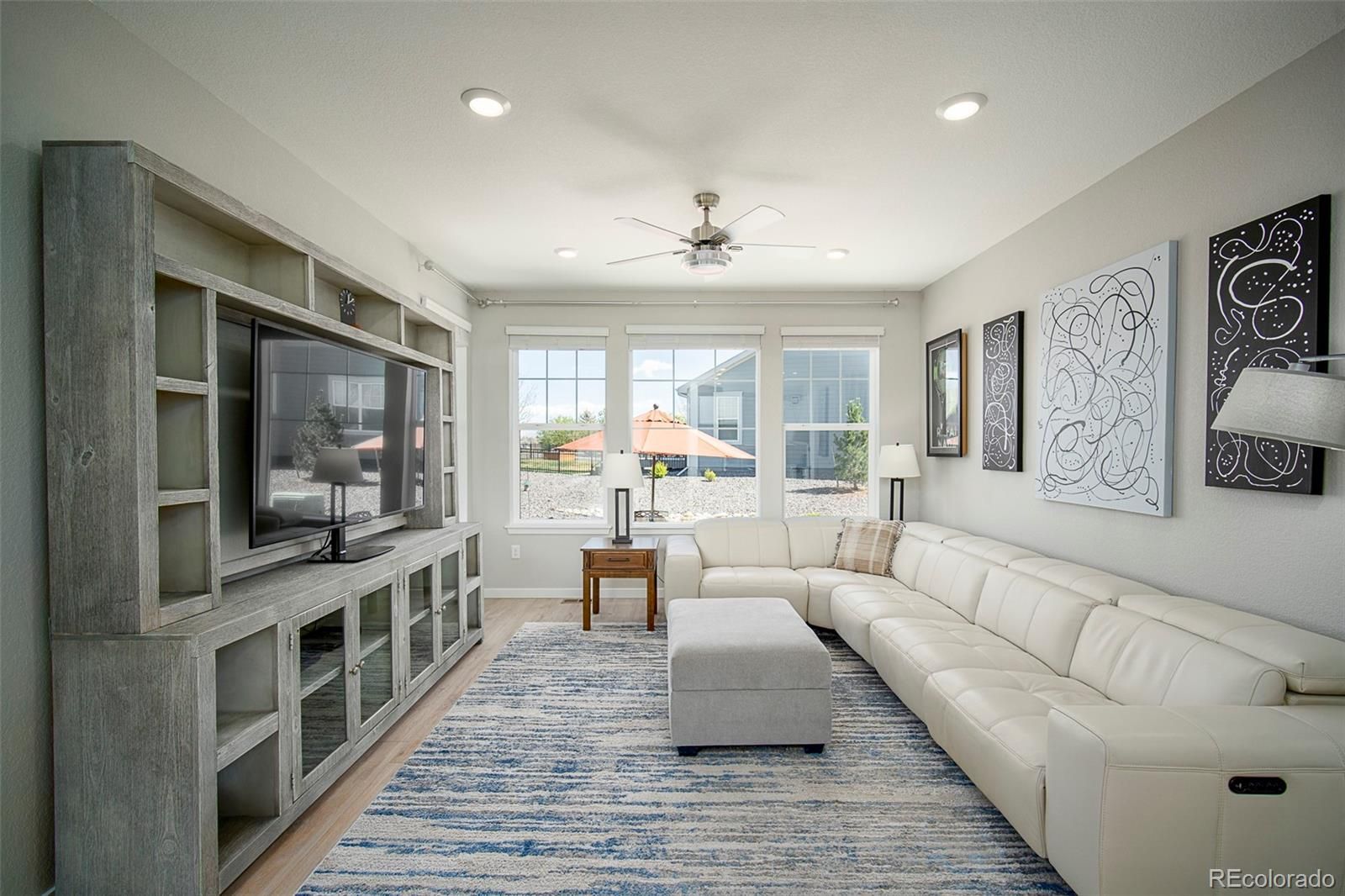 Welcome to effortless living in this vibrant 55+ community, designed for both relaxation and active lifestyles. Residents enjoy exceptional amenities including a beautifully maintained golf course, an inviting clubhouse, a fully equipped fitness center, sparkling indoor/outdoor pools, a restaurant and library, well-kept tennis courts and pickleball courts, along with social activities and clubs—everything you need just steps from your door. This thoughtfully designed home offers low-maintenance living with attractive xeriscaping in both the front and back yards, along with durable Trex decking—perfect for enjoying the outdoors without the upkeep. Inside, the layout is both functional and inviting. At the front of the home, a dedicated office space provides the ideal setting for work or hobbies. Each of the two secondary bedrooms feature their own full bath, offering comfort and privacy for guests. At the heart of the home, you’ll find a spacious kitchen complete with quartz countertops, a large island, stainless steel appliances and a pantry. The open-concept design seamlessly connects the kitchen to the dining area and great room, with easy access to a covered deck and back patio—perfect for indoor-outdoor living and entertaining. The primary suite is bright and welcoming, featuring an ensuite bath with dual vanities, glass-enclosed shower with built-in seating, and a generous walk-in closet, creating a private retreat to unwind at the end of the day. This home combines modern comfort, smart design, and a prime location within a community that truly has it all.