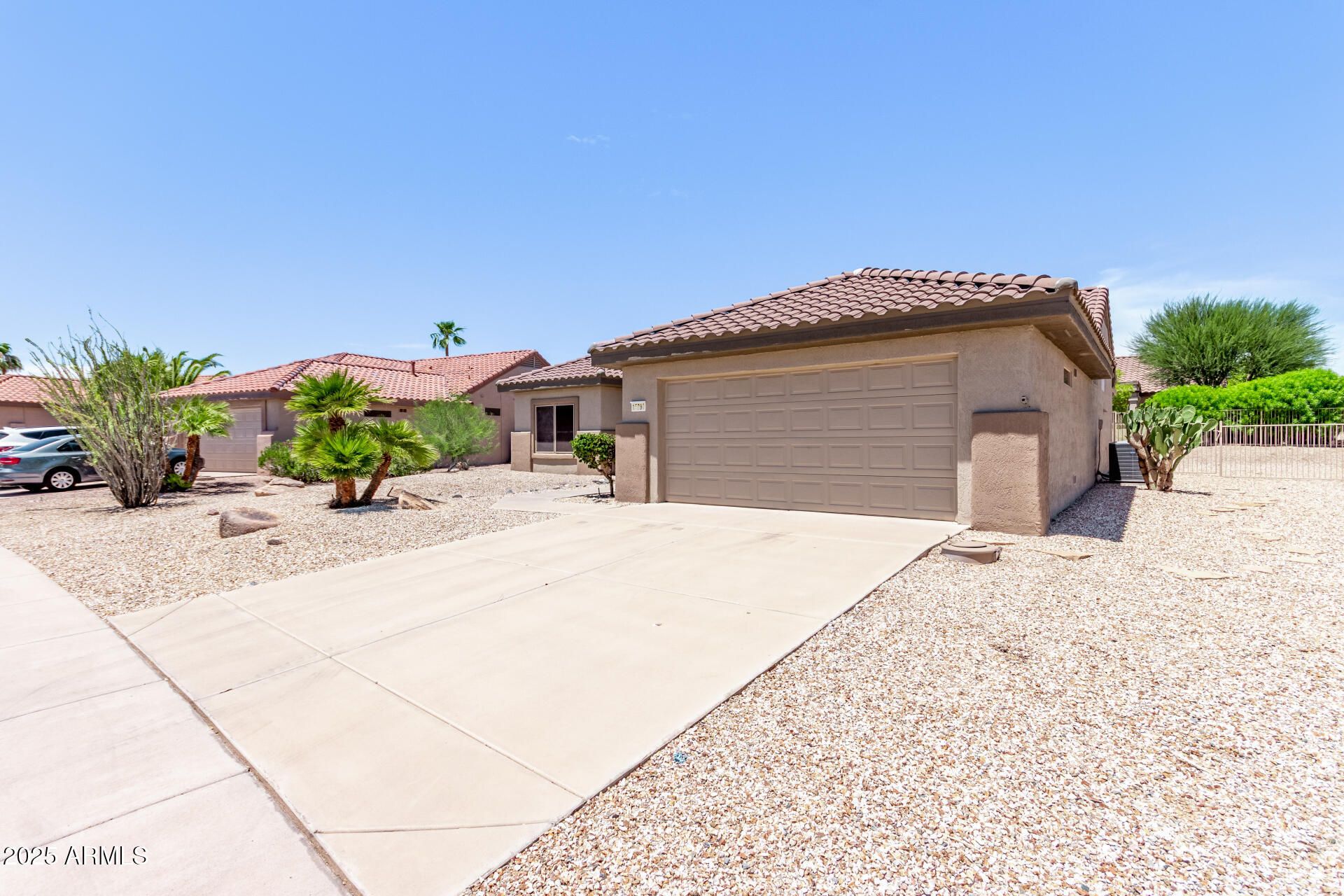Stop searching for your retirement home! This one-story gem in the active adult Sun City Grand is the one! Lovely curb appeal, low-care landscaping, and a 2-car garage for your cars. Great open layout with soft carpet and media niche in the living area that provides endless entertainment. Beautiful kitchen has built-in appliances, a pantry, plenty of cabinets, ample counters, and a peninsula with a breakfast bar. Delightful main bedroom offers a sunny bay window perfect for a sitting area, a walk-in closet for your belongings, and a private bathroom for comfort. Finally, the serene backyard is ideal for relaxing under the full-length covered patio while admiring your low-care patio. Enjoy the community pool, spa, clubhouse, and more. Don't wait any longer!