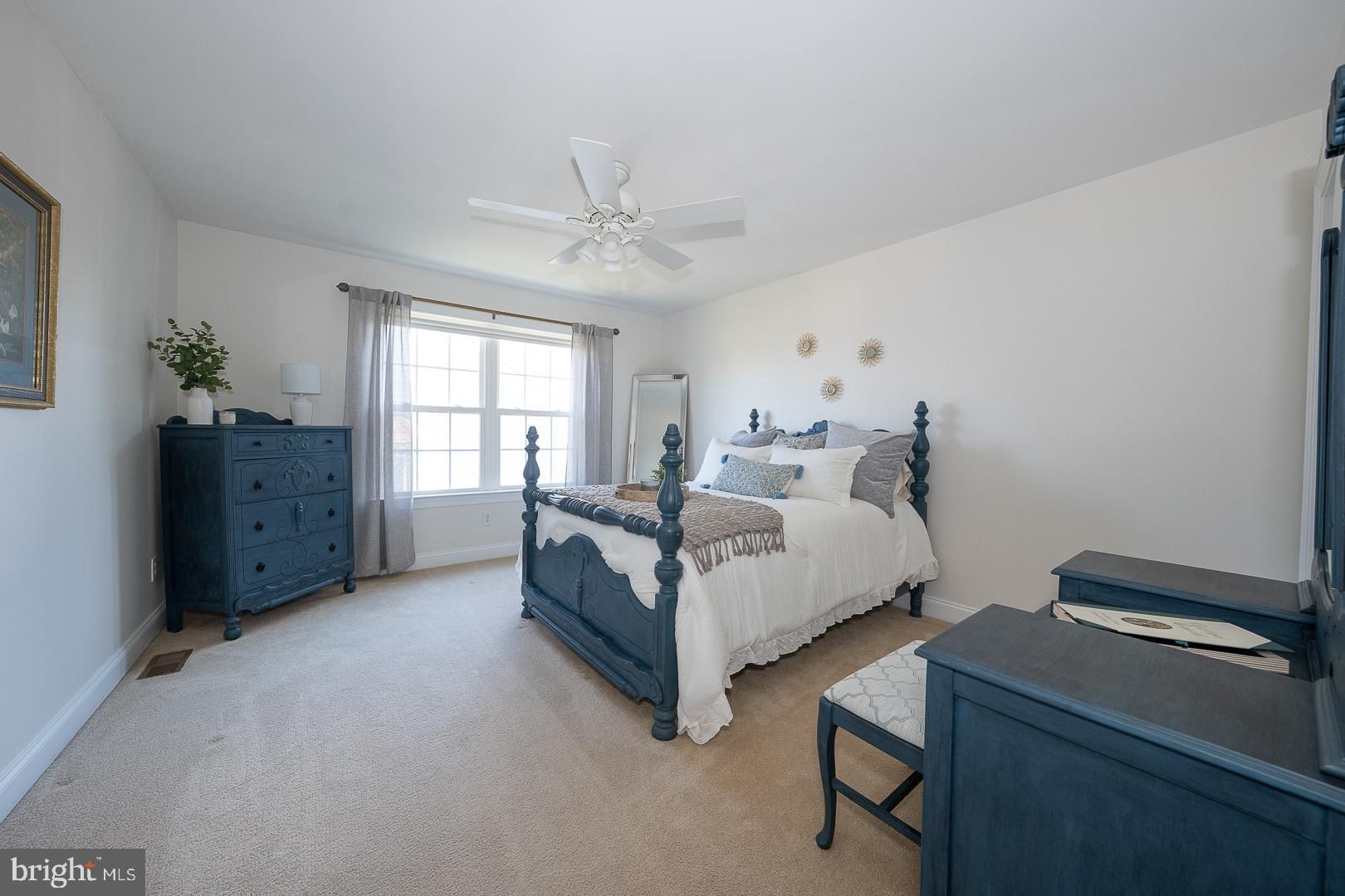At the rear of the home, you'll enjoy sweeping views of the rolling Chester County fields. The primary bedroom suite is located off the hall near the front entrance, Before entering the spacious primary bedroom, you'll pass a convenient powder room. The primary bedroom suite boasts dual closets and a luxurious tiled en-suite bathroom featuring a soaking tub, a large shower and a double vanity.