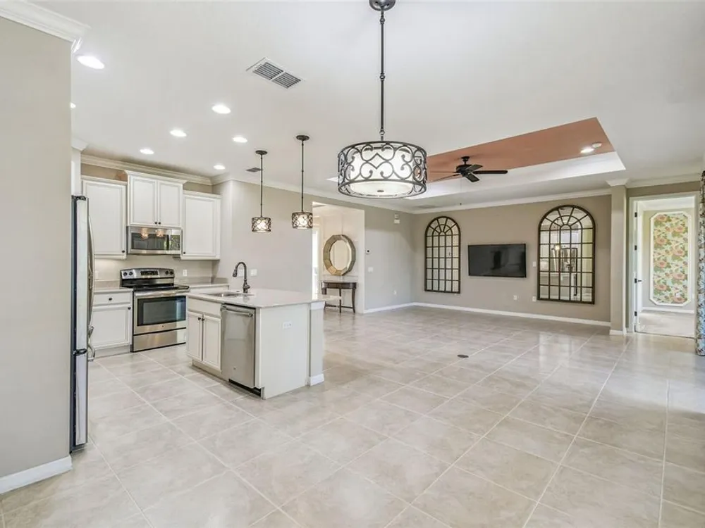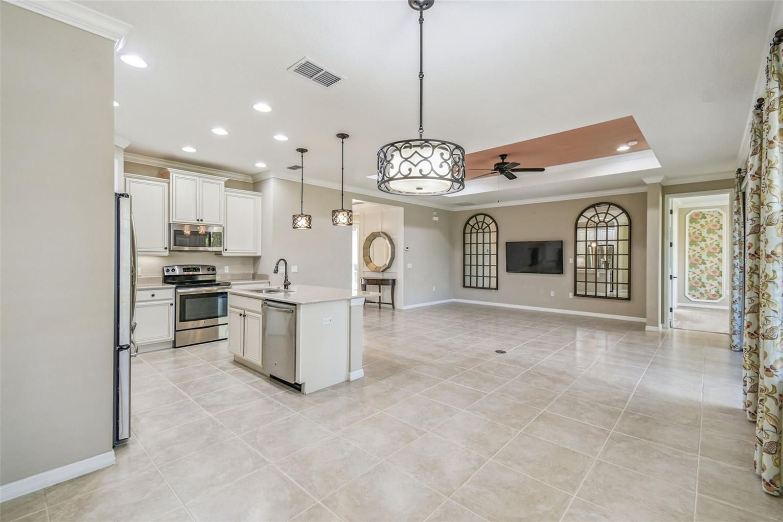- Crown Molding, Kitchen/Family Room Combo, Open Floorplan, Main Level Primary, Split Bedrooms, Stone Counters, Tray Ceiling(s), Walk-In Closet(s), Window Treatments