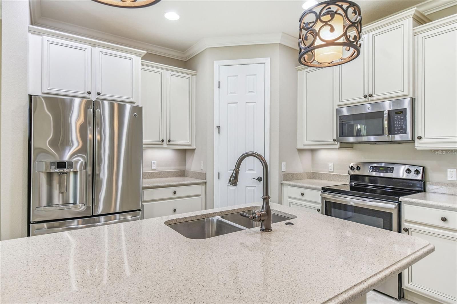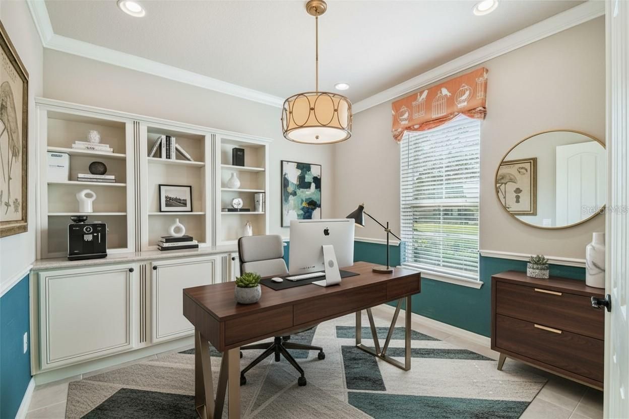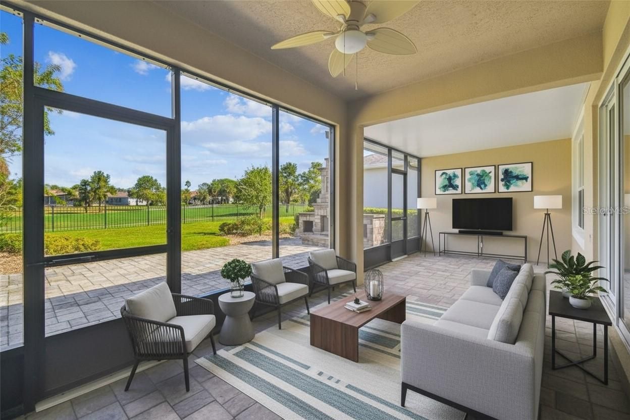 One or more photo(s) has been virtually staged. PRICE REDUCTION! Location, Location, Location! This stunning builder’s custom Cabella Model offers the perfect combination of luxury, comfort, and convenience. Ideally situated just a short distance from the main gate and a quick walk to the Village Center with its amenities, restaurants, and events, this home truly has it all. Enjoy expansive golf course views from this 2-bedroom, 2-bath home with a den/study and a climate-controlled workshop/hobby room. Designed as a builder’s model, this residence boasts numerous custom upgrades and has been meticulously cared for—LIVED IN ONLY FOUR YEARS! Step through the stone façade and leaded glass front door into a bright, open-concept living area that seamlessly flows to the screened lanai and the serene golf course beyond. The chef’s kitchen features Quartz counters, an eat-at bar, walk-in pantry, and abundant cabinetry, while the dining area offers beautiful views of the lanai and fairway. The spacious primary suite includes an en-suite bath with Quartz counters, dual sinks, a walk-in shower with seat, and an oversized walk-in closet. The guest bedroom and guest bath with walk-in shower, are thoughtfully positioned on the opposite side for privacy. The den/study is enhanced with custom built-in cabinetry and shelving. Outdoor living is at its finest with a screened lanai, a large pavered patio, and a custom outdoor fireplace—perfect for entertaining. Additional highlights include: CDD Debt Paid Off. Custom landscaping & pavered walkway. Tray ceilings & crown molding. Whole-house water filtration system with UV light. Extra closet shelving. New bedroom carpets (2021). Air-conditioned shop/craft room with storage. This home combines elegance, functionality, and upgrades in a premier location—don’t miss this opportunity! All this in one of the top 55+ communities in America. Solivita offers residents access to state of the art amenities and work out facilities, dance and aerobics studios, a business center, 14 heated swimming pools, 2 heated spas, tennis courts, pickleball courts, shuffleboard, bocce ball, billiards room, art gallery, 3 restaurants and 2 championship 18-hole golf courses, driving range and putting course. Every day offers something new to explore and enjoy! This home also features easy access to nearby shops, dining, and health care, offering the perfect balance of privacy and lifestyle. Don't miss out on the opportunity to have a first class lifestyle.