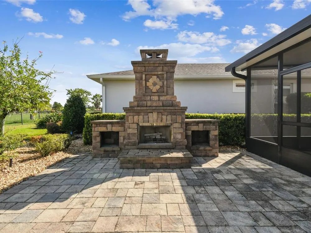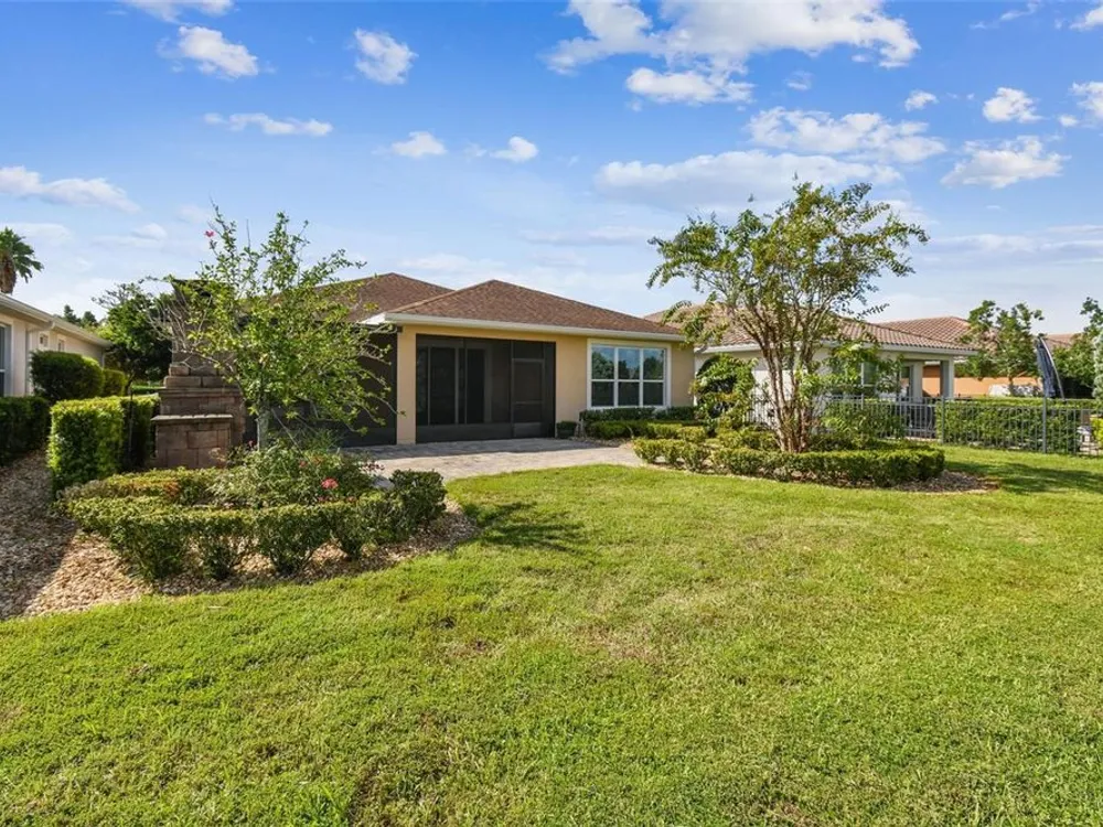 PRICE REDUCTION! Location, Location, Location! This stunning builder’s custom Cabella Model offers the perfect combination of luxury, comfort, and convenience. Ideally situated just a short distance from the main gate and a quick walk to the Village Center with its amenities, restaurants, and events, this home truly has it all. Enjoy expansive golf course views from this 2-bedroom, 2-bath home with a den/study and a climate-controlled workshop/hobby room. Designed as a builder’s model, this residence boasts numerous custom upgrades and has been meticulously cared for—LIVED IN ONLY FOUR YEARS! Step through the stone façade and leaded glass front door into a bright, open-concept living area that seamlessly flows to the screened lanai and the serene golf course beyond. The chef’s kitchen features Quartz counters, an eat-at bar, walk-in pantry, and abundant cabinetry, while the dining area offers beautiful views of the lanai and fairway. The spacious primary suite includes an en-suite bath with Quartz counters, dual sinks, a walk-in shower with seat, and an oversized walk-in closet. The guest bedroom and guest bath with walk-in shower, are thoughtfully positioned on the opposite side for privacy. The den/study is enhanced with custom built-in cabinetry and shelving. Outdoor living is at its finest with a screened lanai, a large pavered patio, and a custom outdoor fireplace—perfect for entertaining. Additional highlights include: CDD Debt Paid Off. Custom landscaping & pavered walkway. Tray ceilings & crown molding. Whole-house water filtration system with UV light. Extra closet shelving. New bedroom carpets (2021). Air-conditioned shop/craft room with storage. This home combines elegance, functionality, and upgrades in a premier location—don’t miss this opportunity! All this in one of the top 55+ communities in America. Solivita offers residents access to state of the art amenities and work out facilities, dance and aerobics studios, a business center, 14 heated swimming pools, 2 heated spas, tennis courts, pickleball courts, shuffleboard, bocce ball, billiards room, art gallery, 3 restaurants and 2 championship 18-hole golf courses, driving range and putting course. Every day offers something new to explore and enjoy! This home also features easy access to nearby shops, dining, and health care, offering the perfect balance of privacy and lifestyle. Don't miss out on the opportunity to have a first class lifestyle.