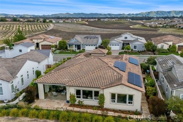 Welcome to the Riviera, a stunning Estate home offering breathtaking views of the Pacific Ocean, sand dunes, vineyard and mountains: Impeccably designed for optimum daily living and stylish entertaining. This 3 bedroom, 3.5 bath, plus office home offers an abundance of upgrades - over $400,000 worth, on top of a $200,000 lot premium. You’ll appreciate the gorgeous engineered wood flooring, plantation shutters, Silhouette shades with blackout option, and luxurious light fixtures throughout. Enter through a Dutch door into a private portico/courtyard with serene landscaping, tiered fountain, radiant ceiling heaters, multiple seating areas, plus a private entrance to the Casita. Step into the main home and you’ll discover a music room/office, plus culinary kitchen, spacious great room and dining space with abundant natural light and incredible open views. The kitchen features rich, soft-close Shaker style cabinetry, GE Profile appliances, including a gas cooktop with stainless hood, double wall oven, built-in refrigerator, white quartz island and countertops and tiled backsplash. Adjacent, is a supersized walk-in pantry and fully-customized Smart Space/laundry room. The outdoor space is equally amazing with a numerous fruit trees, raised garden beds, spectacular views, and the “California Room”, a screened and sliding glass enclosed 320 sq. ft. patio with radiant ceiling heaters, flagstone floors, fireplace with flagstone hearth and a secluded hot tub for sunset relaxation. At night, retire to the owner’s suite, an inviting well-appointed bedroom with a luxurious spa bath featuring a walk-in shower, separate dual sinks, soaking tub, walk-in closet with/dual-sided mirrored door and linen storage. The guest wing includes a powder room, 2nd bedroom with full en-suite bath, and the independent air conditioned Casita with bedroom/sitting area, full bath and walk-in closet. Additionally, there’s a 3-car tandem garage with showroom epoxy floors, storage wall panels, custom cabinetry, and storage. High tech upgrades - LifeSource whole house water filtration system, additional owned solar panels, two owned Tesla power walls and an integrated security system with key-less entries. You’ll never want to leave this meticulously designed home, but when you do, you’ll be part of the unique Trilogy experience with championship golf, pickleball, tennis, member-led clubs, exclusive lifestyle activities, two award-winning restaurants, fitness center and Sandalwood Spa.