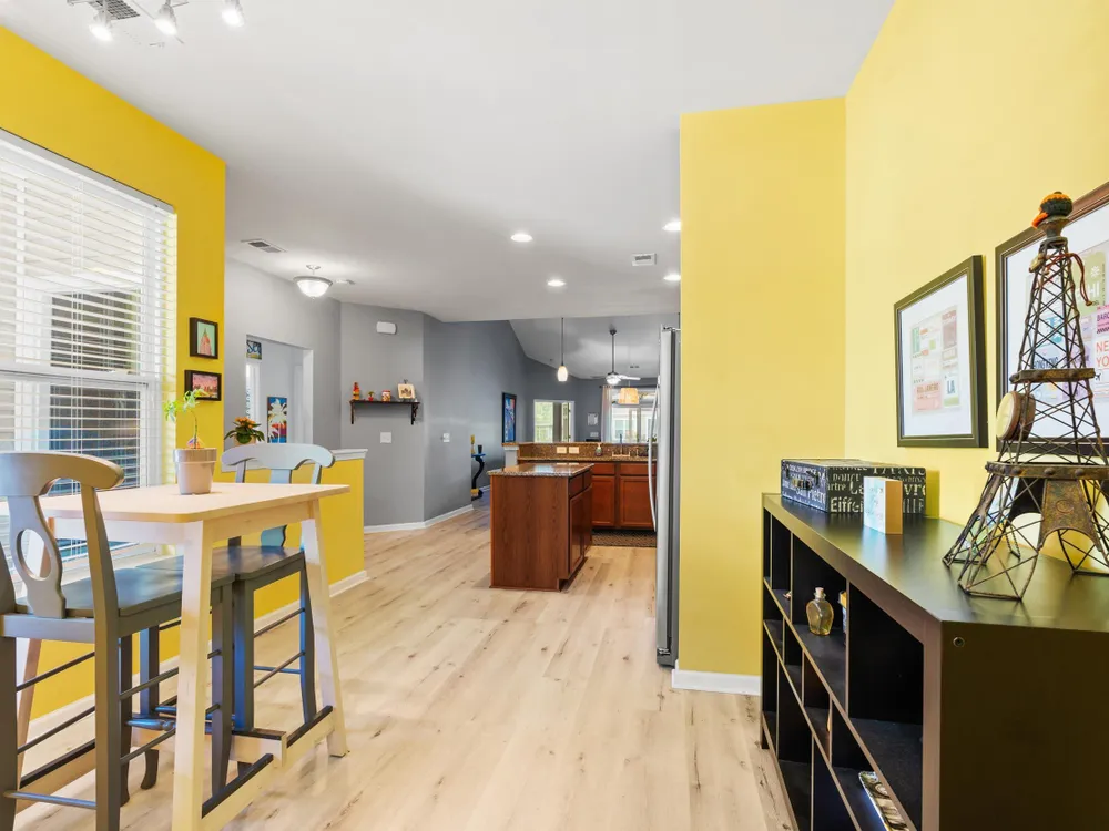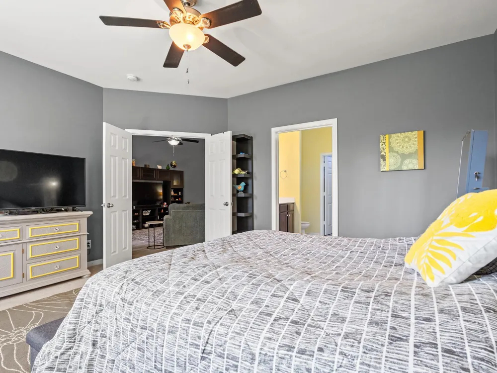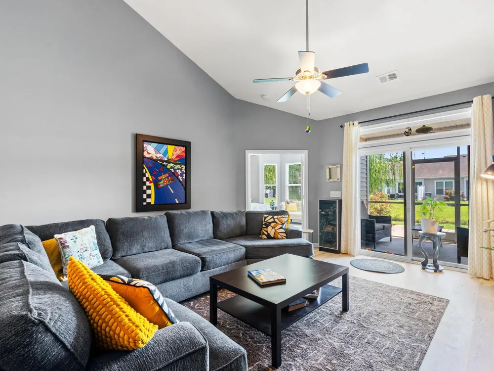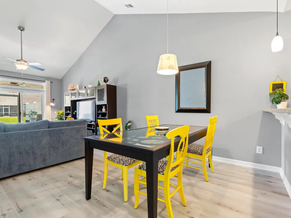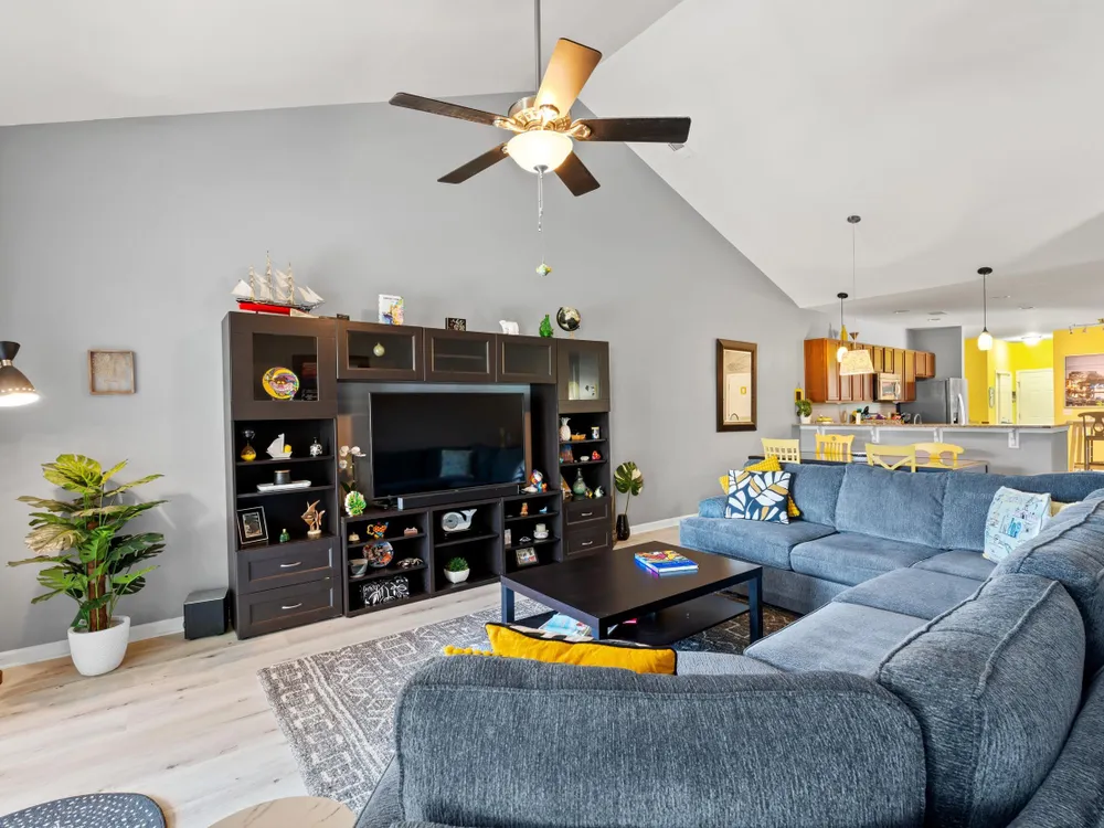 Welcome to this lovely 3-bedroom, 2-bathroom home! This home offers a split-bedroom layout, open-concept floor plan, vaulted ceilings, an attached two-car garage and let the HOA takes care of the essentials, including cable, internet, insurance, lawn maintenance, and more, you just get to enjoy it all! Once inside you can’t miss the spacious kitchen, complete with stainless steel appliances, a large center island, and a cozy breakfast nook. As you move past the kitchen, the living area draws you in with vaulted ceilings and direct views through the screened-in porch to the pond. The primary bedroom features four large windows overlooking the water, a spacious walk-in closet, and a private bathroom with a walk-in shower. On the opposite side of the home, two additional bedrooms provide comfort and privacy for guests or family. Step outside to the screened-in porch and fences for privacy from the neighbors. Don’t wait—schedule your showing today and make this beautiful home yours!