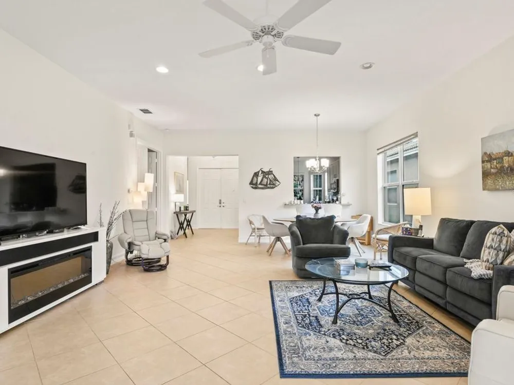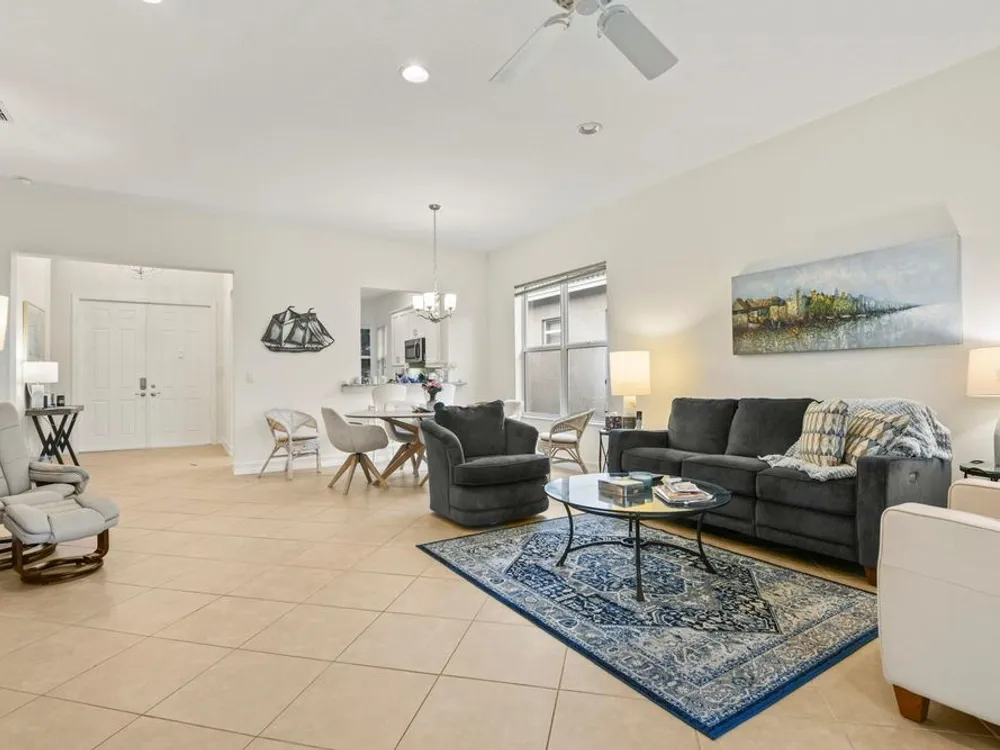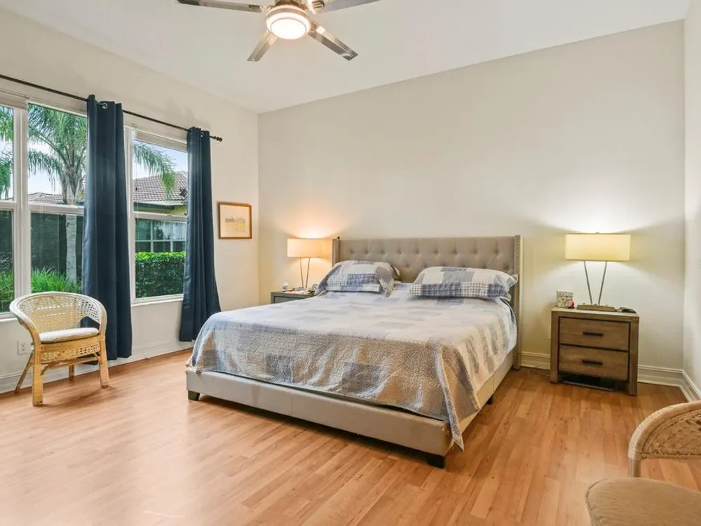 Located in the premier 55+ community of Valencia Lakes, this meticulously maintained 2013 CAPRI model offers a luxurious open floor plan with a split layout designed for modern living and privacy. The home features a massive screened-in lanai that opens up to breathtaking views of a large pond, creating the perfect space to enjoy your mornings or entertain guests. Inside, the home showcases granite countertops and elegant cabinetry, all under a stylish tile roof. The spacious master bedroom boasts serene water views, while the master bath offers both a garden tub, a walk-in shower, and dual sinks with upgraded faucets. Valencia Lakes provides a lifestyle of luxury and convenience. HOA dues include basic cable, internet, irrigation, lawn maintenance, security system monitoring by ADT, and maintenance of all amenities and gated entrances. The community is designed for those who love to stay active and enjoy the best of Florida living. You’ll have access to a resort-style pool, lap pool, resistance pool, and whirlpool. There are numerous clubs to join and activities to enjoy, making it easy to get involved and meet your neighbors. The beautifully renovated clubhouse includes a state-of-the-art exercise facility, a social hall for events, game rooms, an art room, billiards, and more. For sports enthusiasts, there are tennis courts, pickleball, softball leagues with a stunning stadium , and bocce. The community even offers a dog park, a community garden, and a 2-mile exercise path for your daily walks or jogs. Golf carts are welcome, allowing for easy travel throughout this vibrant, friendly neighborhood. Don’t miss out on this incredible opportunity to live in one of Florida’s most sought-after 55+ communities! This home is move-in ready and waiting for you to enjoy the ultimate Florida lifestyle.