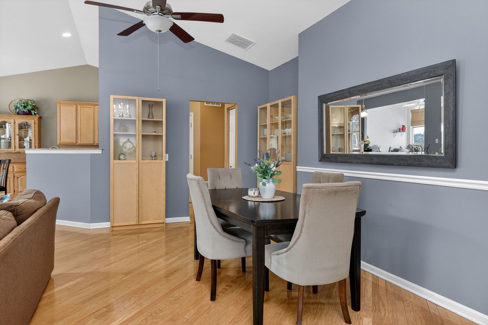 - Vaulted Ceiling(s), Bedroom on Main Level, Walk-In Closet(s), High Ceilings, Open Floorplan, Granite Counters, Pantry, Den, Dining Area, Dual Sinks, Living/Dining Room