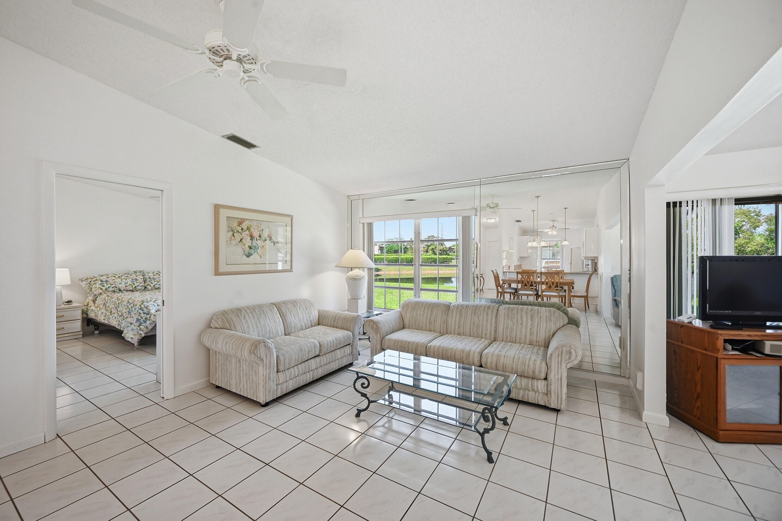 Gorgeous lake views from every back room in this light n bright 2 bedroom villa in Laurel Oak section of Las Verdes. You will love the tranquil lake views from your primary bedroom, living room & family rooms. The family room features sliders out an open patio that's perfect for BBQ. The kitchen has been opened up to the living area and both baths have also been redone. Brand new roof & gutters in Oct '25, brand new Water Heater '26, AC System 2024, freshly painted inside, new light fixtures and more. One of the quietest n peaceful sections of the community but still walking distance to satellite Pool II n Bacci Courts. Enjoy an active clubhouse, 3 pools, Tennis, Pickleball, new Gym n more....See Supplement for more info on Las Verdes. LAS VERDES IS A BEAUTIFULLY MAINTAINED GATED COMMUNITY IN THE HEART OF DELRAY BEACH. THERE ARE 3 POOLS, TENNIS, BOCCE & PICKLEBALL COURTS, JACUZZIS, SHUFFLEBOARD, BASKETBALL HOOP AND WALKING/JOG AREAS. TAKE A LEISURELY STROLL AROUND THE PEACEFUL, SERENE COMMUNITY LAKE. NEW EXERCISE ROOM IN 2021 IS 4 TIMES BIGGER WITH ALL NEW EQUIPMENT. ITS ACTIVE CLUBHOUSE HOSTS A VARIETY OF ACTIVITIES INCLUDING EXERCISE CLASSES, DINNERS, DANCES, PRIVATE CLUB ACTIVITIES AND NAMED ENTERTAINMENT. TONS OF IMPROVEMENTS THE LAST 7 YEARS, NOT JUST THE EXERCISE ROOM, NEW ROOF AND FLOOR IN CLUBHOUSE, ALL POOL BATHROOMS UPDATED AND NOW ADA COMPLIANT, SEWER DRAINAGE PIPES RE-SLEEVED, NEW BORDER FENCE AROUND COMMUNITY, NEW LANDSCAPING AT BOTH ENTRANCES, NEW GUARD SHACK N MUCH MORE. LAS VERDES IS ON THE DELRAY MEDICAL CENTERS NEW UPGRADED POWER GRID AND DID NOT LOSE POWER AFTER HURRICANE IRMA IN 2017. LAS VERDES IS CLOSE TO MANY FINE RESTAURANTS, SHOPPING AREAS & MEDICAL FACILITIES. THE AZURE WATERS OF THE ATLANTIC ARE APRX. 6 MILES CLOSE. A WONDERFUL PLACE TO CALL HOME WHETHER YOU PLAN ON BEING A FULL TIME RESIDENT OR THE SEASONAL "SNOWBIRD". LAS VERDES IS NOT PART OF KINGS POINT; COMPLETELY SEPARATE COMMUNITY. . . . . . . . . . . . . . . . . .ALL SQARE FOOTAGE IS APPROXIMATE. ALL INFORMATION DEEMED RELIABLE BUT NOT GUARANTEED.