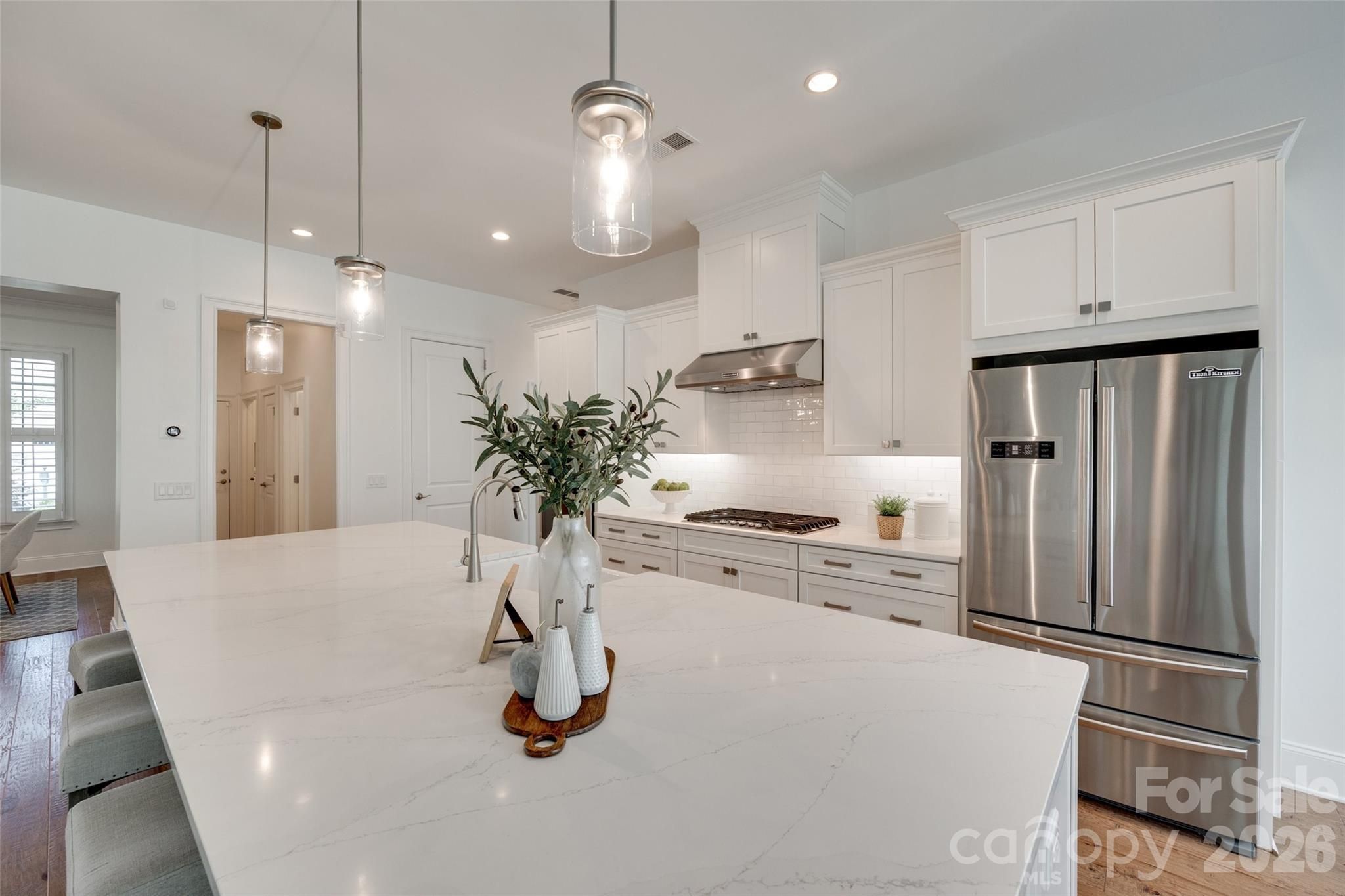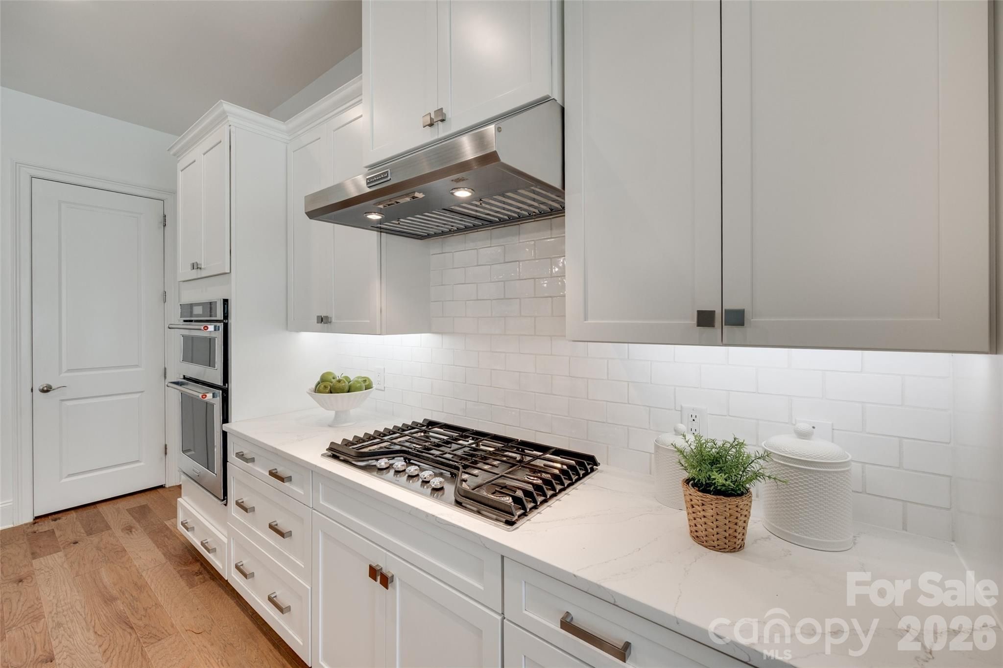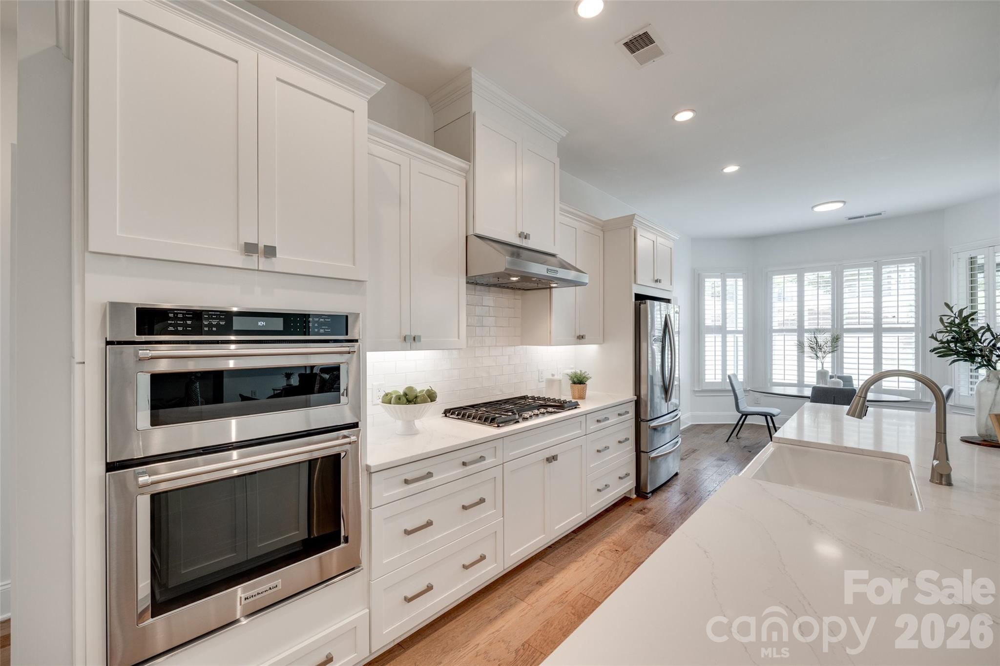 - Dishwasher, Disposal, Double Oven, Exhaust Hood, Gas Cooktop, Microwave, Refrigerator