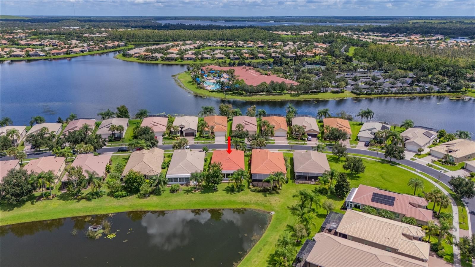 This spectacular Florence model is move-in ready and situated in Valencia Lakes, the greater Tampa Bay area’s premier 55+ resort-style community. Offering 3 bedrooms, 2 bathrooms, and a 2-car garage, this elegant home features a stunning panoramic water view, best enjoyed from the 270-square-foot enclosed Florida room, fully air-conditioned for year-round comfort—an ideal space to relax or entertain. A new roof was installed in 2023, ensuring peace of mind for years to come. From the moment you arrive, the home's curb appeal stands out with its bay window, barrel tile roof, and brick paver driveway and walkway. Step through the grand 8-foot glass entry door into a foyer with soaring 13-foot ceilings and elegant crown molding, setting the tone for the sophisticated interior that follows. The open-concept great room flows seamlessly into the kitchen and informal dining area, offering a spacious and airy layout framed by serene pond views. The gourmet kitchen is a chef’s dream with a large quartz island, custom shiplap detailing, 42-inch maple cabinets, stainless steel undermount sink, tumble stone marble backsplash, cabinet pantry, under and over cabinet lighting, menu desk, roll-out shelving, pull-out trash, and top-tier stainless steel appliances including a Bosch dishwasher and slide-in range. A generous bay window breakfast nook provides the perfect spot for casual dining with a view. The primary suite is a true retreat featuring a coffered ceiling, luxury vinyl plank flooring, and triple sliders leading directly to the Florida room. Two large custom walk-in closets offer ample storage, and the spa-like bathroom includes dual vanities with quartz countertops, a Roman tub, large walk-in shower with tile surround and built-in seat, upgraded plumbing fixtures, and maple cabinetry—all complemented by custom faux-painted walls. The second bedroom also features LVP flooring, a large window, and is spacious enough for king-size furnishings. The third bedroom or den includes double six-panel doors, a closet and diagonally laid tile flooring, offering flexibility for use as a guest room, office, or hobby space. The second bathroom is thoughtfully appointed with a tub/shower combo, tile surround, quartz countertop with banjo top, and maple cabinets. A separate laundry room includes a washer and dryer, utility sink, and built-in cabinetry for added storage. The home is completely carpet-free, emphasizing its low-maintenance appeal, and boasts numerous upgrades including designer lighting and fans, custom window treatments, plantation shutters, water softener system, screened front entry, extended brick paver patio, sunroom shades, and recent exterior paint. Additional mechanical updates include a newer HVAC system installed in 2018 and a water heater replaced in 2019. Every detail has been considered, making this home truly move-in ready. Valencia Lakes offers a 40,000-square-foot clubhouse, fitness center, resort-style pools, tennis courts, pickleball, walking paths, live entertainment, arts and crafts, and a full calendar of social activities. Don’t miss your opportunity to live in one of the most desirable active adult communities in Florida. Schedule your private showing today and start living the lifestyle you deserve.