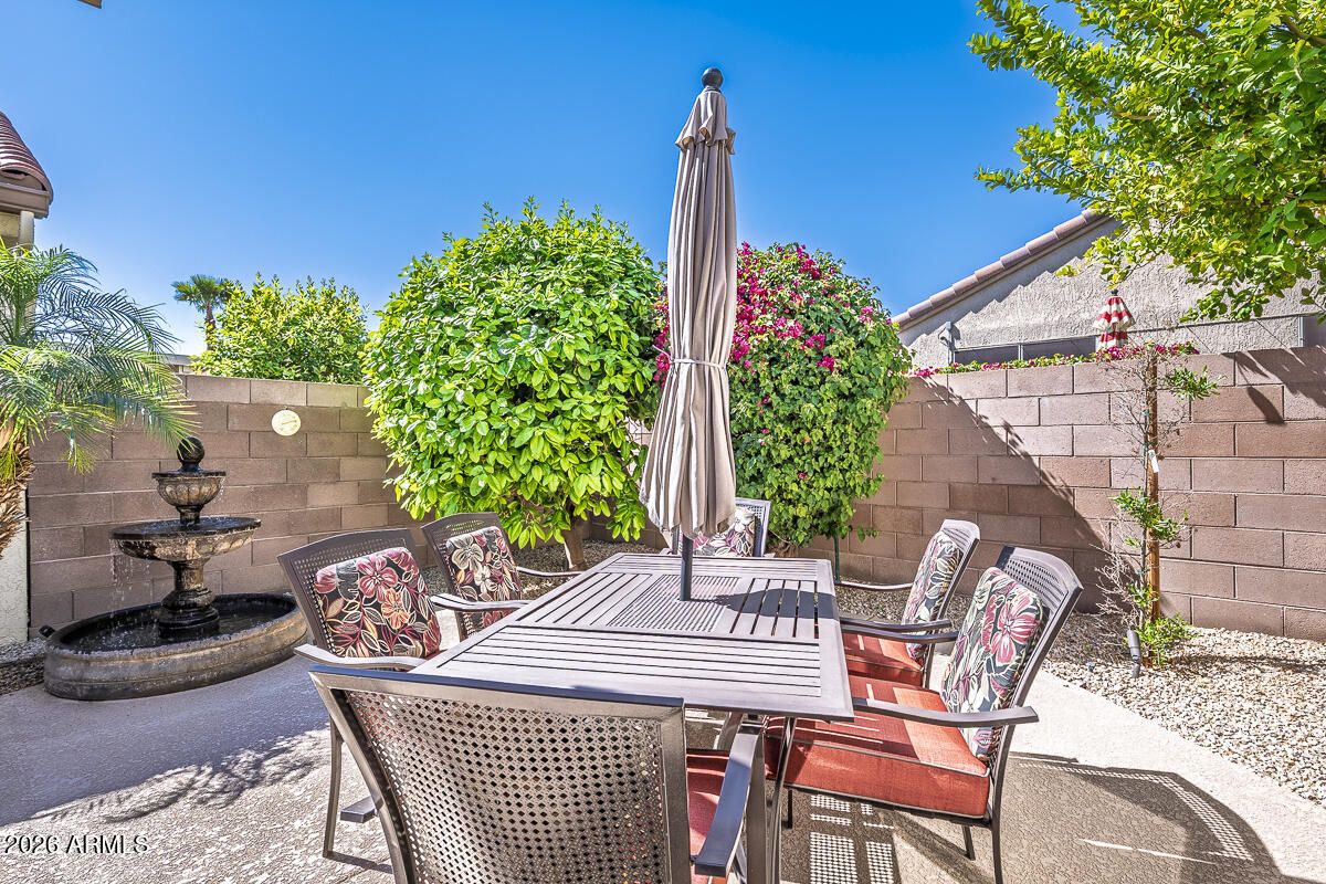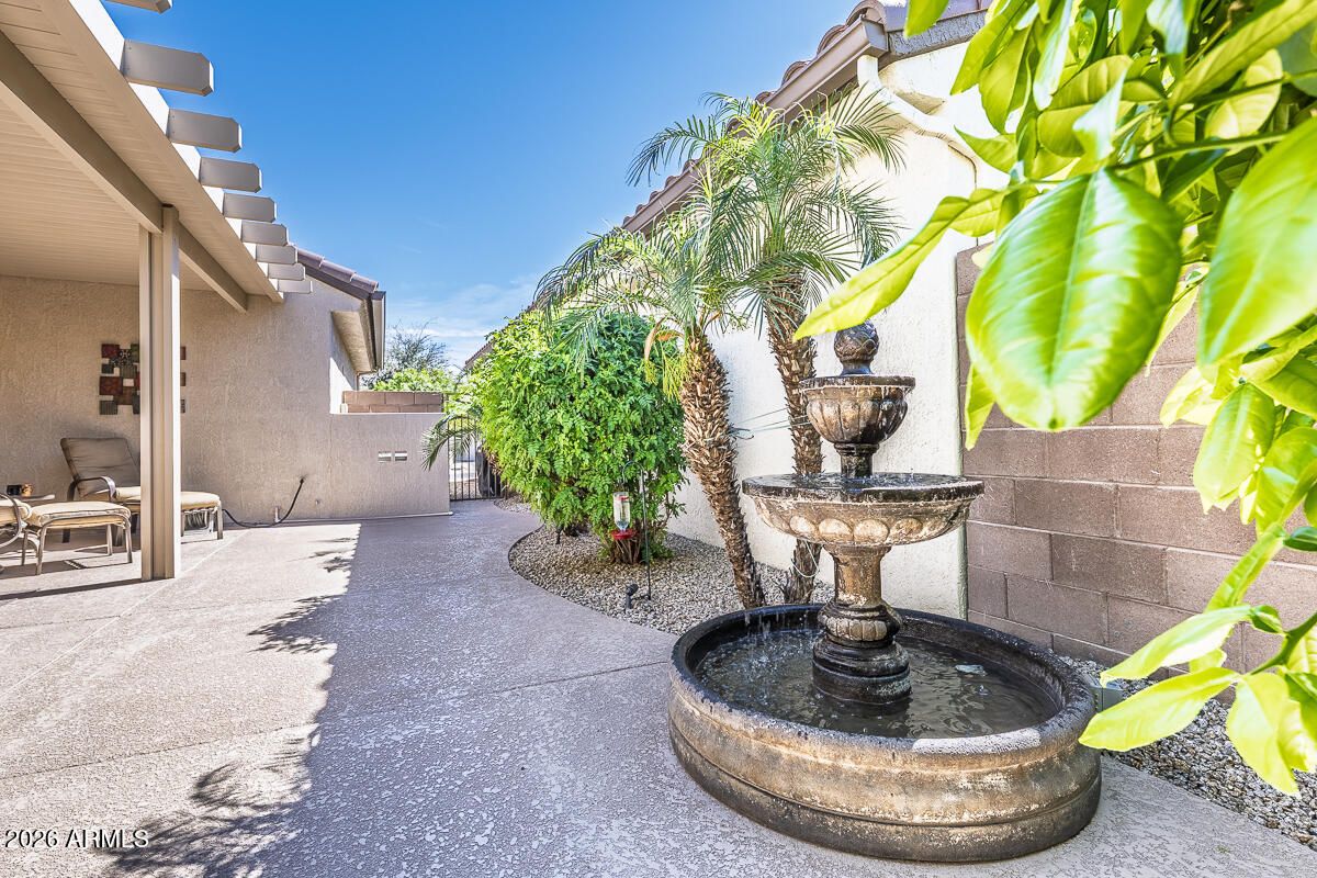 Fantastic TURN KEY furnished split floor plan is ideal for winter visitors or permanent residents. Short walk to all the activities and fun at the Adobe Center! Main bedroom has two closets, one large enough to be an office/den. Private backyard has an extended patio with a tranquil fountain, perfect for morning coffee or relaxed evenings. Meticulously maintained with new interior paint, epoxy garage floor, and patio cool decking. HOA maintains the front landscaping. The Grand Amenities include four golf courses, tennis and pickleball, softball, hiking trails, workout facilities, restaurants, classes, and so much more. This is Arizona living at its finest!