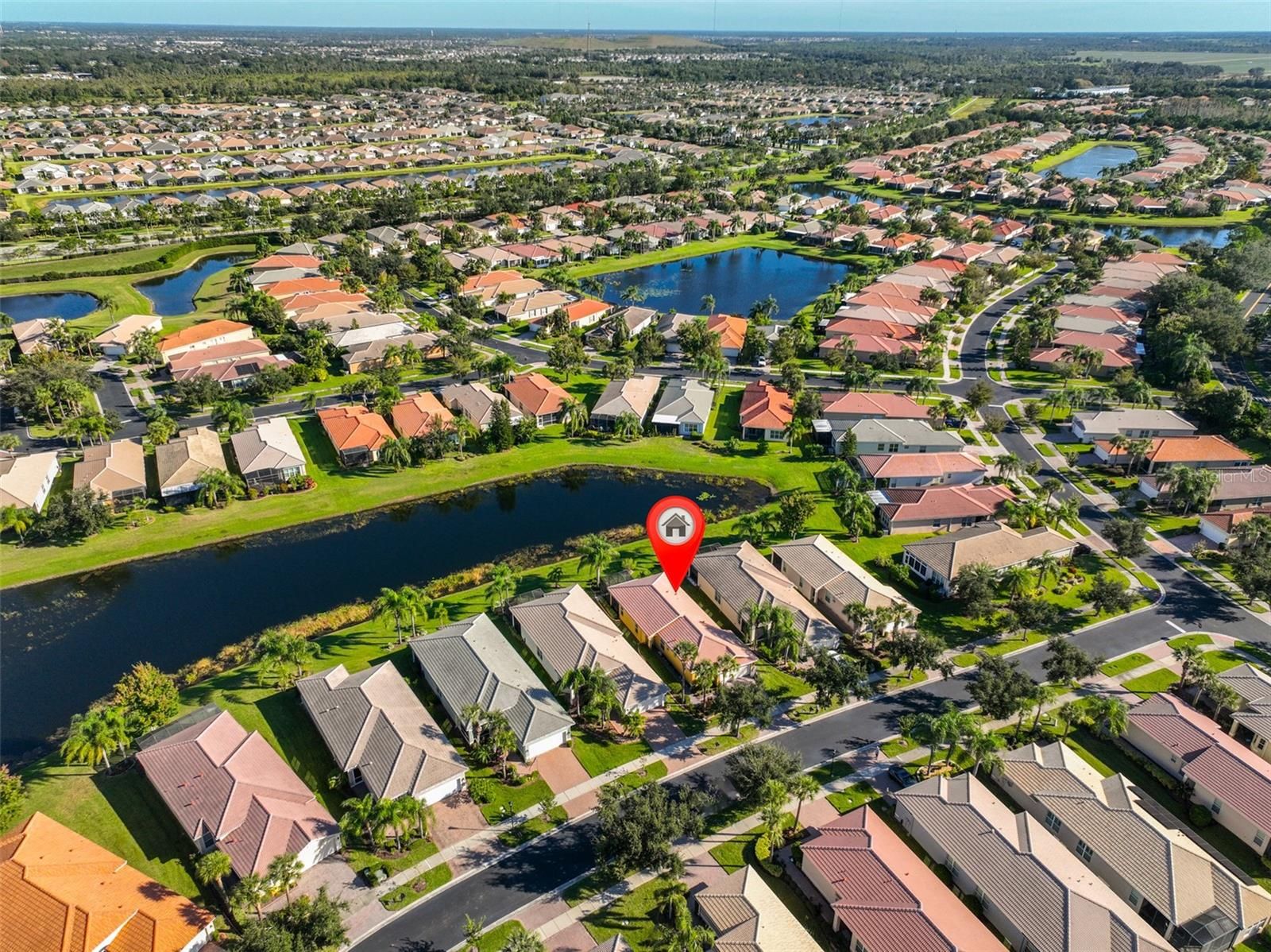 Experience Refined Living in Valencia Lakes The Beautiful Amalfi Model 1,597 Sq. Ft. of Elegance and Comfort in a gated community Welcome home to this beautifully appointed Amalfi model, perfectly nestled on a lushly landscaped lot in the highly sought-after Valencia Lakes 55+ community. From the moment you approach the inviting front entry, the beauty of the surroundings sets the tone for the warm, sophisticated interior that awaits within. Step through the glass entry door into an open and airy floor plan bathed in natural light. Elegant diagonal tile flooring flows throughout the main living areas, leading your eye toward the expansive sliding glass doors that open to a screened extended lanai with tranquil water views, the perfect setting for morning coffee or evening relaxation. The gourmet kitchen is both stylish and functional, featuring rich wood cabinetry, granite countertops, and a travertine backsplash. An extended breakfast bar and cozy eat-in nook provide space for casual dining, while the formal dining area offers a gracious setting for entertaining family and friends. The primary suite is a serene retreat, highlighted by a tray ceiling and a spacious walk-in closet. The spa-inspired primary bath features dual vanities, a luxurious garden tub, and a separate walk-in shower, creating a true sanctuary for relaxation. The split floor plan ensures comfort and privacy for guests, with a second bedroom and full bath. A versatile third bedroom or den, complete with its own walk-in closet, adds flexibility for a home office, library, or creative space. Throughout the home, neutral tones, tasteful finishes, and designer light fixtures and ceiling fans enhance its timeless appeal. Step outside to the screened lanai, where lush tropical landscaping and peaceful water views create your own private oasis. Move right in and start enjoying the Valencia Lakes lifestyle, a vibrant 55+ community offering resort-style amenities, scenic walking paths, and a true sense of connection and relaxation.