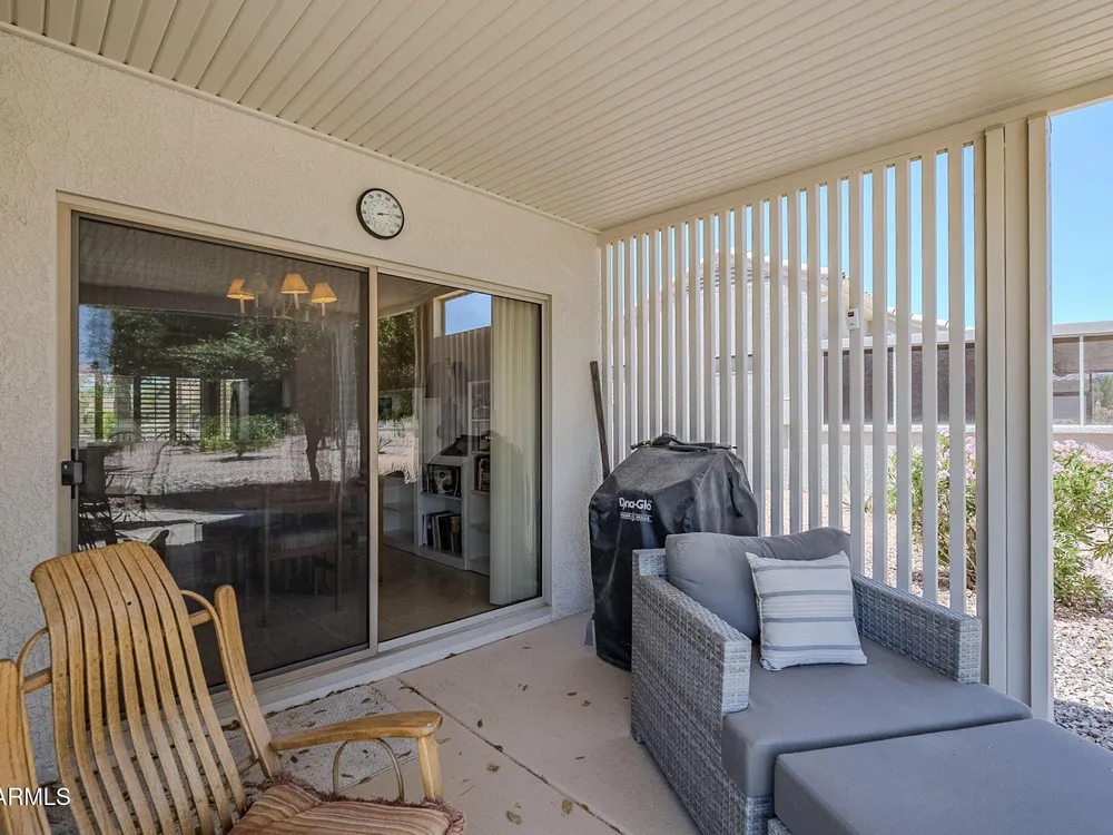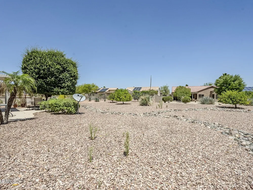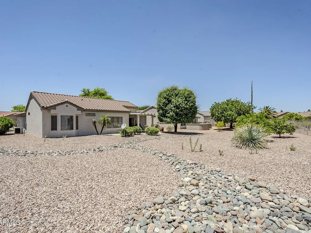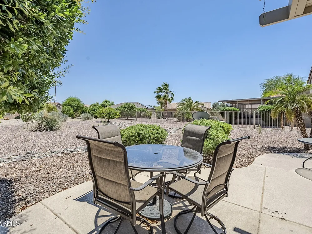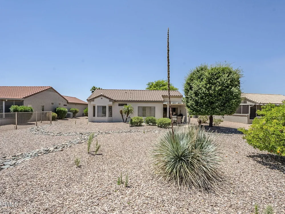 Discover effortless living in this charming Willow Model nestled in the highly sought-after Sun City Grand, also known as The Grand! Set on a spacious, low-maintenance lot with mature fruit trees and a water-efficient PVC irrigation system, this home offers both beauty and convenience. Step inside to find bright bay windows in the kitchen and primary suite, elegant plantation shutters throughout, and a thoughtful layout designed for comfort. Recent exterior paint gives the home fresh curb appeal, while the hot water circulator ensures instant hot water whenever you need it. The extended-length garage provides ample space for storage and includes built-in cabinets plus an electric vehicle charging station—a perfect blend of modern living and practicality.