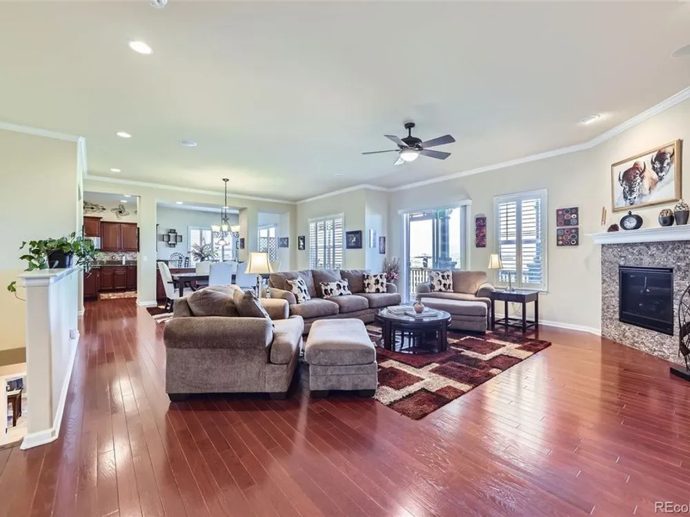 IMMACULATE ANTHEM RANCH WITH MILLION $$ VIEWS!!!! In this 55+ community, comfort meets breathtaking natural beauty. Bordering Open space, this home offers spectacular Mountain views as soon as you enter the front door. Unobstructed views from the back deck set this home apart from the other lots in Anthem. The open floorplan includes a cozy Living room and dining area leading to a spacious and immaculate kitchen. The main floor is also accessed from the 3 Car garage, through the main floor laundry. Just off the main entry is a large office. The master suite is spacious and features a 5 piece bath and large walk in closet. The guest suite is another large bedroom and full bath. Partial finish in the basement is ideal for a second office and/or a TV and Game room, and the unfinished portion is your blank canvas for more finished space. Miles of trails are literally out the back door, as well as access to the Anthem community center Aspen Lodge which includes 30,000 Square feet of indoor/outdoor Pools, fitness center and classes, hot tubs, and daily activities. Close to restaurants, DIA, shopping, Denver and Boulder, and over 48 miles of walking trails. This home and location offer a wonderful CO lifestyle!