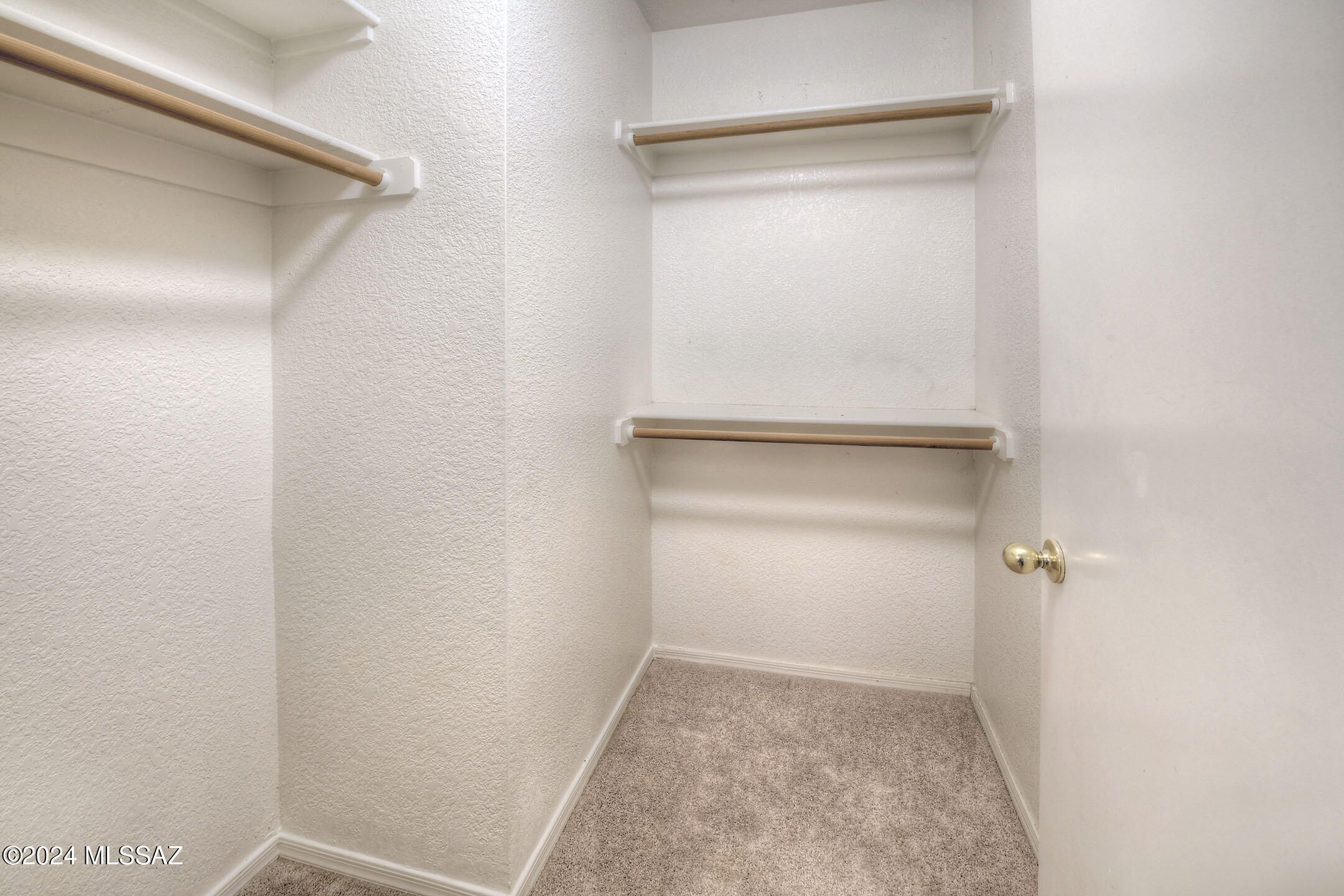 This is the perfect first time home, investment property or winter getaway! NO GVR but available! Open floor plan has 9' ceilings and oversized windows to let in loads of natural light. Kitchen has breakfast bar and separate dining area which opens up to spacious covered back patio, adding extra living space. Large master suite with walk-in closet. Guest bedroom also has a walk in closet and own bath. Laundry located in oversized 2nd bath. Community Pool with spectacular views of the Santa Rita Mountains! Centrally located easy highway access, walk to farmers market and rec centers!