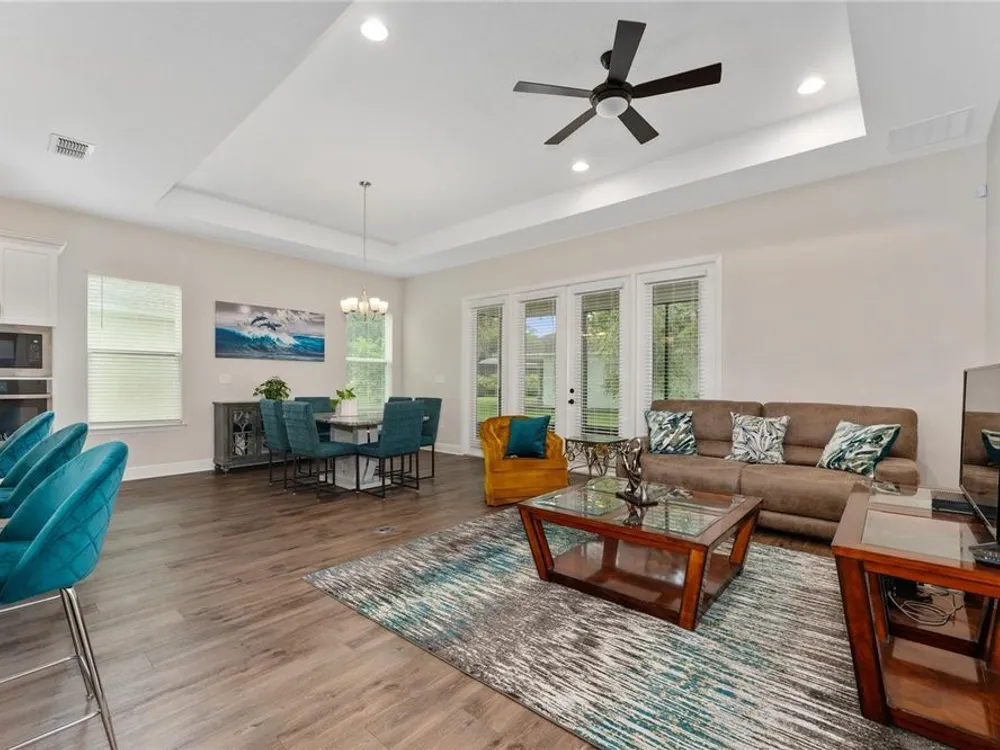 Ready for Resort Style Living in an active 55+ Golf Course Community? Look no further than the sought after community of Four Seasons at Orlando. This Beautiful St. Lucia home is located on an oversized corner lot with an extended driveway. This home features an extended Master Bedroom w/ private on suite, Jack and Jill bedrooms with shared bathroom, Flex Room, Gourmet Kitchen, Gas Range and Tankless Gas Water Heater. Additional Features include Quartz counter tops, 10' ceilings, 42' cabinets, backsplash, Luxury Vinyl flooring throughout the entire home, upgraded light fixtures, 12' French Doors, ceiling fans and window blinds. Included are stainless steel appliances, washer and dryer, wifi garage opener and blink doorbell. This Golf Course community features a clubhouse, fitness center, Pickellball/Tennis and Bocce Ball courts, billard room, ballroom, and two pools. This home is move in ready and centrally located near theme parks, shopping centers, restaurants, and more. Don't miss this opportunity and make your appointment today.