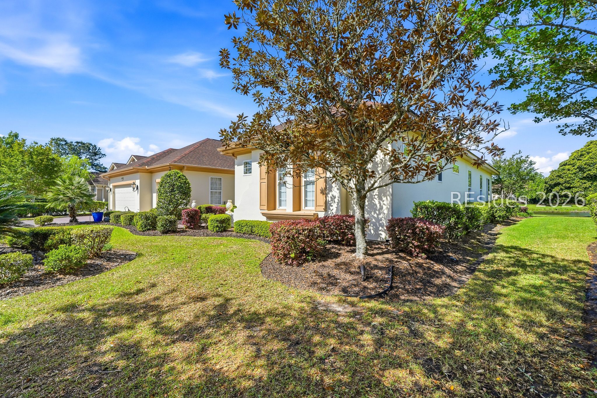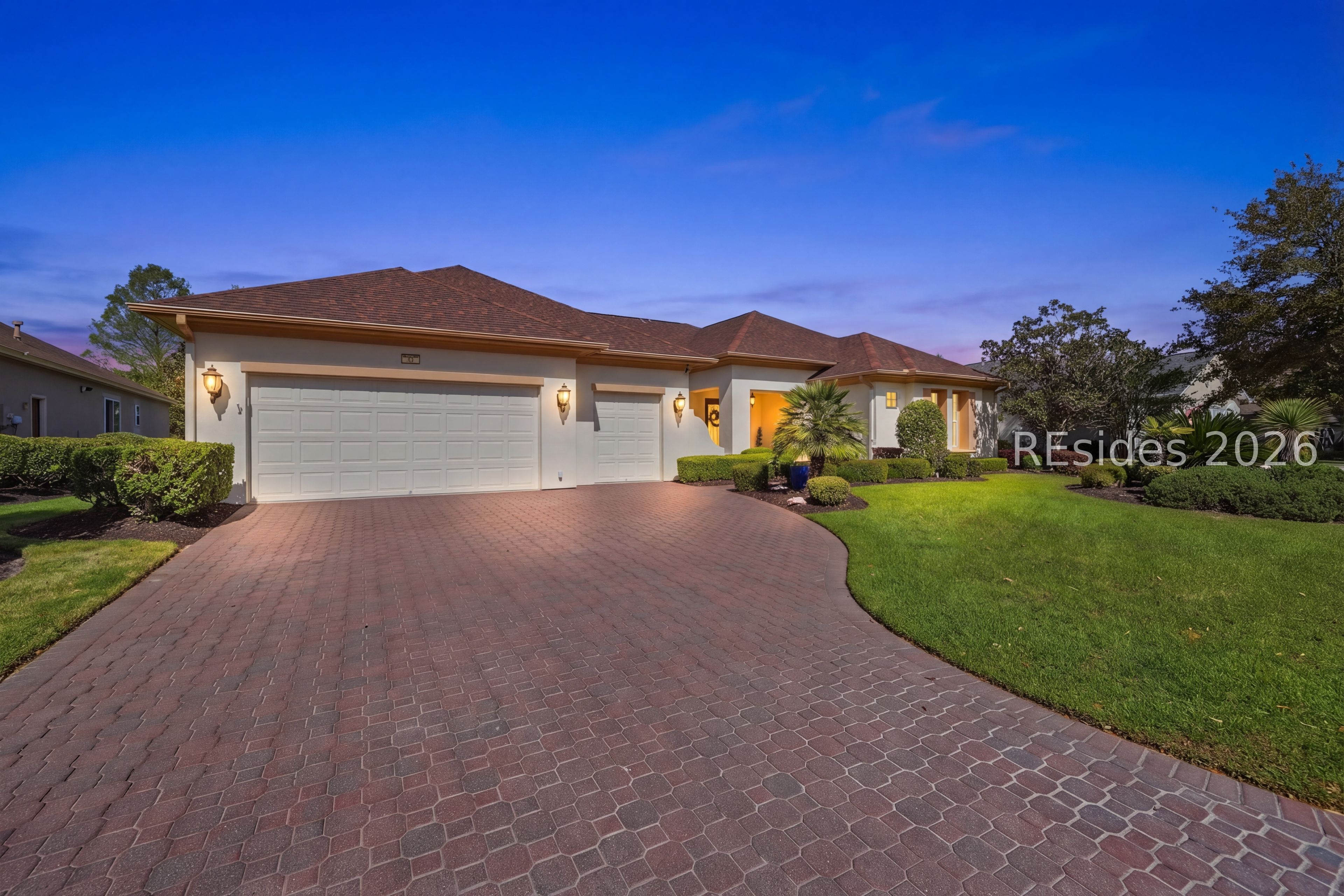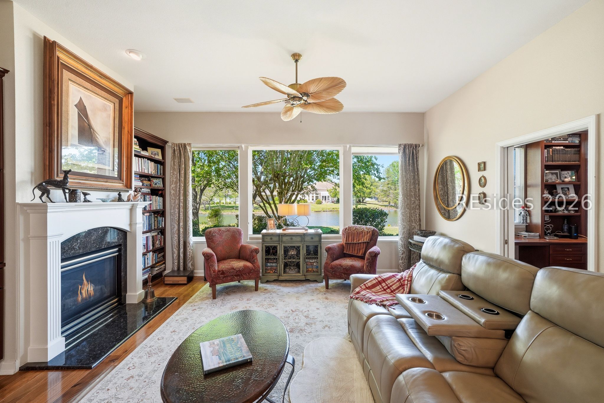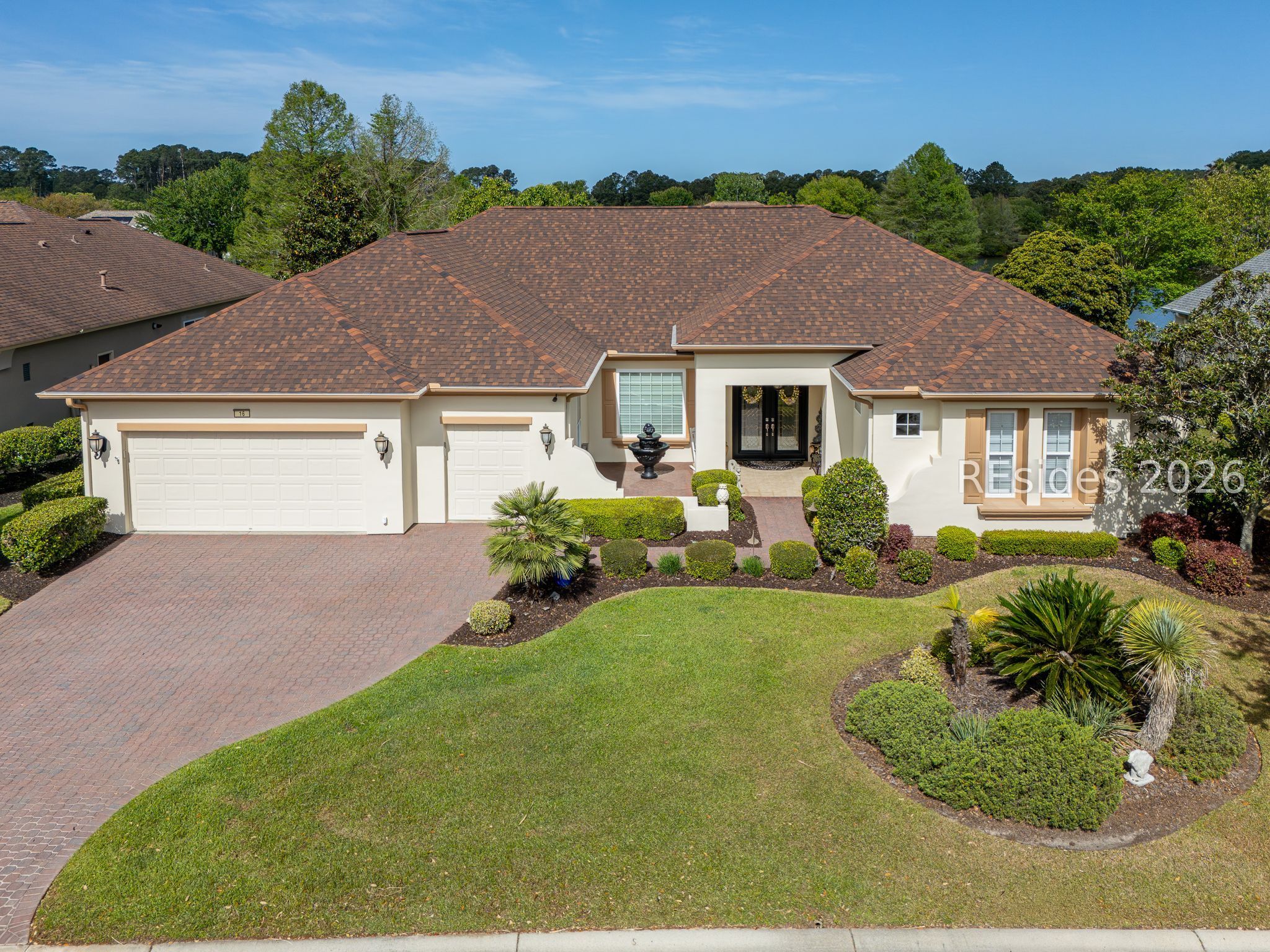 Welcome to this exceptional Rushmore model, offering 3,503 square feet of beautifully curated living space-widely regarded as one of the most sought-after floor plans in Sun City. Perfectly positioned to capture tranquil lagoon views, this residence effortlessly blends refined luxury with everyday comfort. From the moment you step inside, you're greeted by rich wood flooring that flows throughout the open-concept design, creating a warm and inviting ambiance ideal for both relaxed living and elegant entertaining. At the heart of the home, the chef's kitchen is a true showpiece, featuring gleaming quartz countertops, an expansive cooktop, double wall ovens, a spacious walk-in pantry, and a striking teardrop backsplash that adds a sophisticated designer touch. The living space extends seamlessly into the four-season Carolina room, where walls of windows invite in natural light and frame peaceful water views year-round. Just beyond, a beautifully designed paver patio surrounded by lush landscaping offers the perfect setting for outdoor gatherings or quiet evenings overlooking the lagoon. Thoughtfully designed for privacy and versatility, the home features two guest bedrooms connected by a fully remodeled shared bath, along with a dedicated office complete with custom built-in cabinetry. The expansive primary suite occupies its own private wing, providing a serene retreat with a luxurious en-suite bath, separate shower, and generous closet space. Curb appeal is equally impressive, with a welcoming front courtyard adorned with elegant pavers and a tranquil fountain-setting the tone for the home's refined character. The oversized three-car garage, complete with epoxy flooring, offers ample space for vehicles, storage, and a golf cart. Additional highlights include a tankless water heater, a newer roof (2020), and a brand-new HVAC system (2026), ensuring comfort and peace of mind for years to come. Ideally located near the Town Center and main gate, this home provides convenient golf cart access to shopping, dining, and daily essentials, with easy drives to charming downtown Bluffton, I-95, historic Savannah, and the pristine beaches of Hilton Head Island. As a resident of Sun City, you'll enjoy world-class amenities including championship golf courses, resort-style pools, state-of-the-art fitness centers, dining venues, tennis, pickleball, and an active, vibrant lifestyle. This is Lowcountry living at its finest!