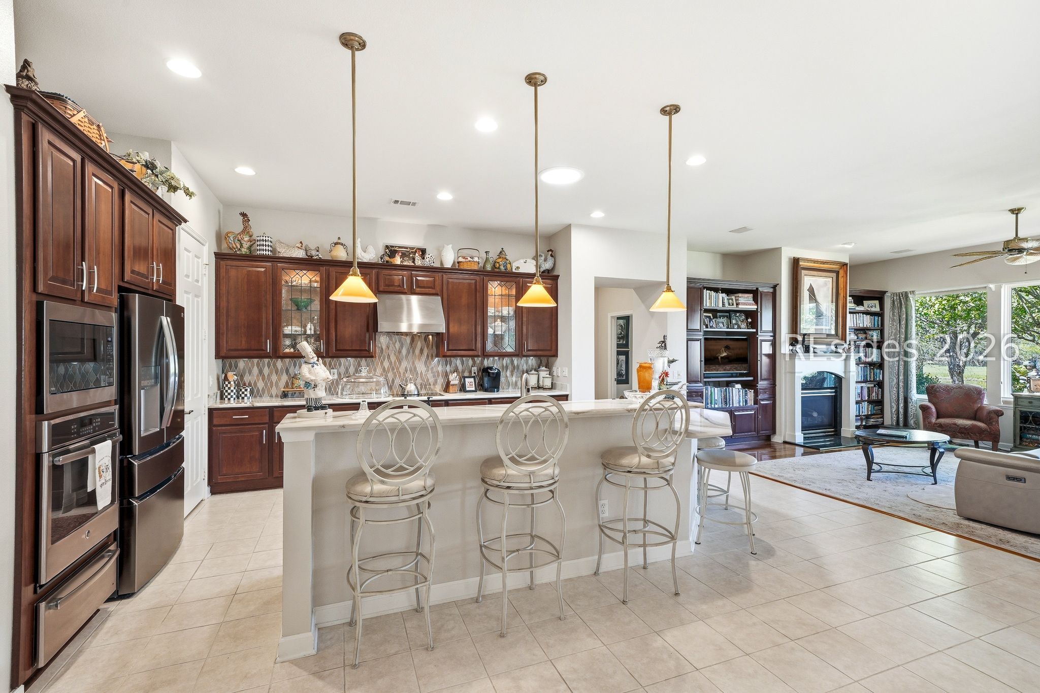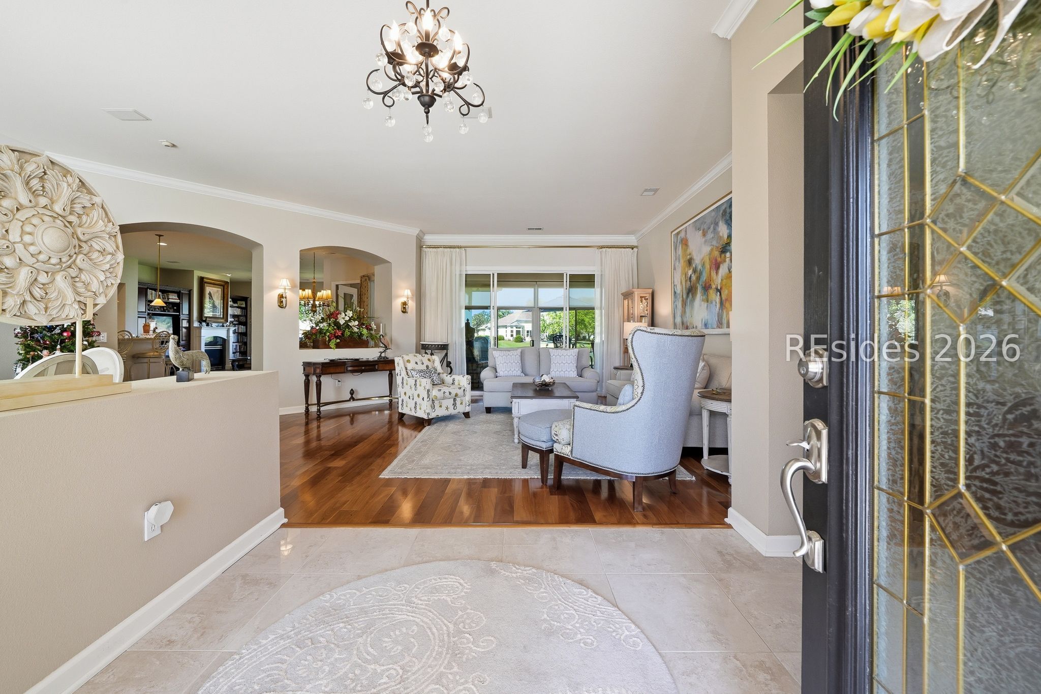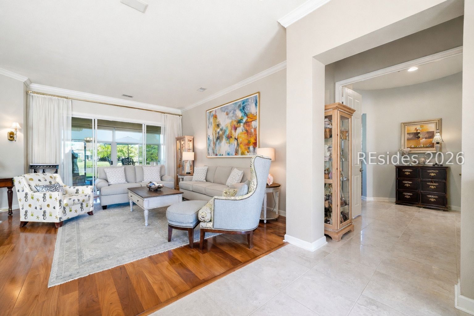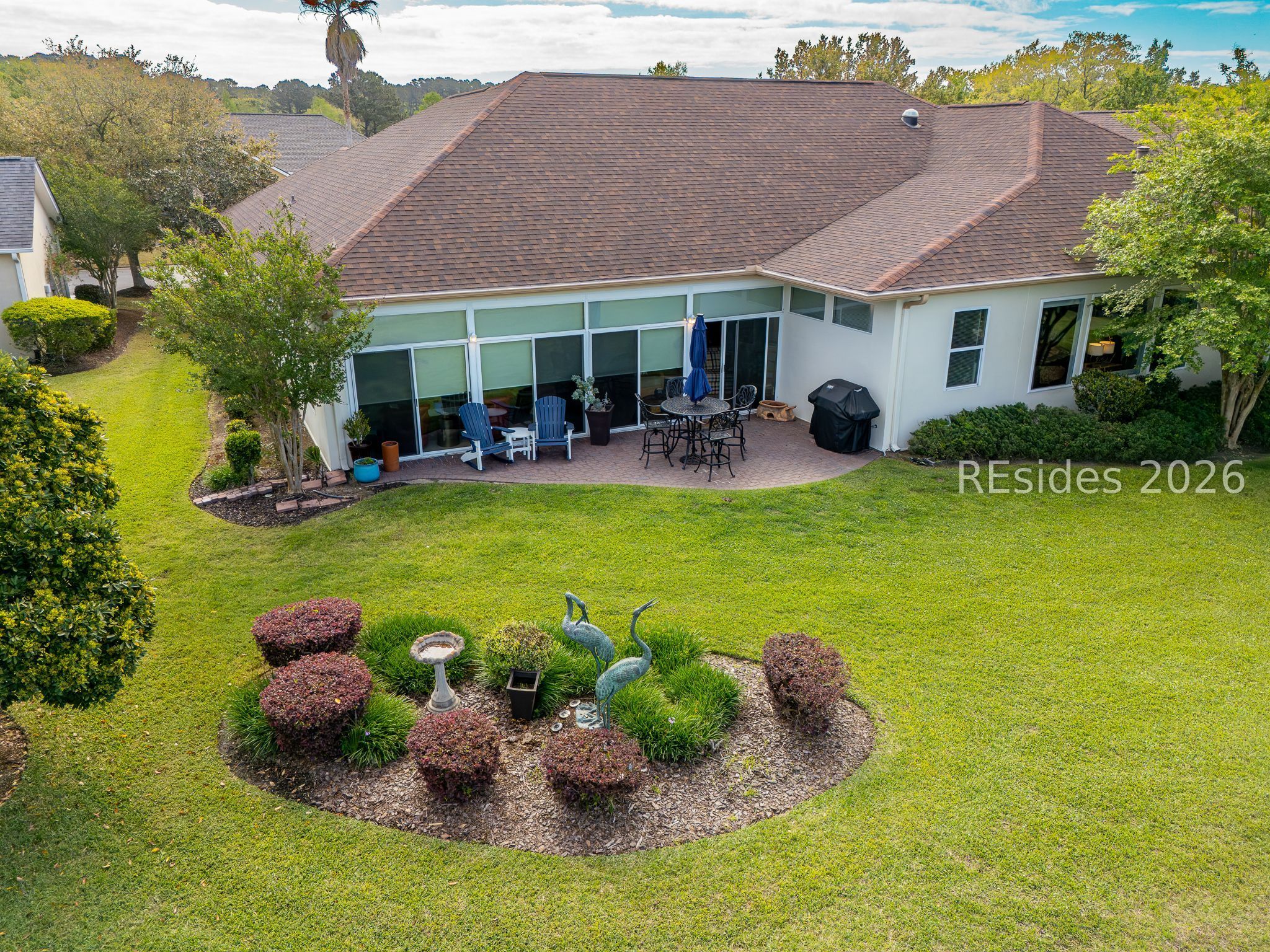 Welcome to this exceptional Rushmore model, offering 3,503 square feet of beautifully curated living space-widely regarded as one of the most sought-after floor plans in Sun City. Perfectly positioned to capture tranquil lagoon views, this residence effortlessly blends refined luxury with everyday comfort. From the moment you step inside, you're greeted by rich wood flooring that flows throughout the open-concept design, creating a warm and inviting ambiance ideal for both relaxed living and elegant entertaining. At the heart of the home, the chef's kitchen is a true showpiece, featuring gleaming quartz countertops, an expansive cooktop, double wall ovens, a spacious walk-in pantry, and a striking teardrop backsplash that adds a sophisticated designer touch. The living space extends seamlessly into the four-season Carolina room, where walls of windows invite in natural light and frame peaceful water views year-round. Just beyond, a beautifully designed paver patio surrounded by lush landscaping offers the perfect setting for outdoor gatherings or quiet evenings overlooking the lagoon. Thoughtfully designed for privacy and versatility, the home features two guest bedrooms connected by a fully remodeled shared bath, along with a dedicated office complete with custom built-in cabinetry. The expansive primary suite occupies its own private wing, providing a serene retreat with a luxurious en-suite bath, separate shower, and generous closet space. Curb appeal is equally impressive, with a welcoming front courtyard adorned with elegant pavers and a tranquil fountain-setting the tone for the home's refined character. The oversized three-car garage, complete with epoxy flooring, offers ample space for vehicles, storage, and a golf cart. Additional highlights include a tankless water heater, a newer roof (2020), and a brand-new HVAC system (2026), ensuring comfort and peace of mind for years to come. Ideally located near the Town Center and main gate, this home provides convenient golf cart access to shopping, dining, and daily essentials, with easy drives to charming downtown Bluffton, I-95, historic Savannah, and the pristine beaches of Hilton Head Island. As a resident of Sun City, you'll enjoy world-class amenities including championship golf courses, resort-style pools, state-of-the-art fitness centers, dining venues, tennis, pickleball, and an active, vibrant lifestyle. This is Lowcountry living at its finest!