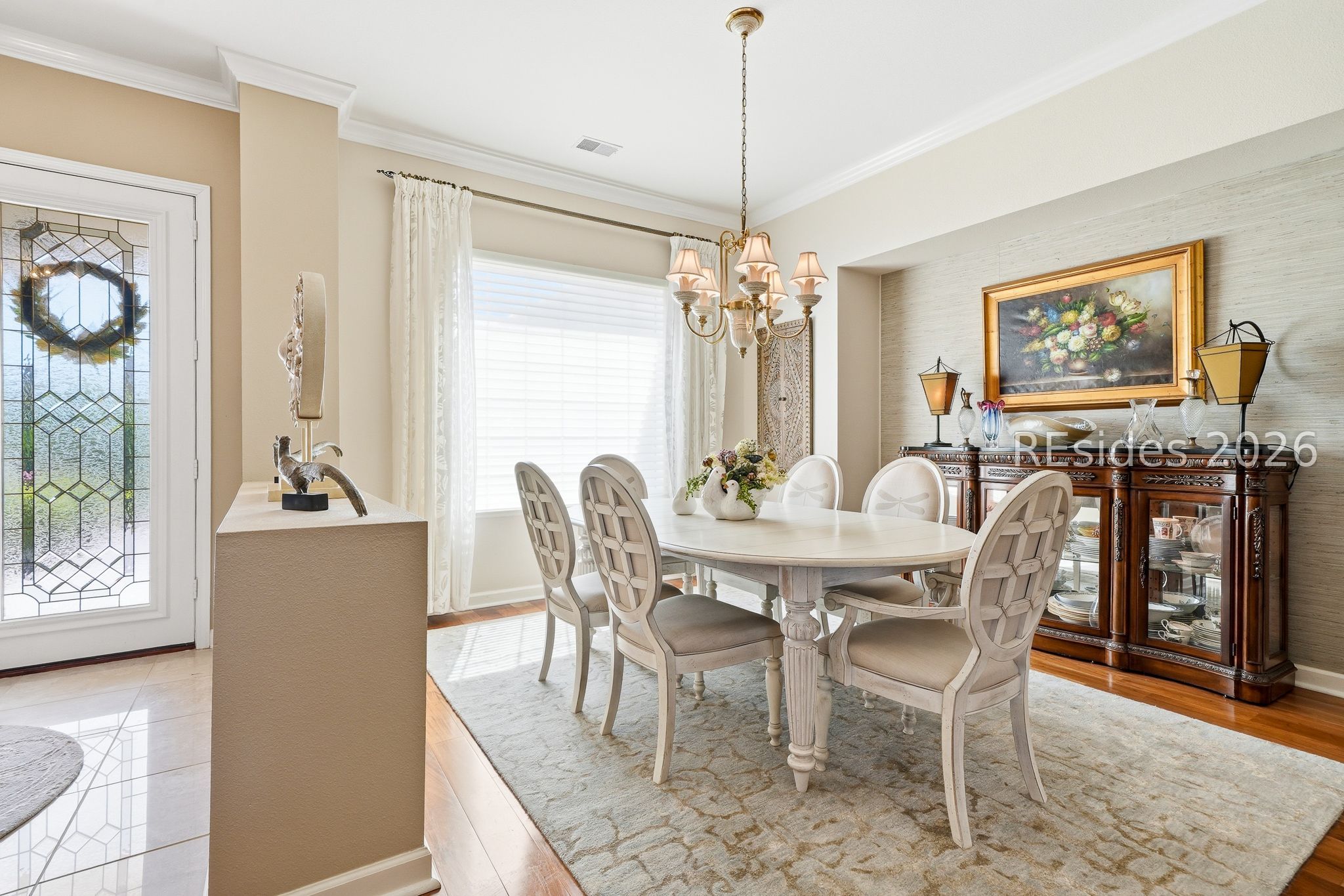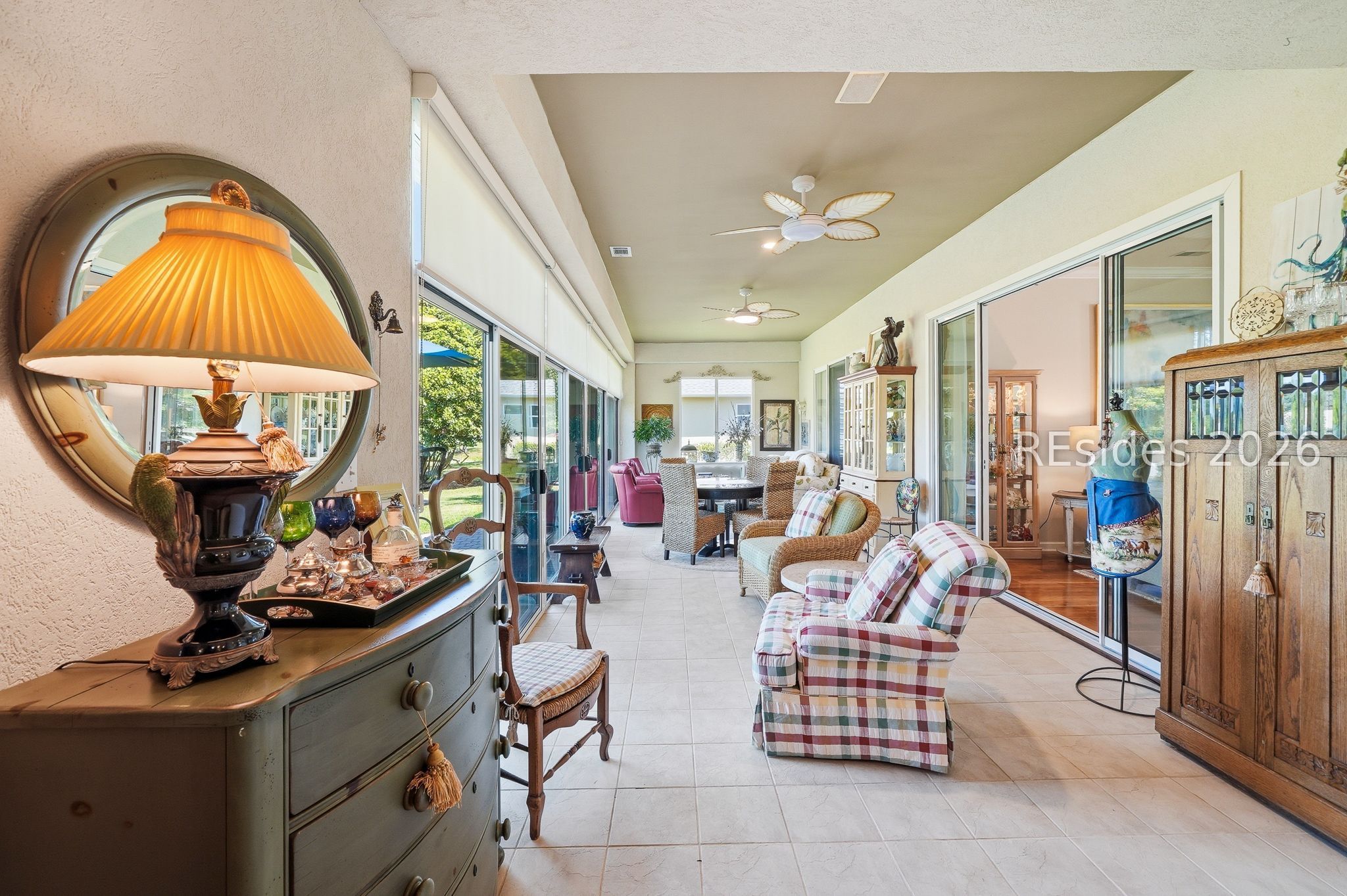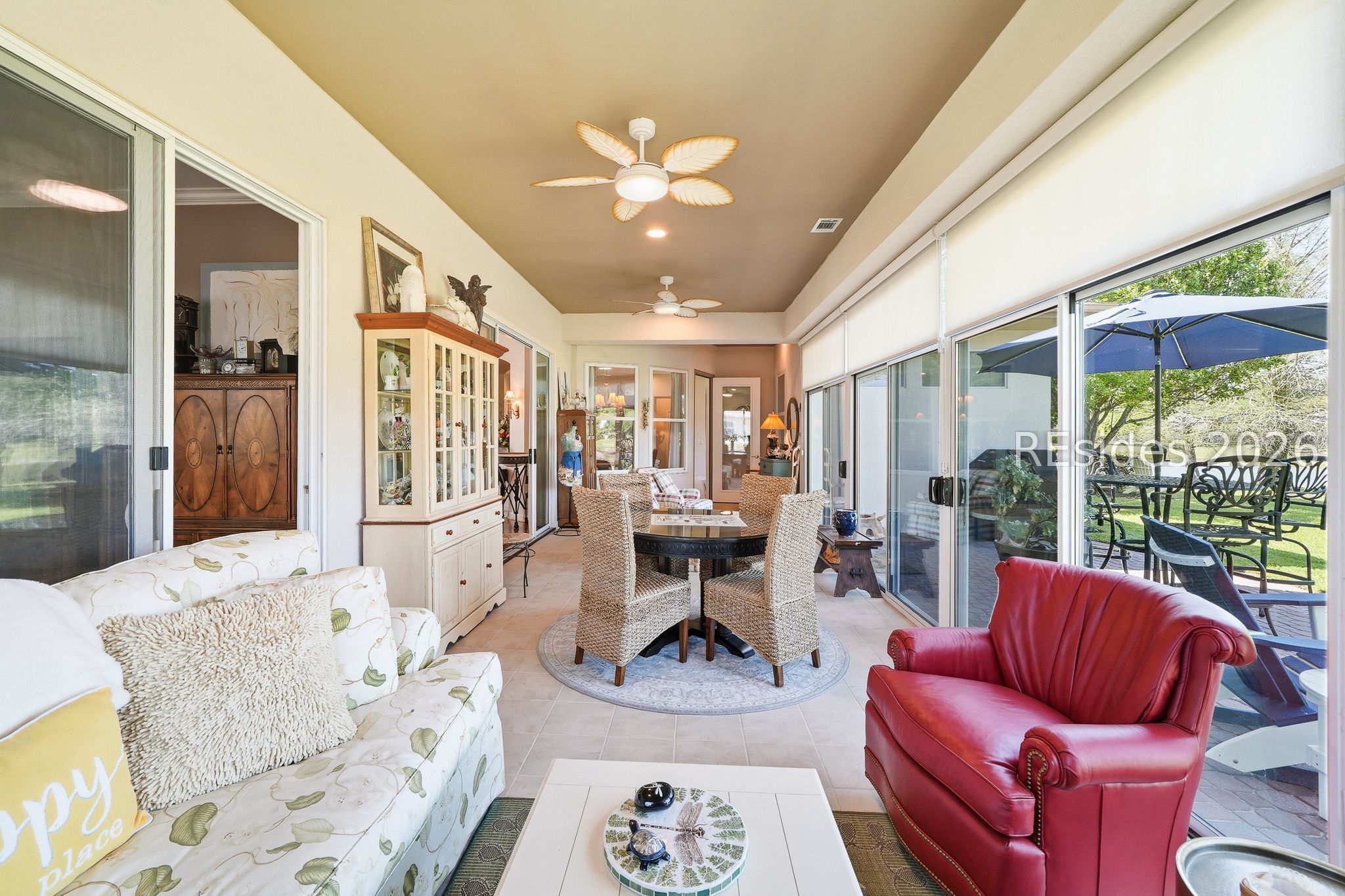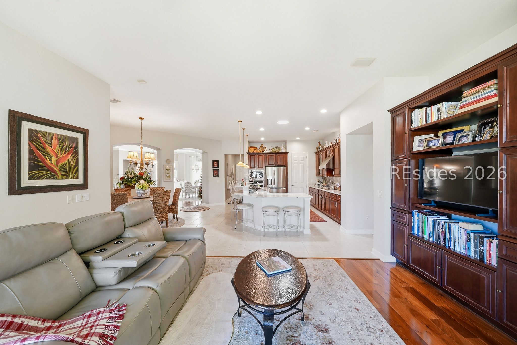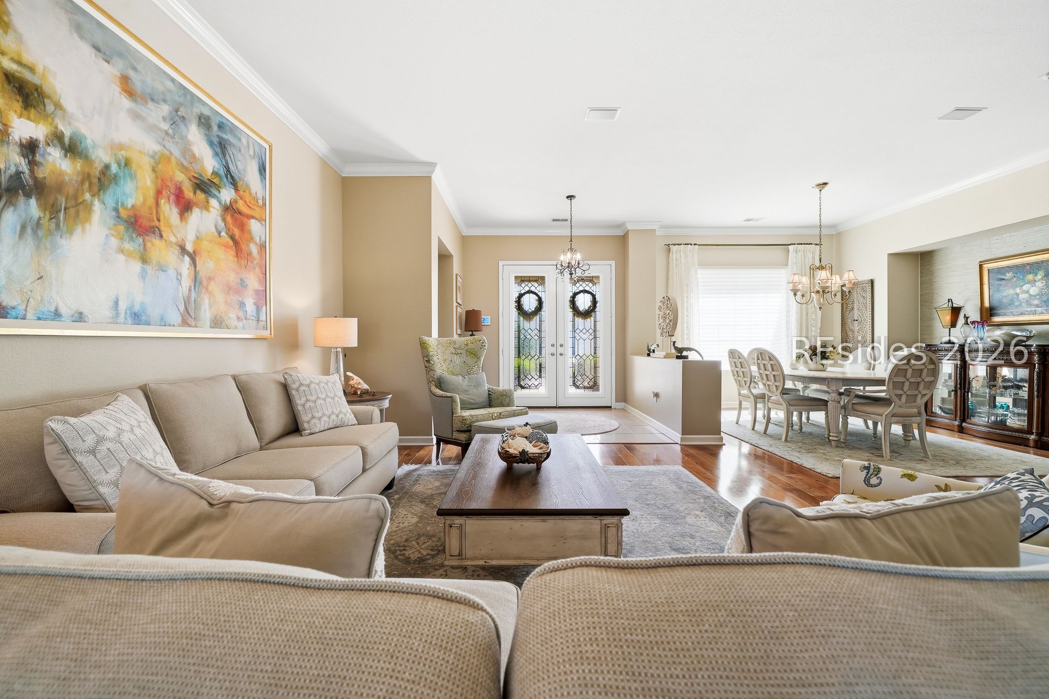 Welcome to this exceptional Rushmore model, offering 3,503 square feet of beautifully curated living space-widely regarded as one of the most sought-after floor plans in Sun City. Perfectly positioned to capture tranquil lagoon views, this residence effortlessly blends refined luxury with everyday comfort. From the moment you step inside, you're greeted by rich wood flooring that flows throughout the open-concept design, creating a warm and inviting ambiance ideal for both relaxed living and elegant entertaining. At the heart of the home, the chef's kitchen is a true showpiece, featuring gleaming quartz countertops, an expansive cooktop, double wall ovens, a spacious walk-in pantry, and a striking teardrop backsplash that adds a sophisticated designer touch. The living space extends seamlessly into the four-season Carolina room, where walls of windows invite in natural light and frame peaceful water views year-round. Just beyond, a beautifully designed paver patio surrounded by lush landscaping offers the perfect setting for outdoor gatherings or quiet evenings overlooking the lagoon. Thoughtfully designed for privacy and versatility, the home features two guest bedrooms connected by a fully remodeled shared bath, along with a dedicated office complete with custom built-in cabinetry. The expansive primary suite occupies its own private wing, providing a serene retreat with a luxurious en-suite bath, separate shower, and generous closet space. Curb appeal is equally impressive, with a welcoming front courtyard adorned with elegant pavers and a tranquil fountain-setting the tone for the home's refined character. The oversized three-car garage, complete with epoxy flooring, offers ample space for vehicles, storage, and a golf cart. Additional highlights include a tankless water heater, a newer roof (2020), and a brand-new HVAC system (2026), ensuring comfort and peace of mind for years to come. Ideally located near the Town Center and main gate, this home provides convenient golf cart access to shopping, dining, and daily essentials, with easy drives to charming downtown Bluffton, I-95, historic Savannah, and the pristine beaches of Hilton Head Island. As a resident of Sun City, you'll enjoy world-class amenities including championship golf courses, resort-style pools, state-of-the-art fitness centers, dining venues, tennis, pickleball, and an active, vibrant lifestyle. This is Lowcountry living at its finest!