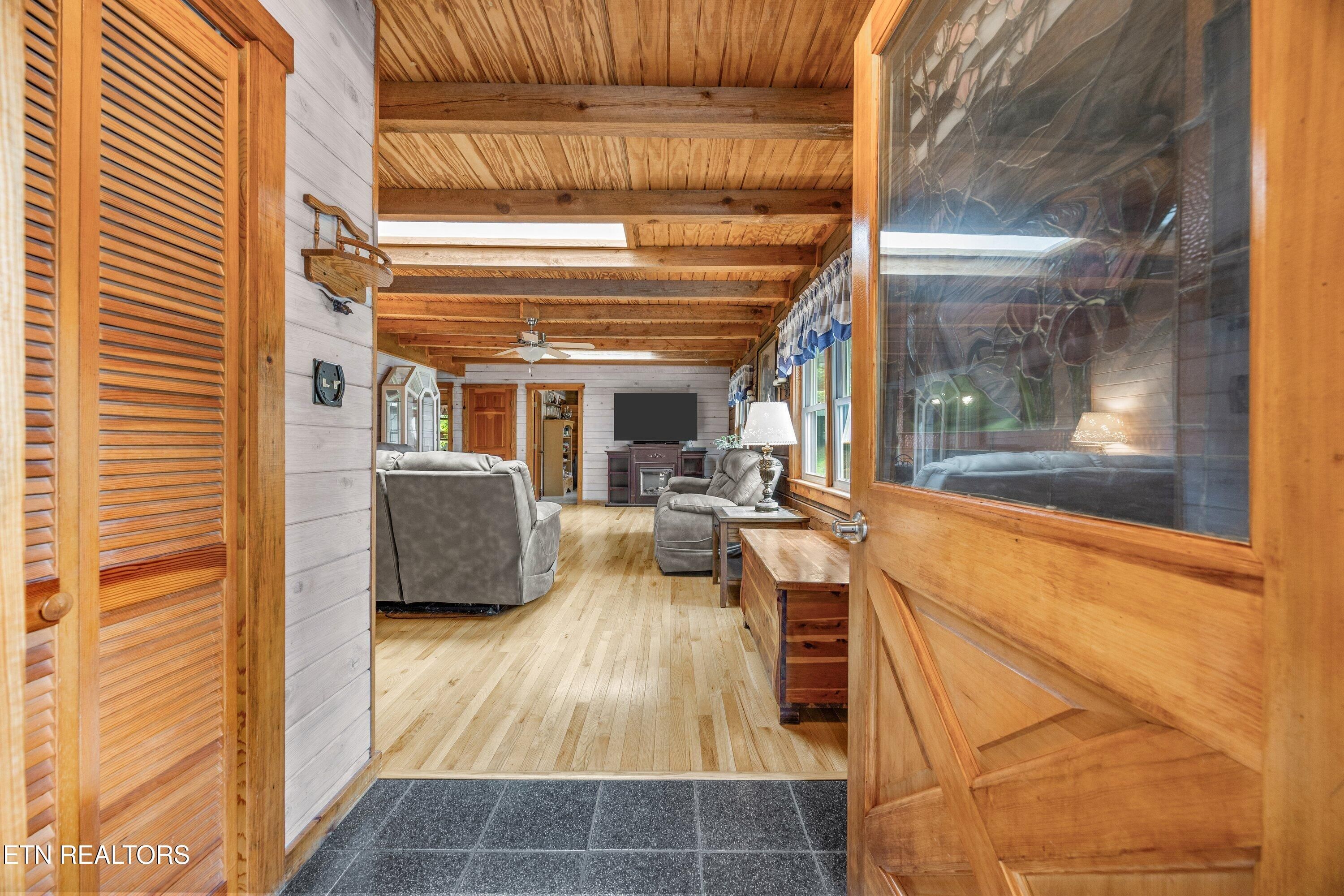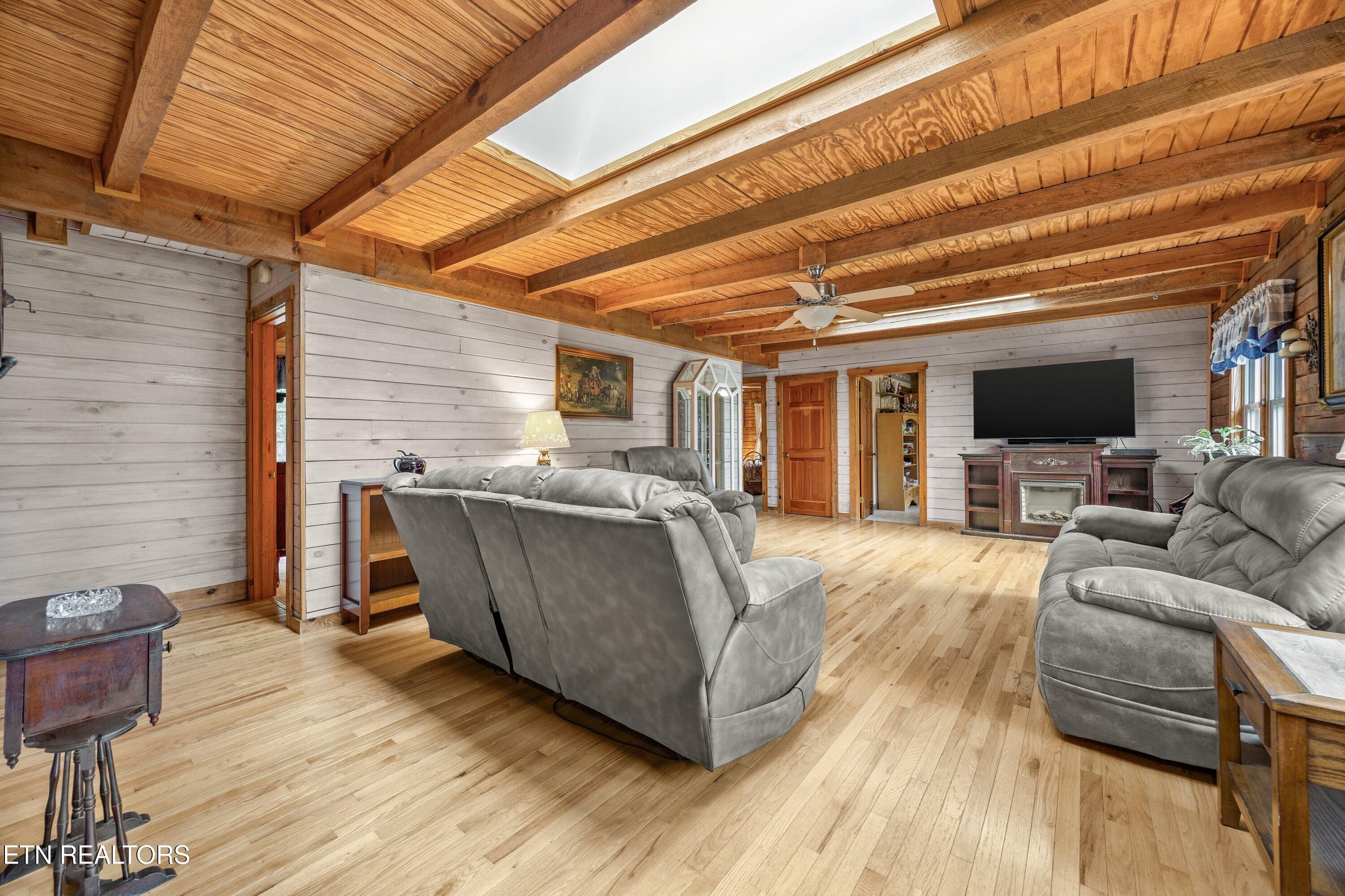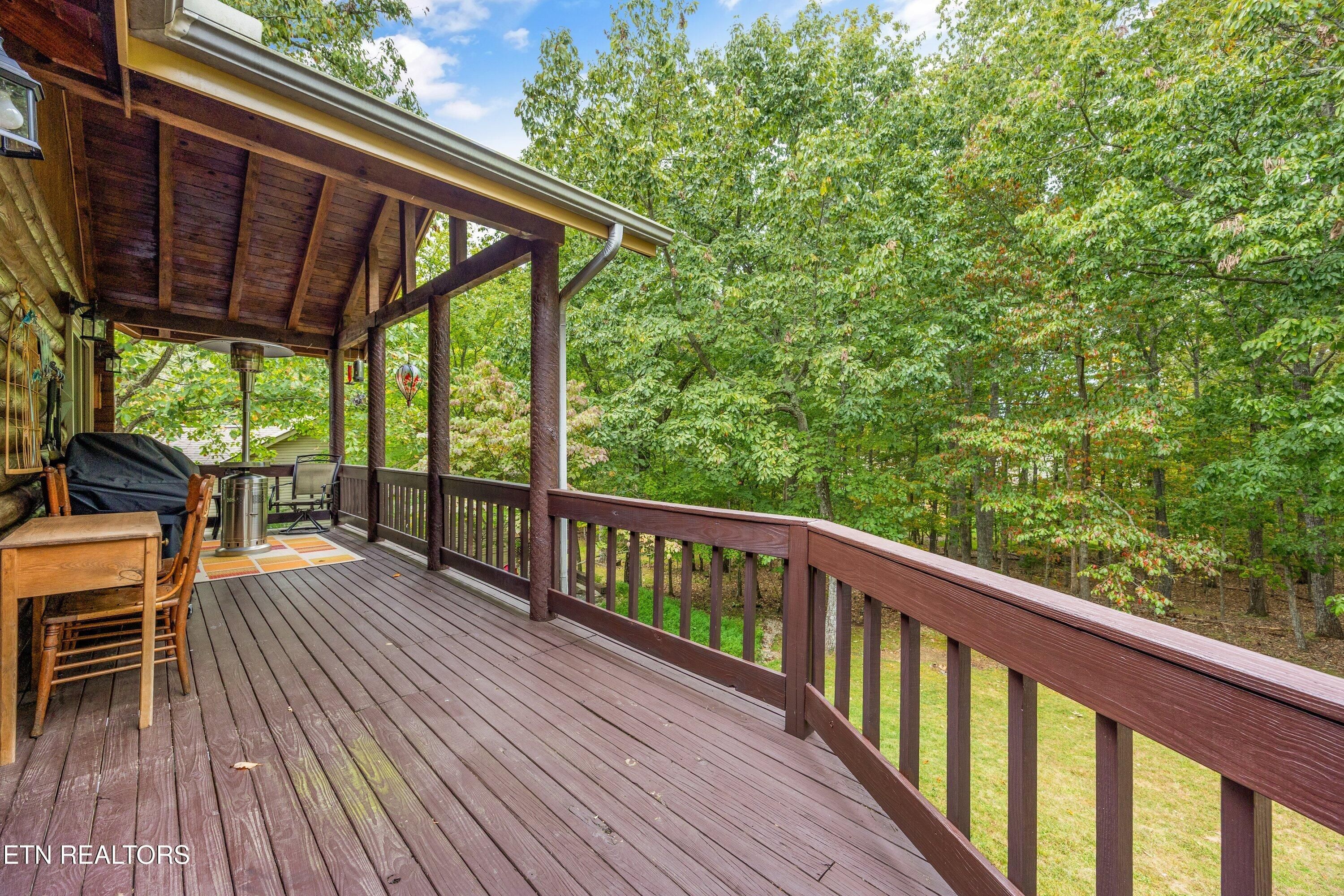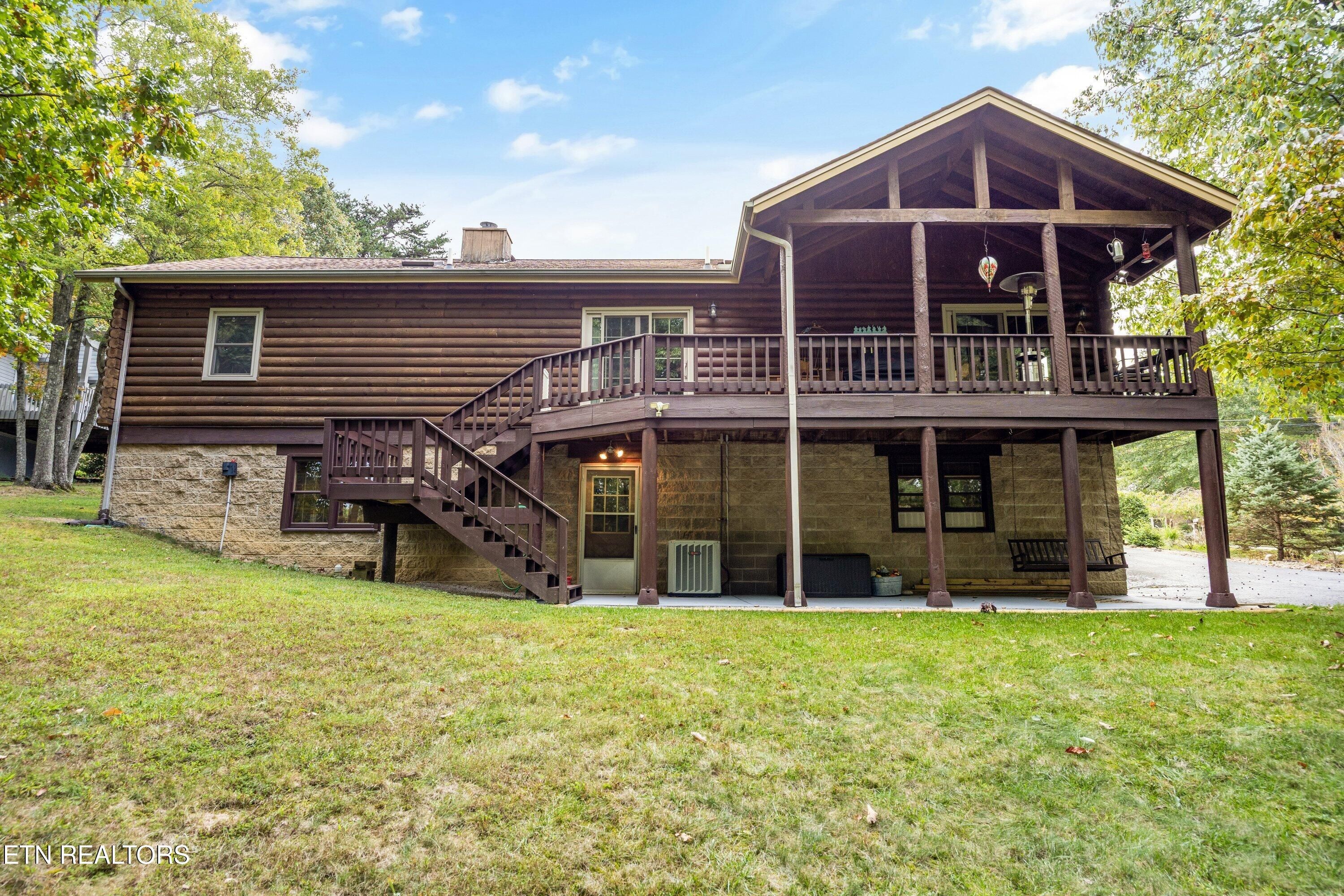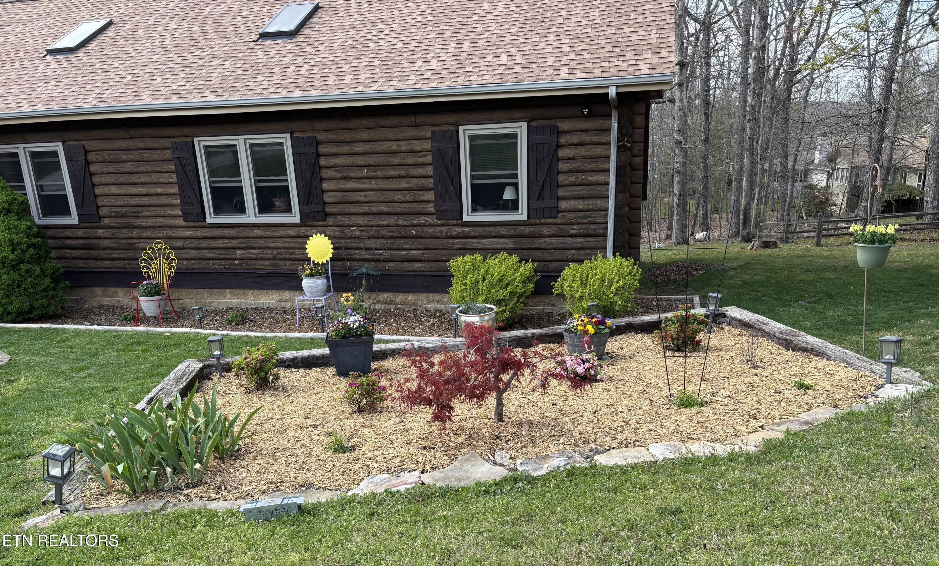 Discover a bright, right-sized Jim Barna log home designed for easy, low-stress living, tucked at the end of a quiet cul-de-sac in Fairfield Glade. Set on a professionally landscaped half-acre, this home offers privacy, natural surroundings, and a calm pace that today's buyers are seeking. The main level is thoughtfully arranged for everyday convenience, with approximately 1,504 square feet including three bedrooms and two full baths. One bedroom is currently used as a flexible office with laundry, and additional washer/dryer hookups are available in the walk-out lower level--providing options to suit your lifestyle. Everything needed for daily living is on one level, making this an ideal fit for those looking to simplify without sacrificing space. Inside, lighter interior log walls, beamed ceilings, oak floors, and multiple skylights create a warm, welcoming feel with abundant natural light--unlike many traditional log homes. Updated Pella windows (2020) and a newer roof (2019) add peace of mind, while solid-surface countertops, newer appliances, and a whole-house fan enhance comfort and efficiency . The kitchen opens to an upper deck overlooking a private, wooded backyard--perfect for morning coffee or unwinding in the evenings. A covered front porch and inviting outdoor spaces extend the home's livability, while the long driveway and strong curb appeal make a lasting first impression. The walk-out lower level offers valuable bonus space for hobbies, a workshop, storage, or future customization, with a sink, toilet, and dedicated laundry hookups already in place. This separation of space allows the main level to remain clean and uncluttered while supporting projects, guests, or creative pursuits. Located just minutes from Fairfield Glade's golf courses, lakes, trails, and amenities, this home combines character, comfort, and flexibility in a setting known for its lifestyle appeal. A thoughtful option for buyers seeking a manageable home with room to live, work, and enjoy the outdoors. Fairfield Glade has been recognized by PrivateCommunities.com as a 2026 'Most Popular Lifestyle Community,' reflecting strong interest from buyers actively searching for lifestyle-focused destinations. The community is known for its wide range of amenities, including golf courses, lakes, walking trails, and recreational offerings that support an active and engaging lifestyle. Learn more about Fairfield Glade's amenities and active living options: https://fairfieldglade.net/active-living/ Buyer to verify all information.