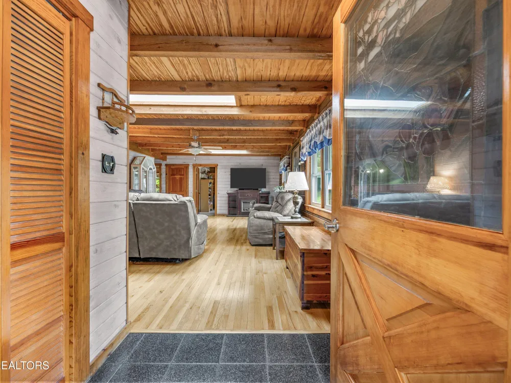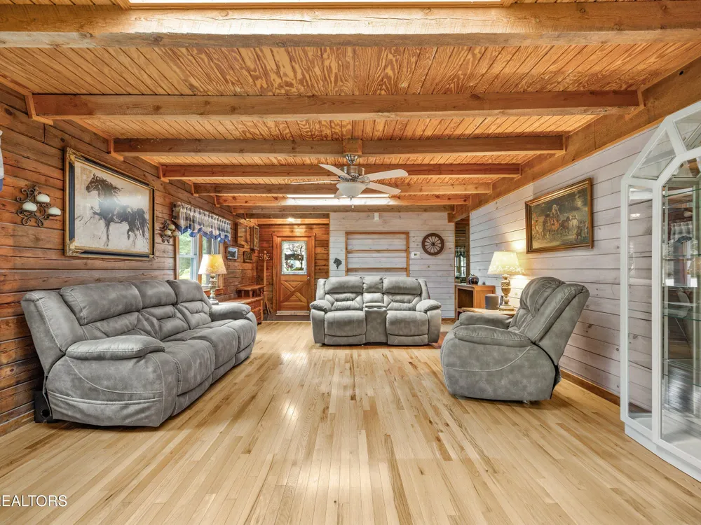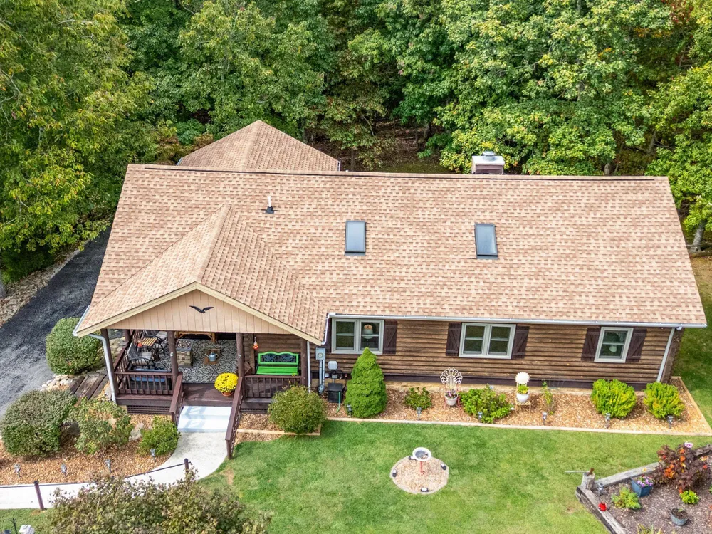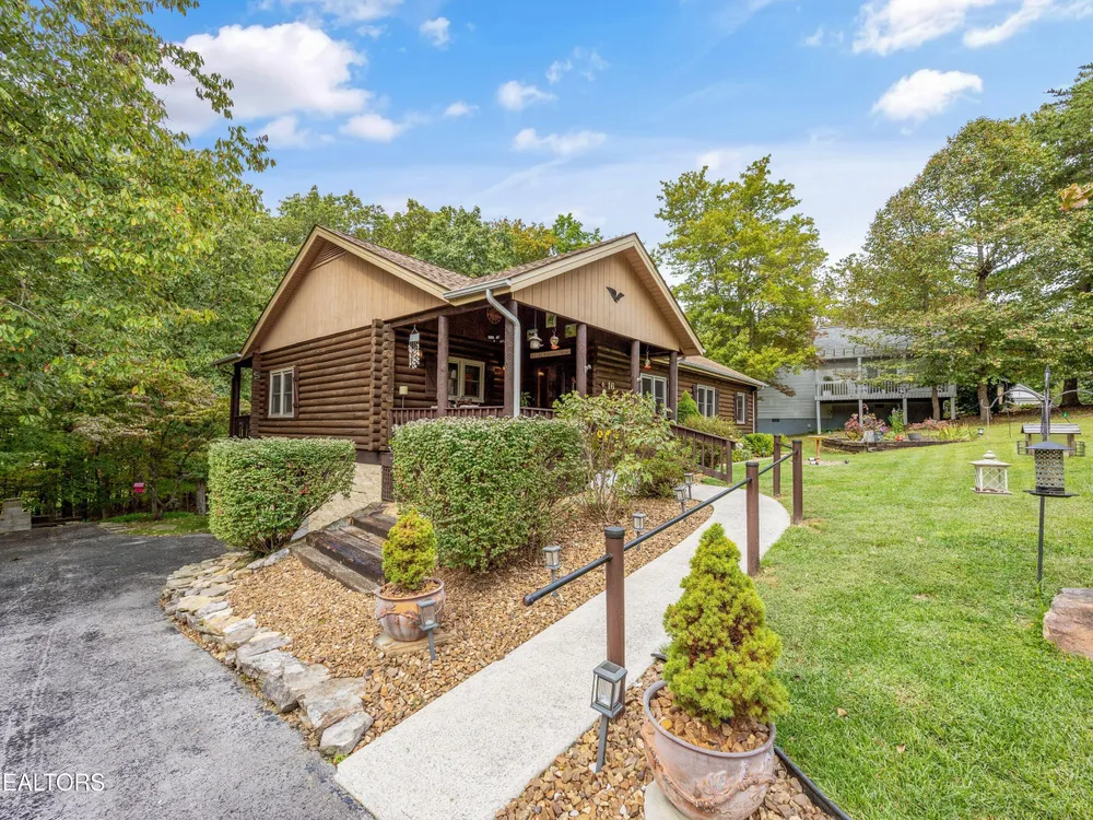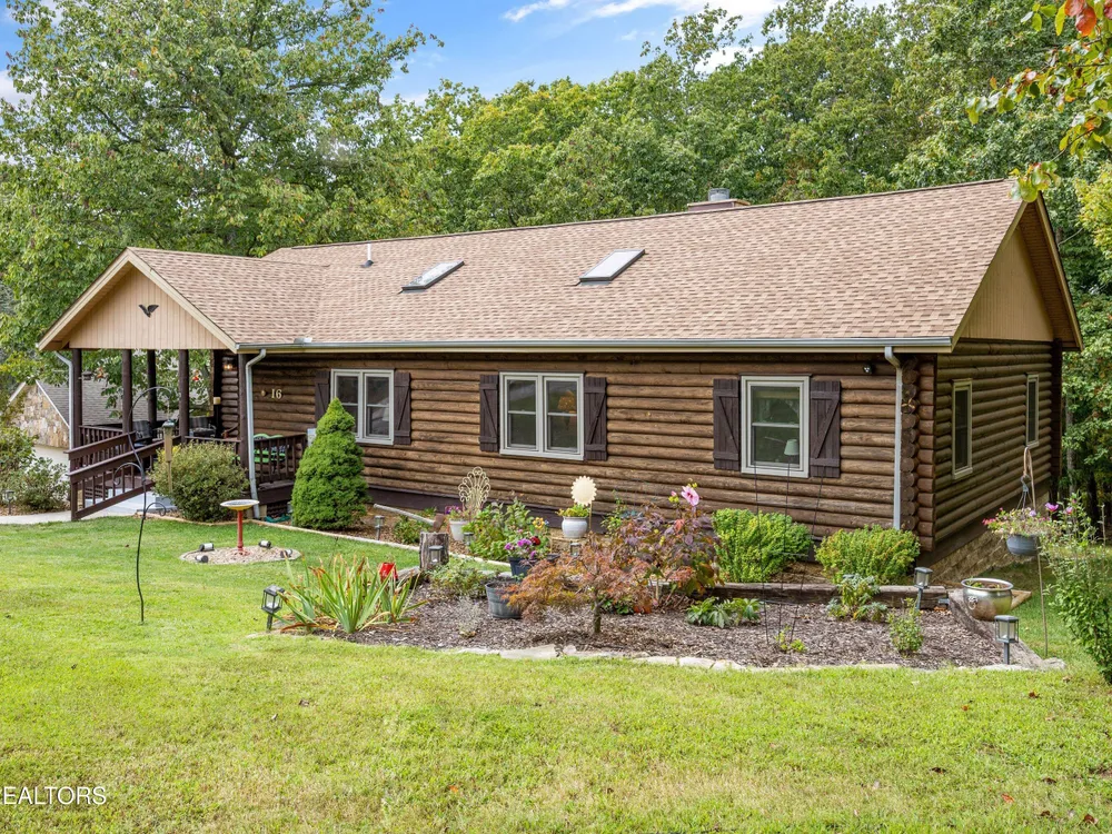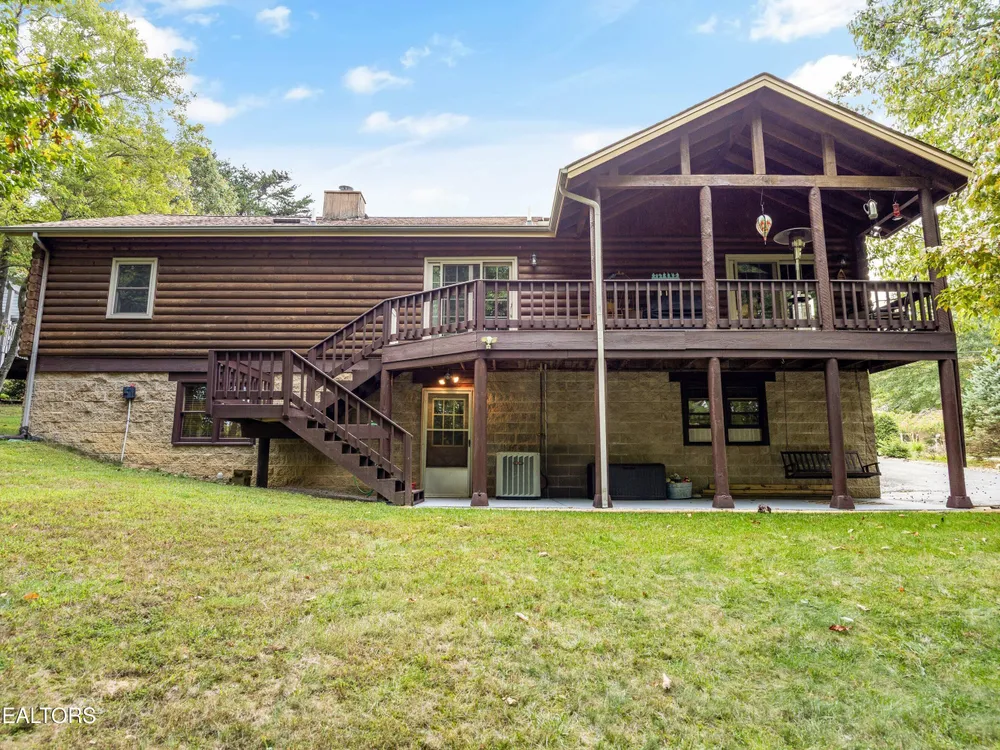Check Out This Tennessee Dream!! A Charming Jim Barna log cabin home with a cozy, rustic appeal. It's full of light wooden walls on the interior and 2 large skylights in the family room offer additional natural light. A welcoming covered porch that extends across the front and a beautiful covered back porch that's an early morning coffee lover's dream! This 2 Bedroom + flex space on main level for office or additional bedroom (currently used as office/laundry room), 2 Bath home is nestled among tall trees, emphasizing its cozy woodland setting and boasts serenity. The basement is full of all your storage needs, no lack of space here! Main level laundry and a washer/dryer hookup in basement. It's a perfect mix of cabin retreat and homey comfort. It's a must see!