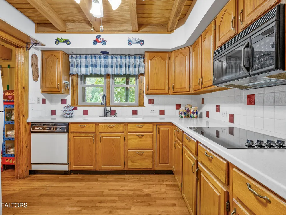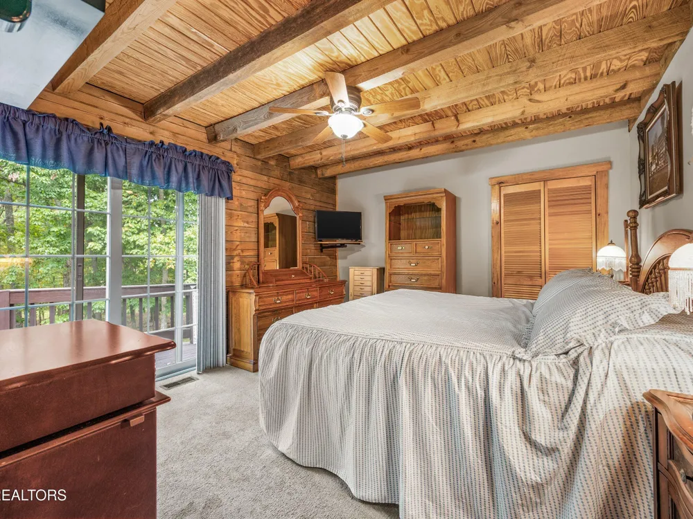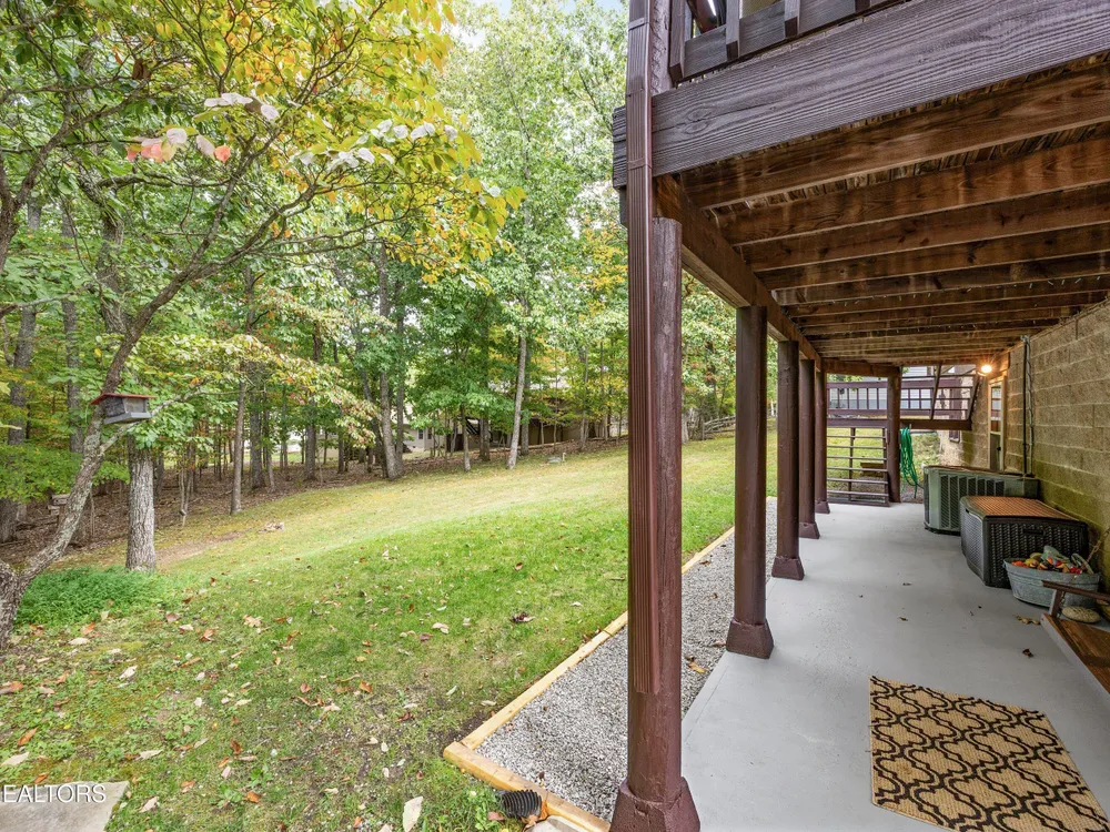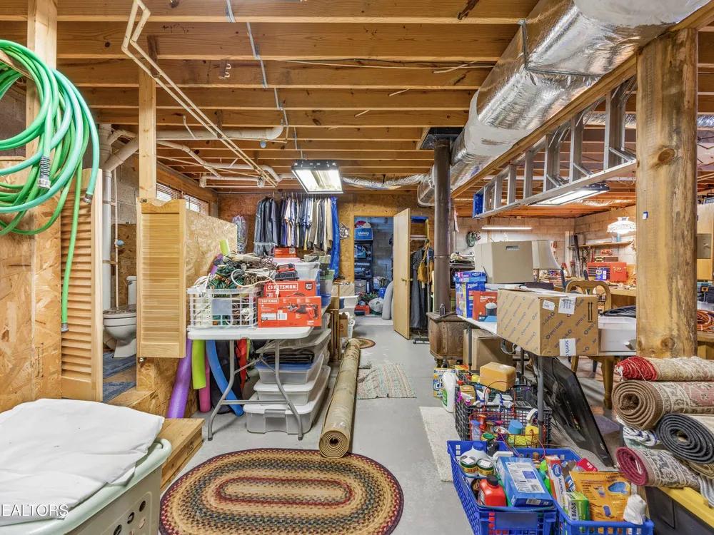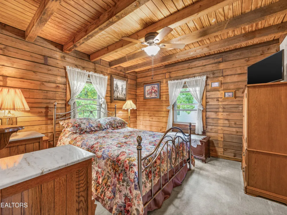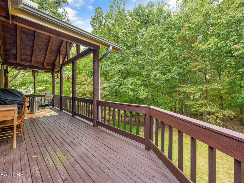 Check Out This Tennessee Dream!! A Charming Jim Barna log cabin home with a cozy, rustic appeal. It's full of light wooden walls on the interior and 2 large skylights in the family room offer additional natural light. A welcoming covered porch that extends across the front and a beautiful covered back porch that's an early morning coffee lover's dream! This 2 Bedroom + flex space on main level for office or additional bedroom (currently used as office/laundry room), 2 Bath home is nestled among tall trees, emphasizing its cozy woodland setting and boasts serenity. The basement is full of all your storage needs, no lack of space here! Main level laundry and a washer/dryer hookup in basement. It's a perfect mix of cabin retreat and homey comfort. It's a must see!