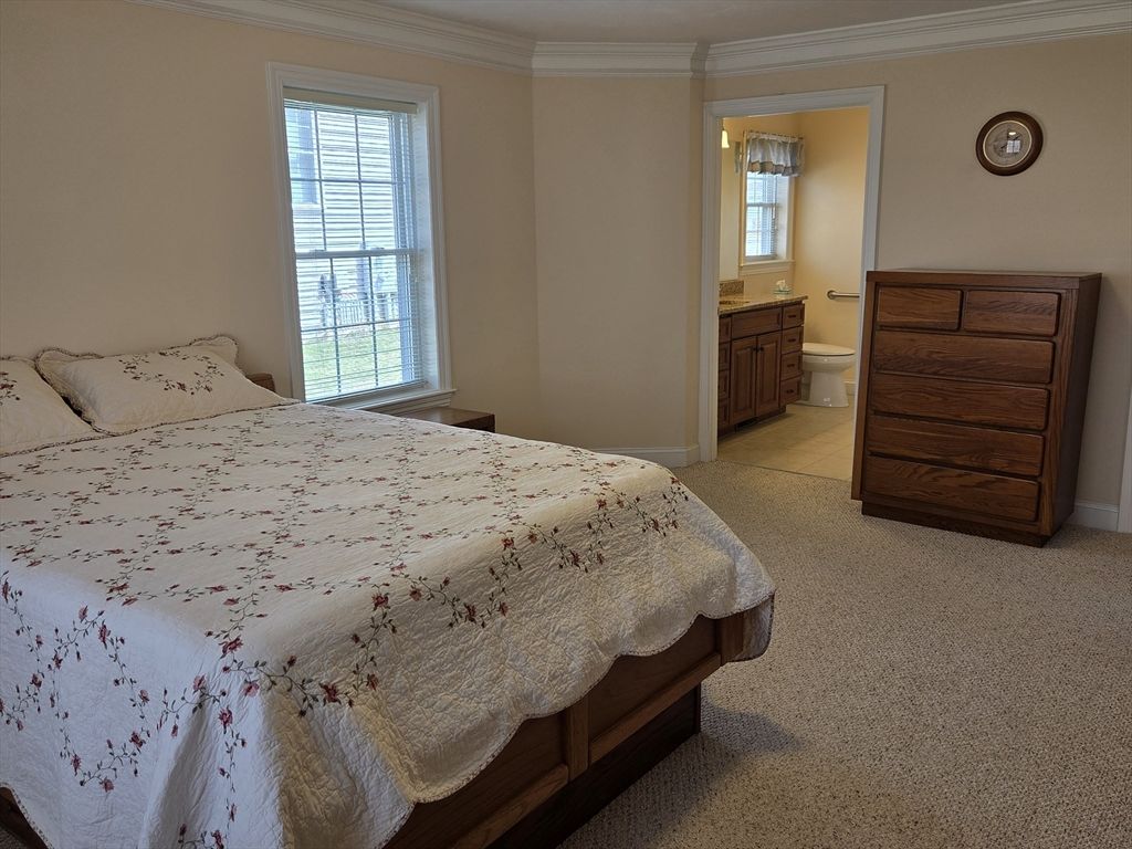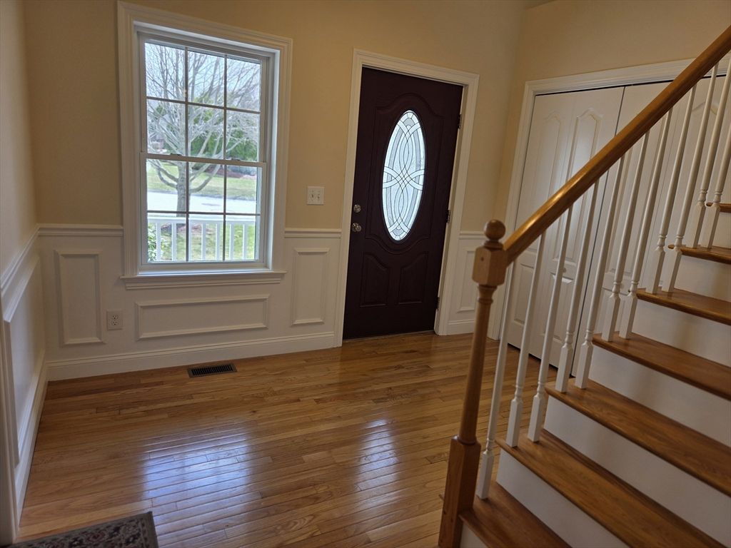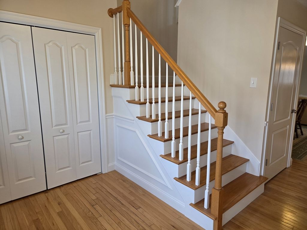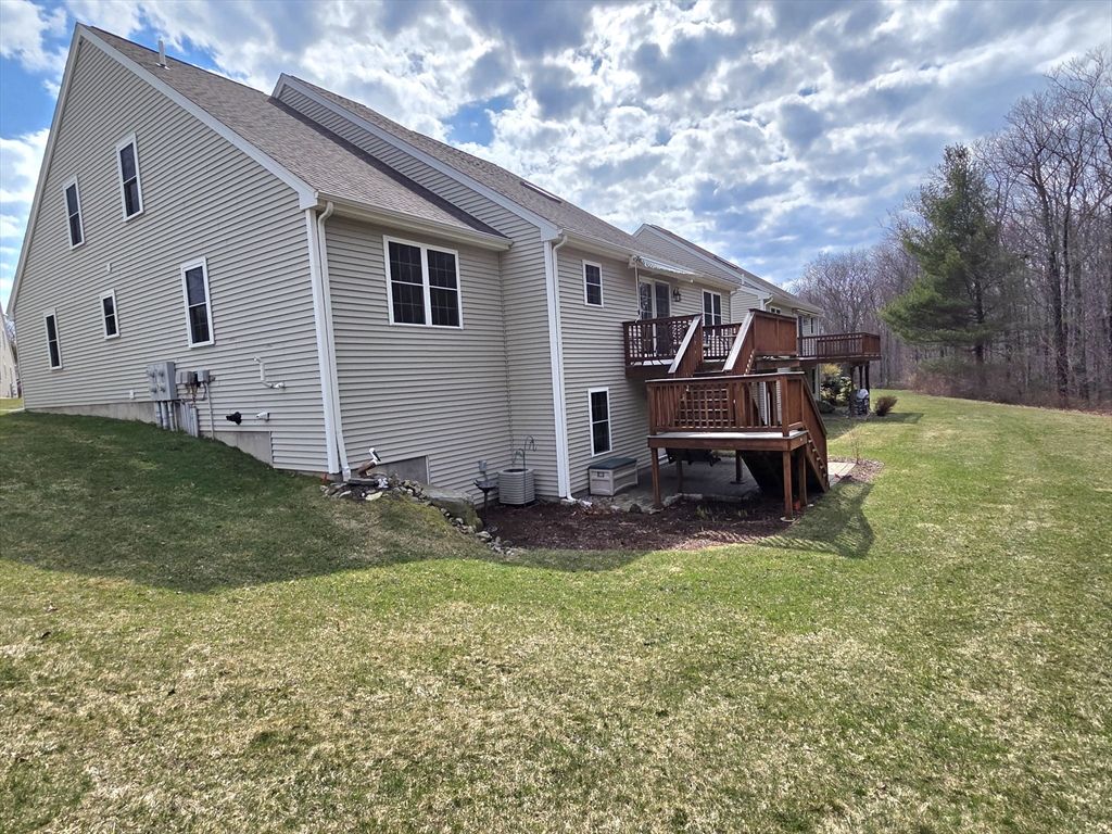 Presenting 16 Brierly Circle -- an exquisite end-unit townhouse in sought-after Brierly Pond Village II, a premier 55+ community surrounded by a pond, woods, and scenic trails. This residence features gleaming hardwood floors and an open floor plan, ideal for entertaining. The oversized living room offers a vaulted ceiling skylight, and slider to a private rear deck with wooded views. The chef's kitchen boasts upgraded cabinetry, granite countertops, stainless appliances, and a center island with breakfast bar. The large first floor primary suite includes a walk-in closet and full bath. Upstairs, enjoy an open loft/den and a spacious front-to-back bedroom with full bath. The walk-out lower level with rear windows offers exceptional space for future expansion. This home offers a perfect blend of comfort, style, and serene surroundings.