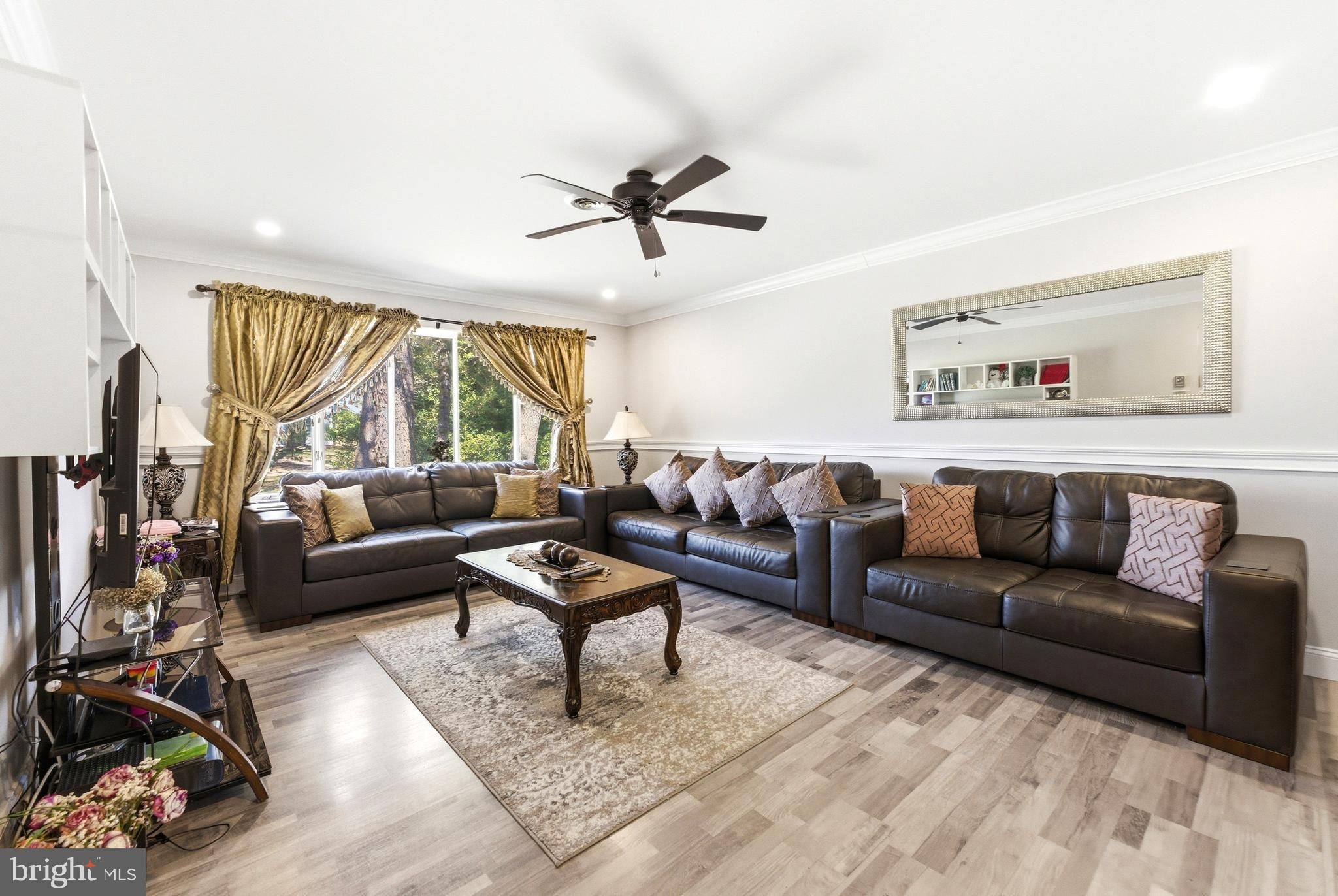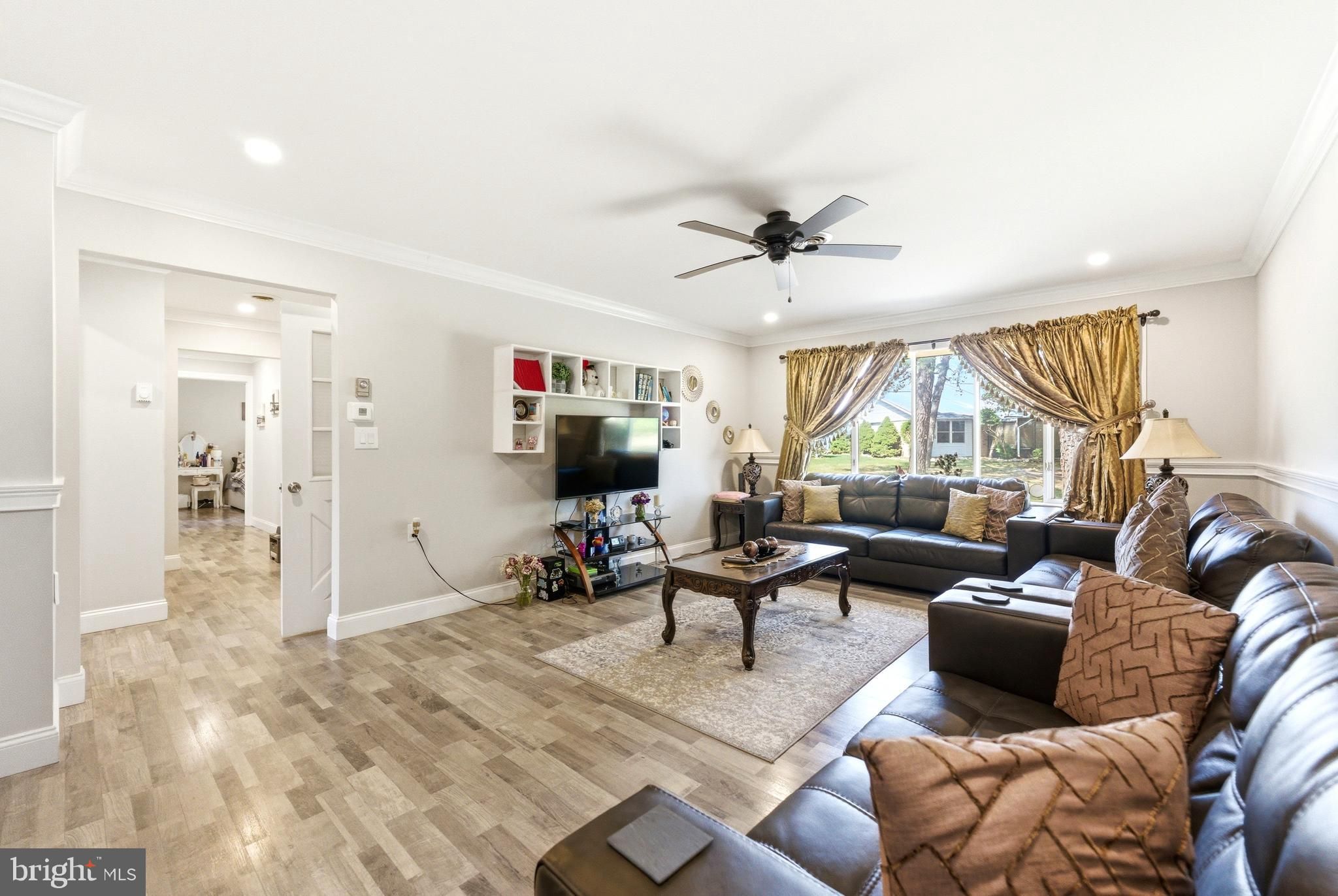 - Central Vacuum, Chair Railings, Combination Dining/Living, Crown Moldings, Ceiling Fan(s)