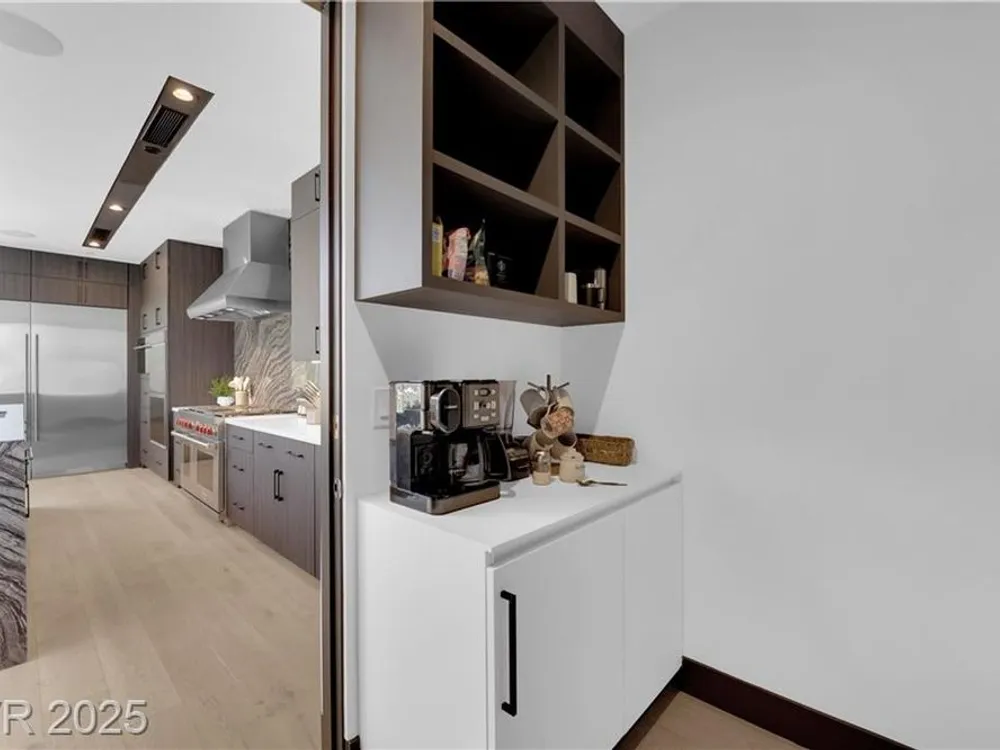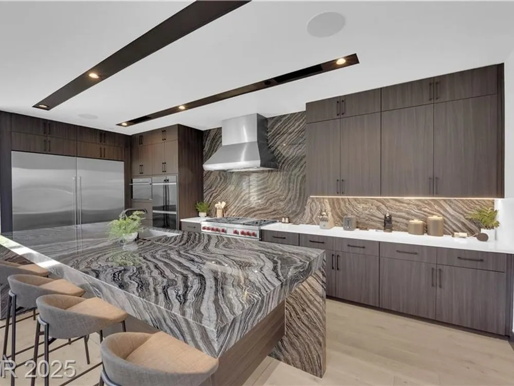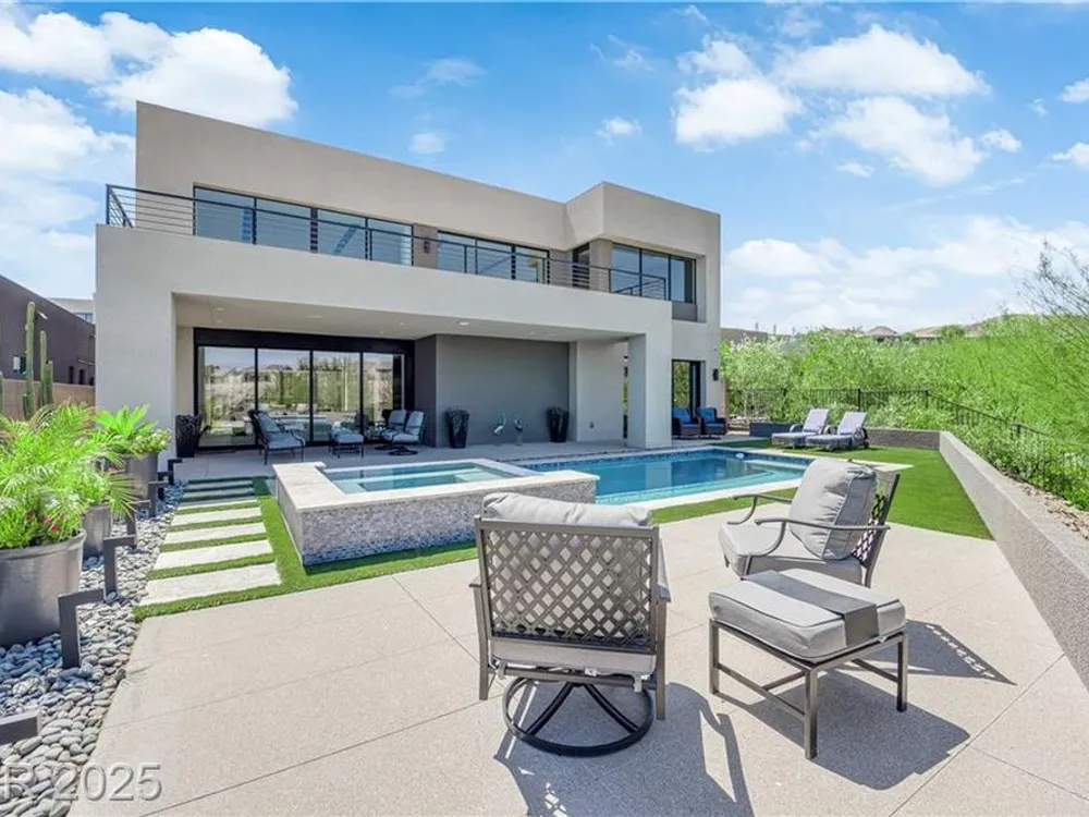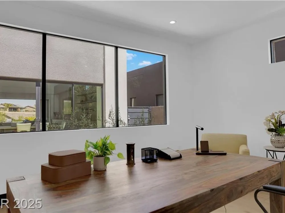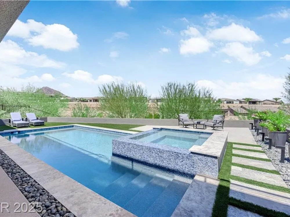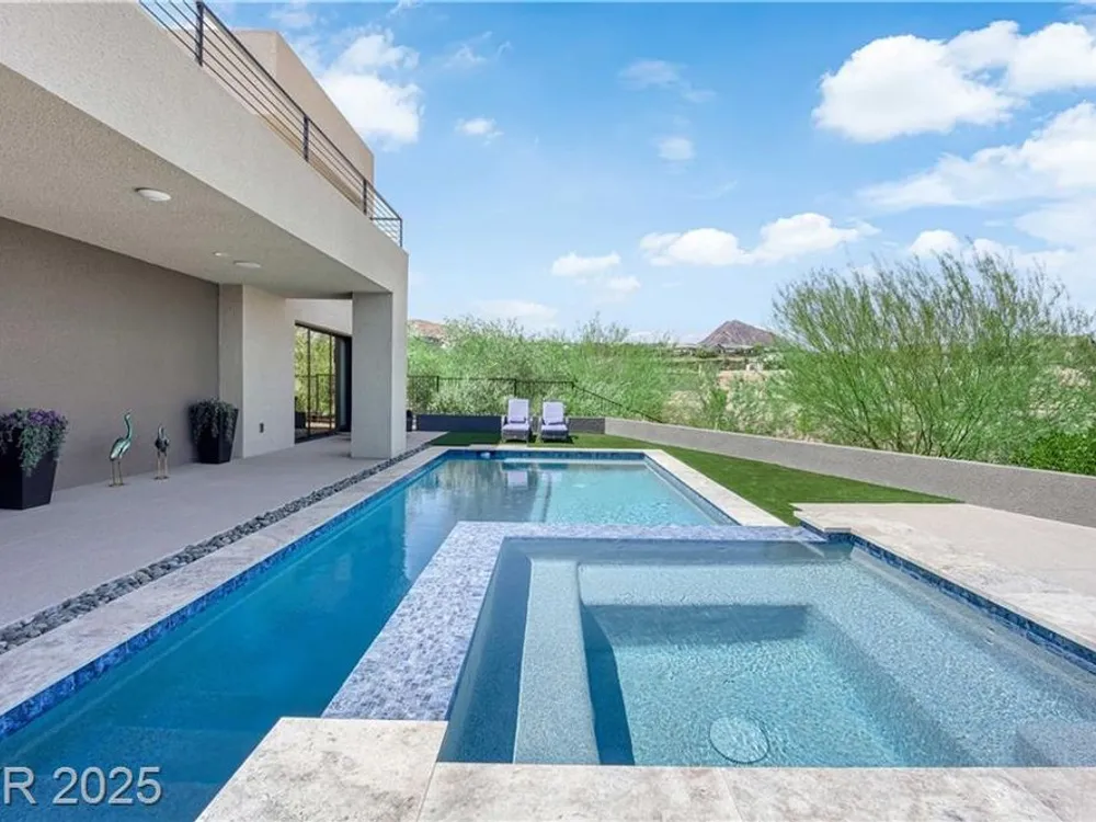 Step into luxury living with this nearly new Blue Heron masterpiece in Lake Las Vegas. Why endure the long waits for new construction when you can move into a home that’s practically brand new with everything you need? Skip the hassle of waiting months for your pool—this home comes complete with a brand-new pool and spa, ready for immediate enjoyment. Fully equipped and beautifully furnished, all you need to bring is your toothbrush. Inside, the open-concept floor plan unfolds with expansive pocketing doors that effortlessly blend indoor and outdoor spaces, leading you to a backyard oasis designed for both relaxation and entertainment. At the heart of the home lies a chef’s kitchen featuring rich countertops, custom cabinetry, and top-tier Wolf and Sub-Zero appliances. White oak flooring flows throughout, adding a touch of warmth and sophistication. Every detail, from the finishes to the fixtures, has been thoughtfully curated to create a refined, modern aesthetic.
