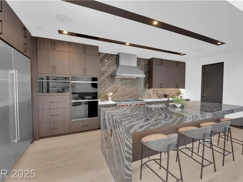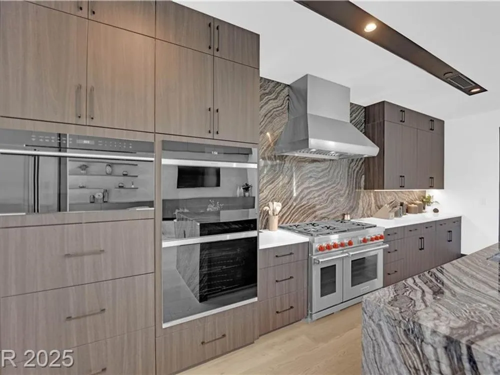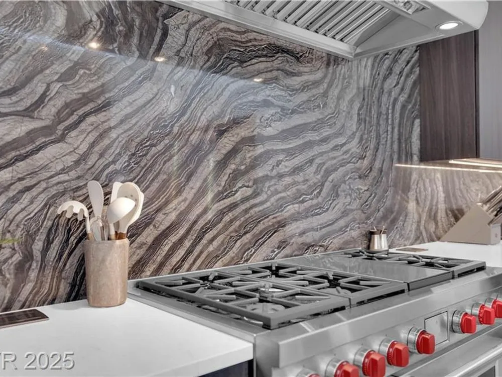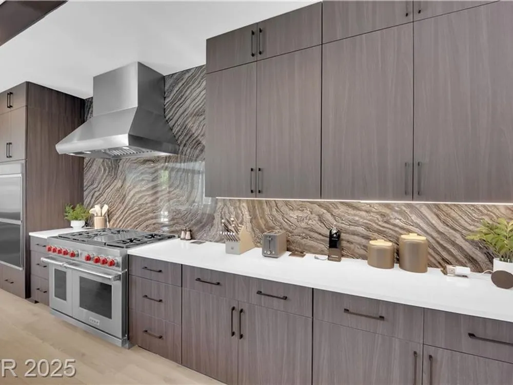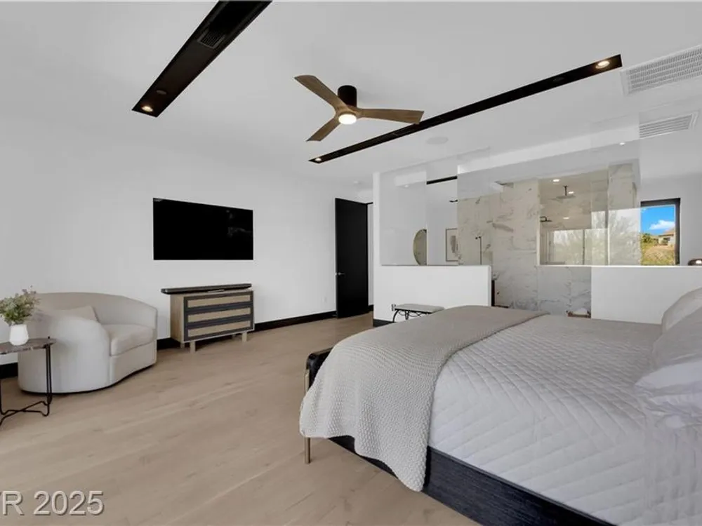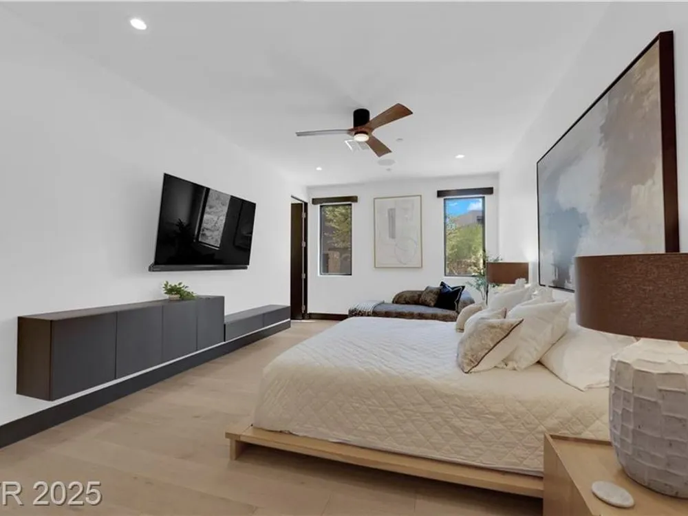 Step into luxury living with this nearly new Blue Heron masterpiece in Lake Las Vegas. Why endure the long waits for new construction when you can move into a home that’s practically brand new with everything you need? Skip the hassle of waiting months for your pool—this home comes complete with a brand-new pool and spa, ready for immediate enjoyment. Fully equipped and beautifully furnished, all you need to bring is your toothbrush. Inside, the open-concept floor plan unfolds with expansive pocketing doors that effortlessly blend indoor and outdoor spaces, leading you to a backyard oasis designed for both relaxation and entertainment. At the heart of the home lies a chef’s kitchen featuring rich countertops, custom cabinetry, and top-tier Wolf and Sub-Zero appliances. White oak flooring flows throughout, adding a touch of warmth and sophistication. Every detail, from the finishes to the fixtures, has been thoughtfully curated to create a refined, modern aesthetic.