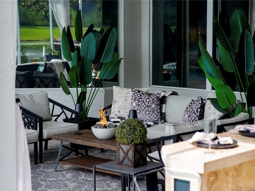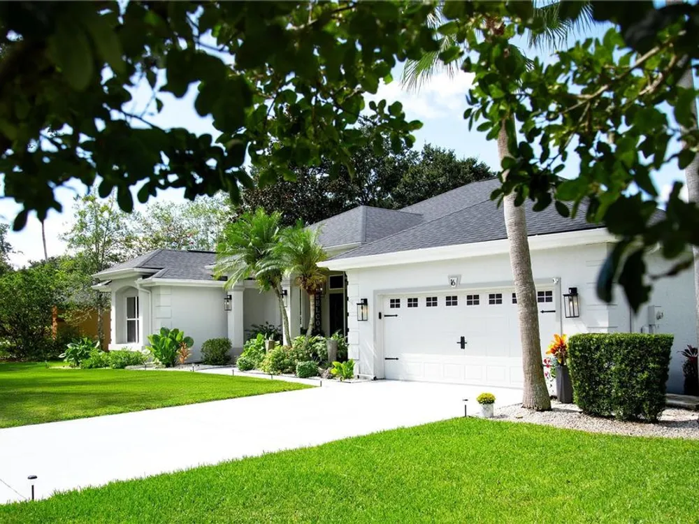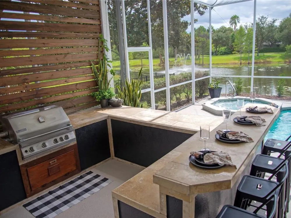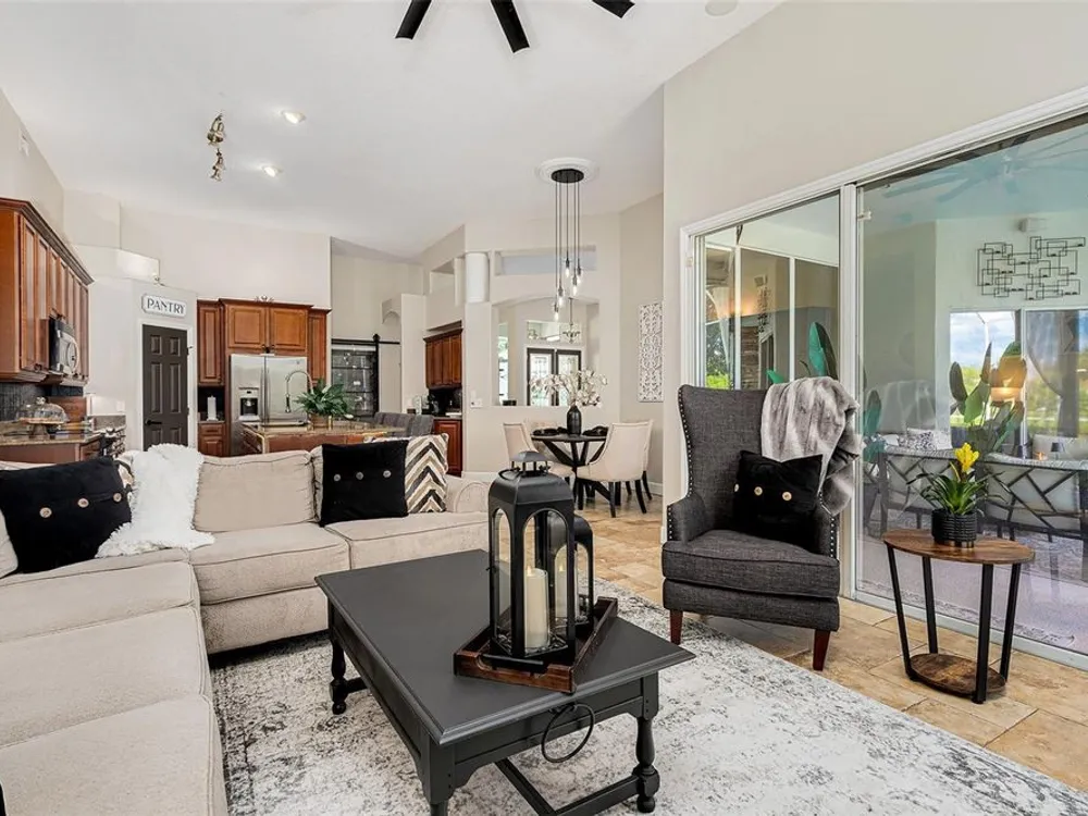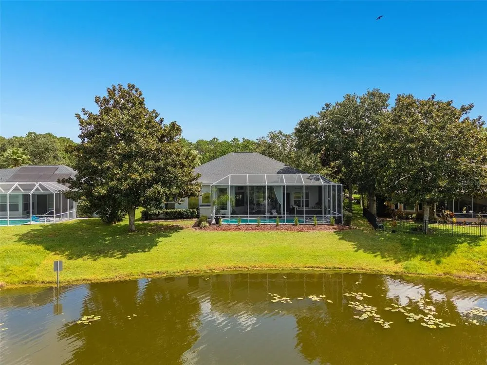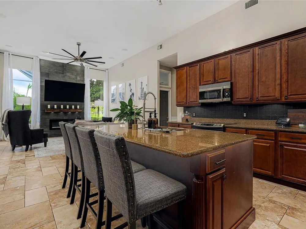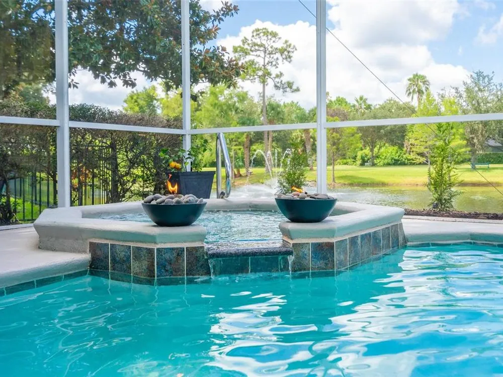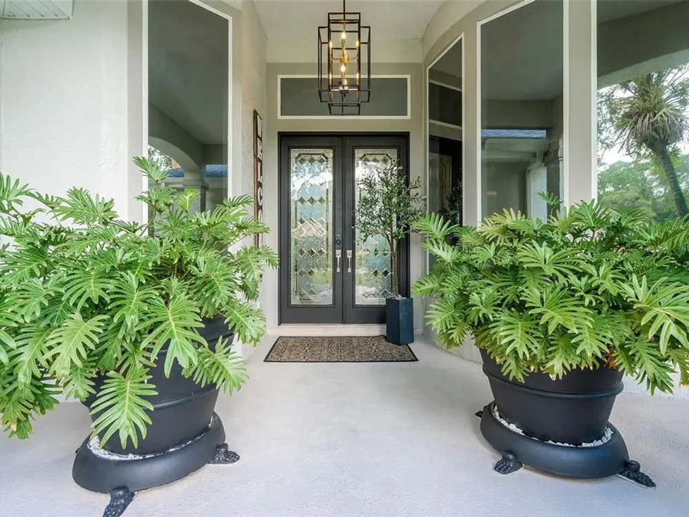 Welcome to 16 Circle Creek Way, a stunning 4-bedroom, 3-bath residence in Ormond Beach’s sought-after Breakaway Trails community. Crafted by ICI Homes, renowned for craftsmanship, this property blends timeless elegance with modern comforts in a setting surrounded by natural beauty. Overlooking a sparkling pond with a fountain and framed by oak and magnolia trees, the home invites a lifestyle where every detail is thoughtfully considered. As you arrive, you’re greeted by manicured landscaping and two front-entry water features that set a tranquil tone. The freshly painted exterior and modern lighting elevate curb appeal, while a new 2020 roof adds peace of mind. Through the elegant glass double doors, the journey begins. Inside, oversized windows draw your gaze across the formal sitting area to the pool and pond beyond. A dramatic wood globe chandelier anchors the entryway, while wainscoting, travertine tile, and walnut hardwood floors hint at thoughtful upgrades. From the formal areas, the heart of the home unfolds. The living room centers on a striking custom stone fireplace wall with oversized tile, a wood mantel, and a new electric insert. Expansive sliders open to the patio, flooding the room with light and framing views of the fountain-lit pond. The adjacent gourmet kitchen blends style and function: a large island, granite countertops, and wood cabinetry with a bold black backsplash create a timeless aesthetic. Under- and above-cabinet lighting add warmth, while a Bosch dishwasher (2023), dual-zone wine fridge (2022), and a custom wine closet with glass barn door make hosting effortless. A coffee bar completes the space—perfect for mornings at home. This four-bedroom, three-bath layout is thoughtfully split to enhance privacy and functionality. On one side, the primary suite pairs with a secondary bedroom—ideal as a nursery, guest room, or private office near the owner’s retreat. The primary suite opens to the pool with water views through sliding glass doors, creating a serene escape. A sunken tub, travertine walk-in shower, glass-block feature, and double vanity create a spa-like bath. On the opposite wing, two additional bedrooms add flexibility for guests, offices, or creative space. One bedroom features a clever “cloffice”—a built-in desk and tile-accent workspace—ideal for today’s lifestyle. The other is styled as an office, with a bold dark-washed accent wall and illuminated plant display. Baths and utility spaces show the same attention to detail. The guest bath offers a German schmear brick accent wall and modern fixtures; the laundry is fresh and functional with a new GE washer and dryer. The outdoor living space feels like a private resort. The pool, resurfaced and retiled in 2021, gleams, complemented by a Hayward heat/cool pump (2023) and spa heater (2021) for year-round comfort. A new color-changing pool light adds evening magic, reflecting off the pond and fountain beyond. Host gatherings with ease at the outdoor bar and built-in dining area, or enjoy casual evenings grilling on the JennAir BBQ. Oversized fans keep the patio comfortable, while a wood privacy wall and modern exterior lighting create both seclusion and ambiance. With oak and magnolia trees framing unobstructed water views, every sunset feels like a painting. Breakaway Trails itself offers an unparalleled lifestyle, complete with a 24-hour guarded gate, community pool, tennis and pickleball courts, playgrounds, and scenic walking and biking trails.