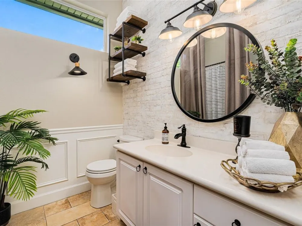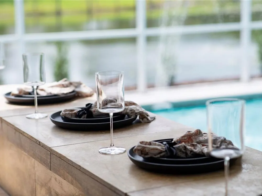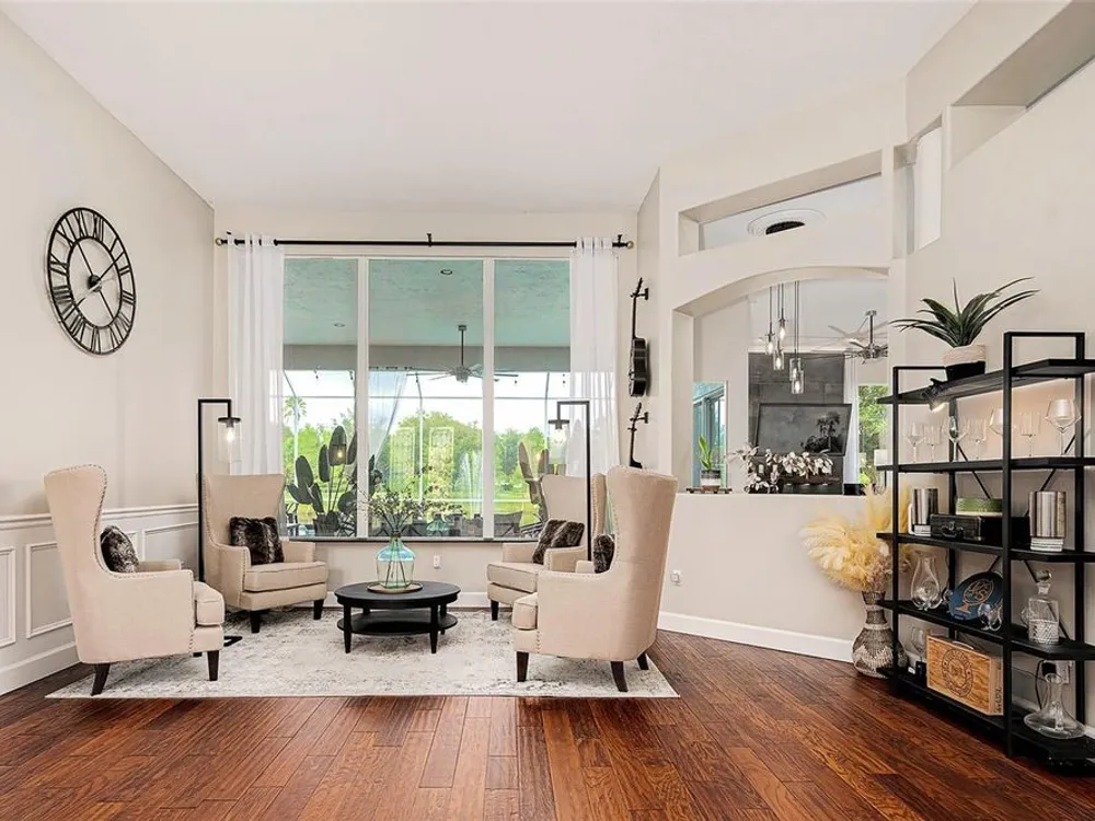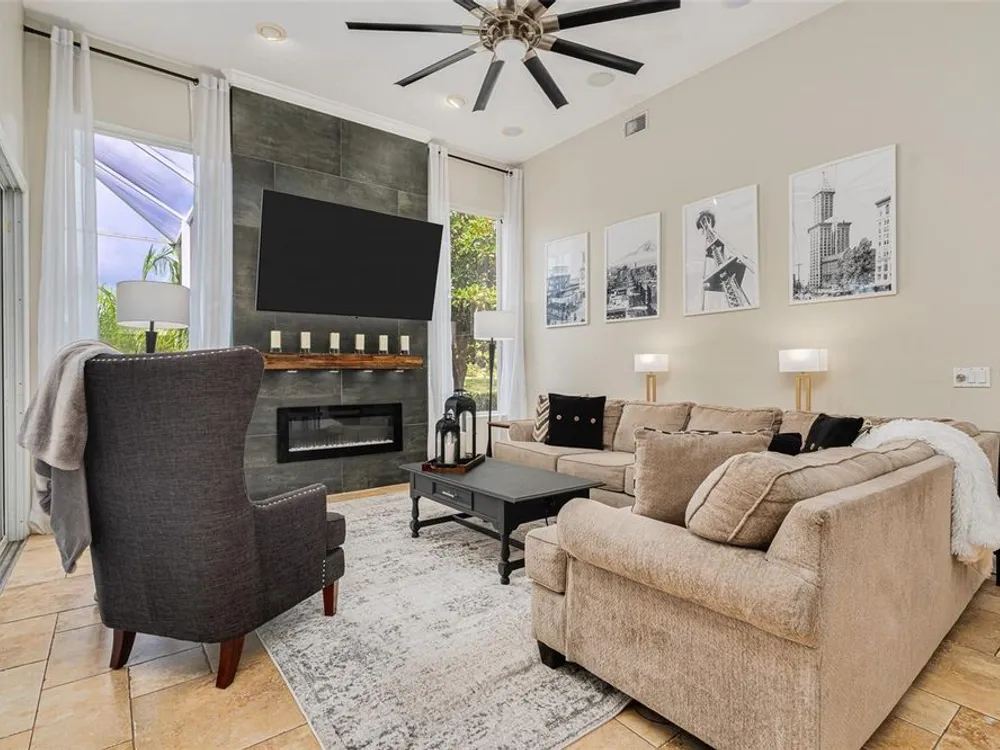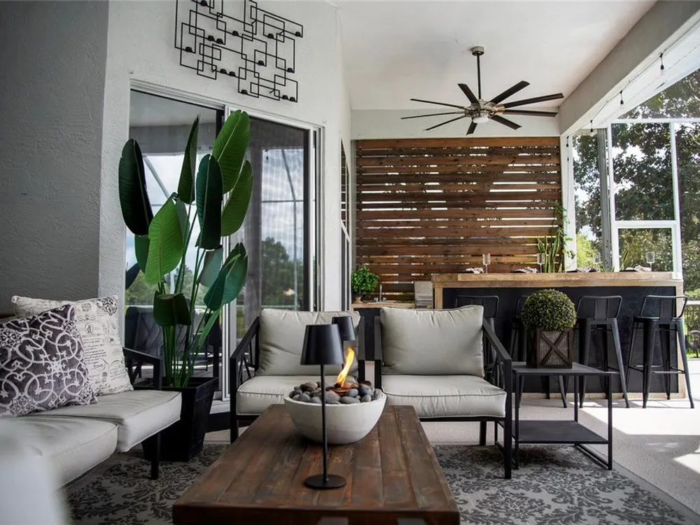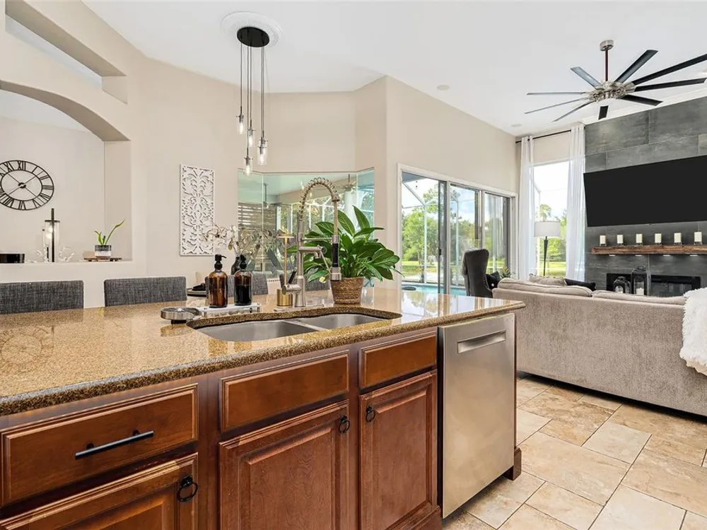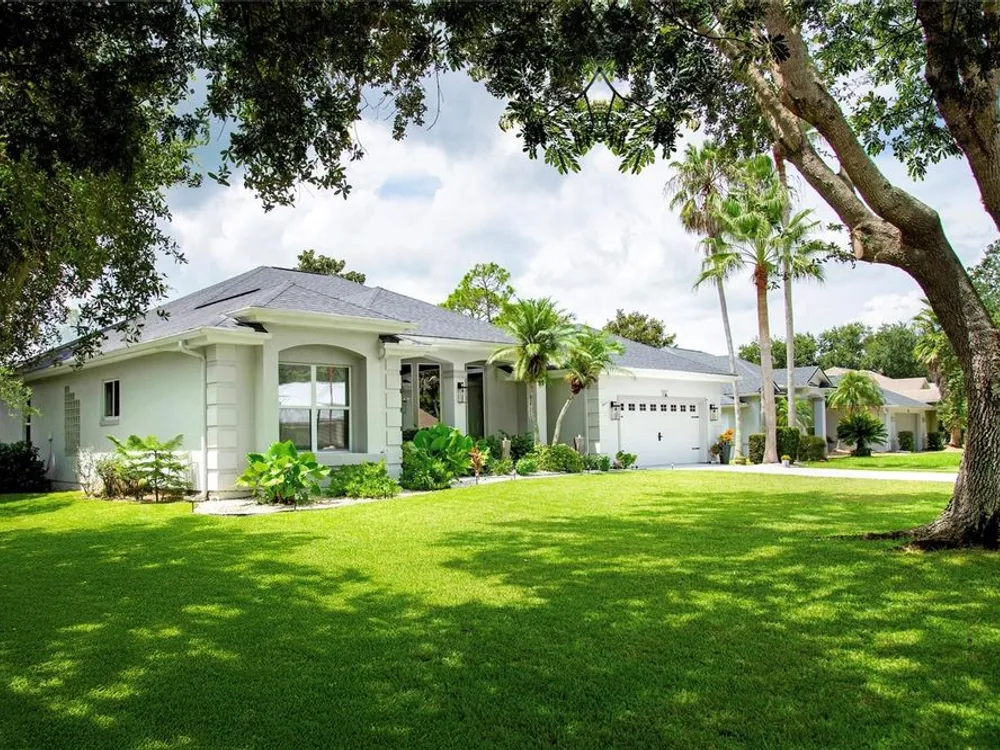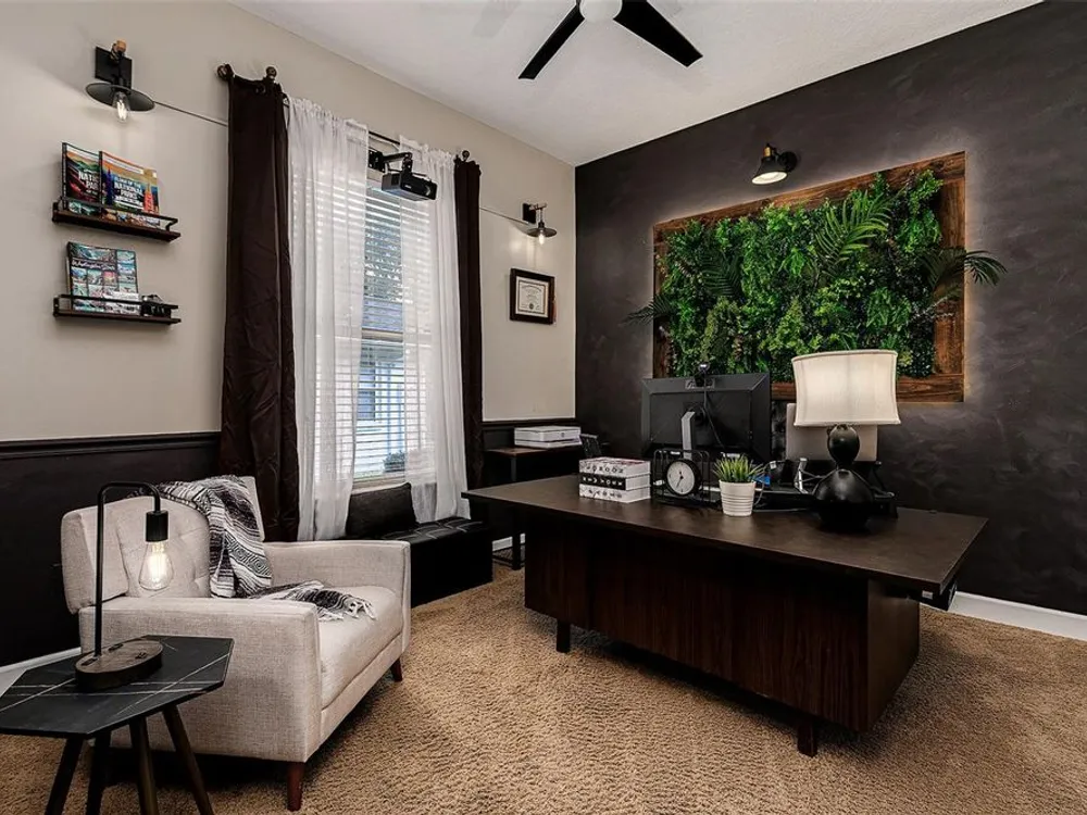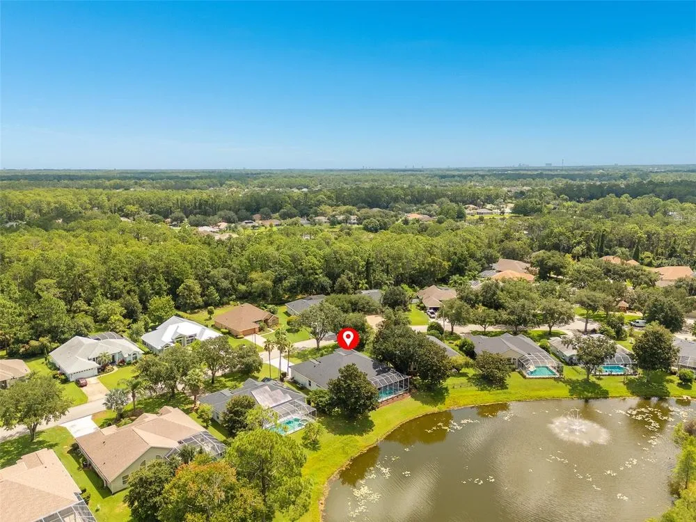 Welcome to 16 Circle Creek Way, a stunning 4-bedroom, 3-bath residence in Ormond Beach’s sought-after Breakaway Trails community. Crafted by ICI Homes, renowned for craftsmanship, this property blends timeless elegance with modern comforts in a setting surrounded by natural beauty. Overlooking a sparkling pond with a fountain and framed by oak and magnolia trees, the home invites a lifestyle where every detail is thoughtfully considered. As you arrive, you’re greeted by manicured landscaping and two front-entry water features that set a tranquil tone. The freshly painted exterior and modern lighting elevate curb appeal, while a new 2020 roof adds peace of mind. Through the elegant glass double doors, the journey begins. Inside, oversized windows draw your gaze across the formal sitting area to the pool and pond beyond. A dramatic wood globe chandelier anchors the entryway, while wainscoting, travertine tile, and walnut hardwood floors hint at thoughtful upgrades. From the formal areas, the heart of the home unfolds. The living room centers on a striking custom stone fireplace wall with oversized tile, a wood mantel, and a new electric insert. Expansive sliders open to the patio, flooding the room with light and framing views of the fountain-lit pond. The adjacent gourmet kitchen blends style and function: a large island, granite countertops, and wood cabinetry with a bold black backsplash create a timeless aesthetic. Under- and above-cabinet lighting add warmth, while a Bosch dishwasher (2023), dual-zone wine fridge (2022), and a custom wine closet with glass barn door make hosting effortless. A coffee bar completes the space—perfect for mornings at home. This four-bedroom, three-bath layout is thoughtfully split to enhance privacy and functionality. On one side, the primary suite pairs with a secondary bedroom—ideal as a nursery, guest room, or private office near the owner’s retreat. The primary suite opens to the pool with water views through sliding glass doors, creating a serene escape. A sunken tub, travertine walk-in shower, glass-block feature, and double vanity create a spa-like bath. On the opposite wing, two additional bedrooms add flexibility for guests, offices, or creative space. One bedroom features a clever “cloffice”—a built-in desk and tile-accent workspace—ideal for today’s lifestyle. The other is styled as an office, with a bold dark-washed accent wall and illuminated plant display. Baths and utility spaces show the same attention to detail. The guest bath offers a German schmear brick accent wall and modern fixtures; the laundry is fresh and functional with a new GE washer and dryer. The outdoor living space feels like a private resort. The pool, resurfaced and retiled in 2021, gleams, complemented by a Hayward heat/cool pump (2023) and spa heater (2021) for year-round comfort. A new color-changing pool light adds evening magic, reflecting off the pond and fountain beyond. Host gatherings with ease at the outdoor bar and built-in dining area, or enjoy casual evenings grilling on the JennAir BBQ. Oversized fans keep the patio comfortable, while a wood privacy wall and modern exterior lighting create both seclusion and ambiance. With oak and magnolia trees framing unobstructed water views, every sunset feels like a painting. Breakaway Trails itself offers an unparalleled lifestyle, complete with a 24-hour guarded gate, community pool, tennis and pickleball courts, playgrounds, and scenic walking and biking trails.